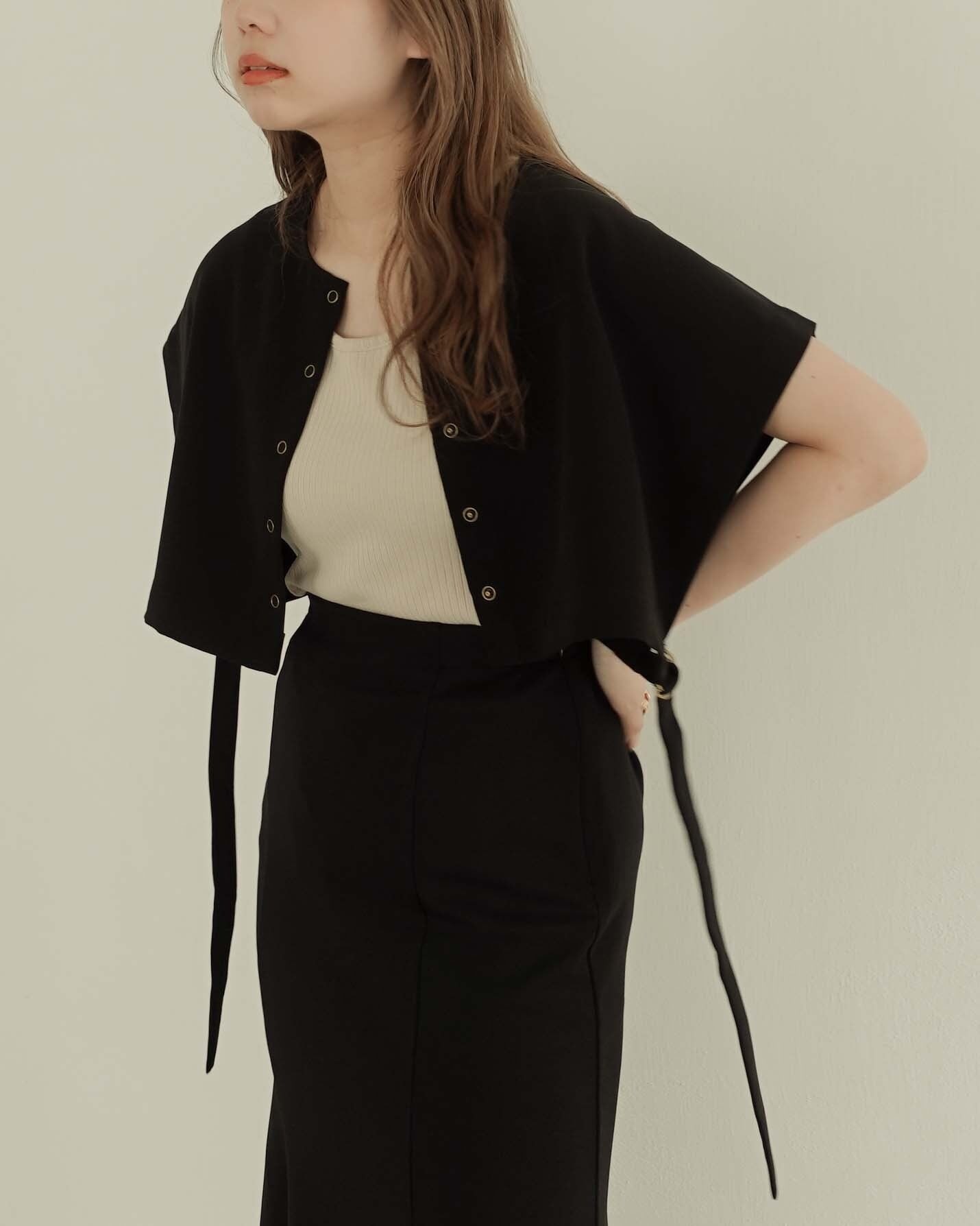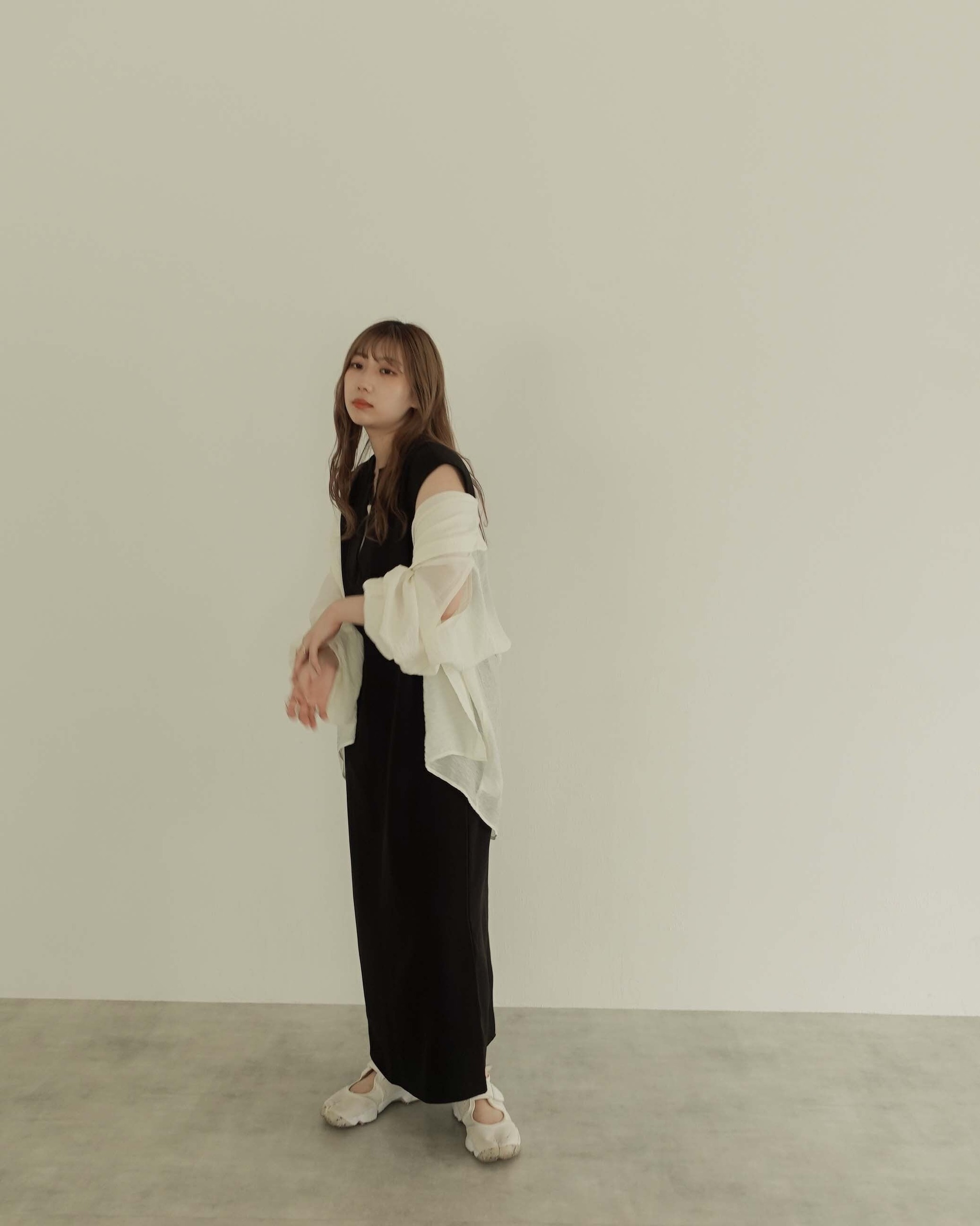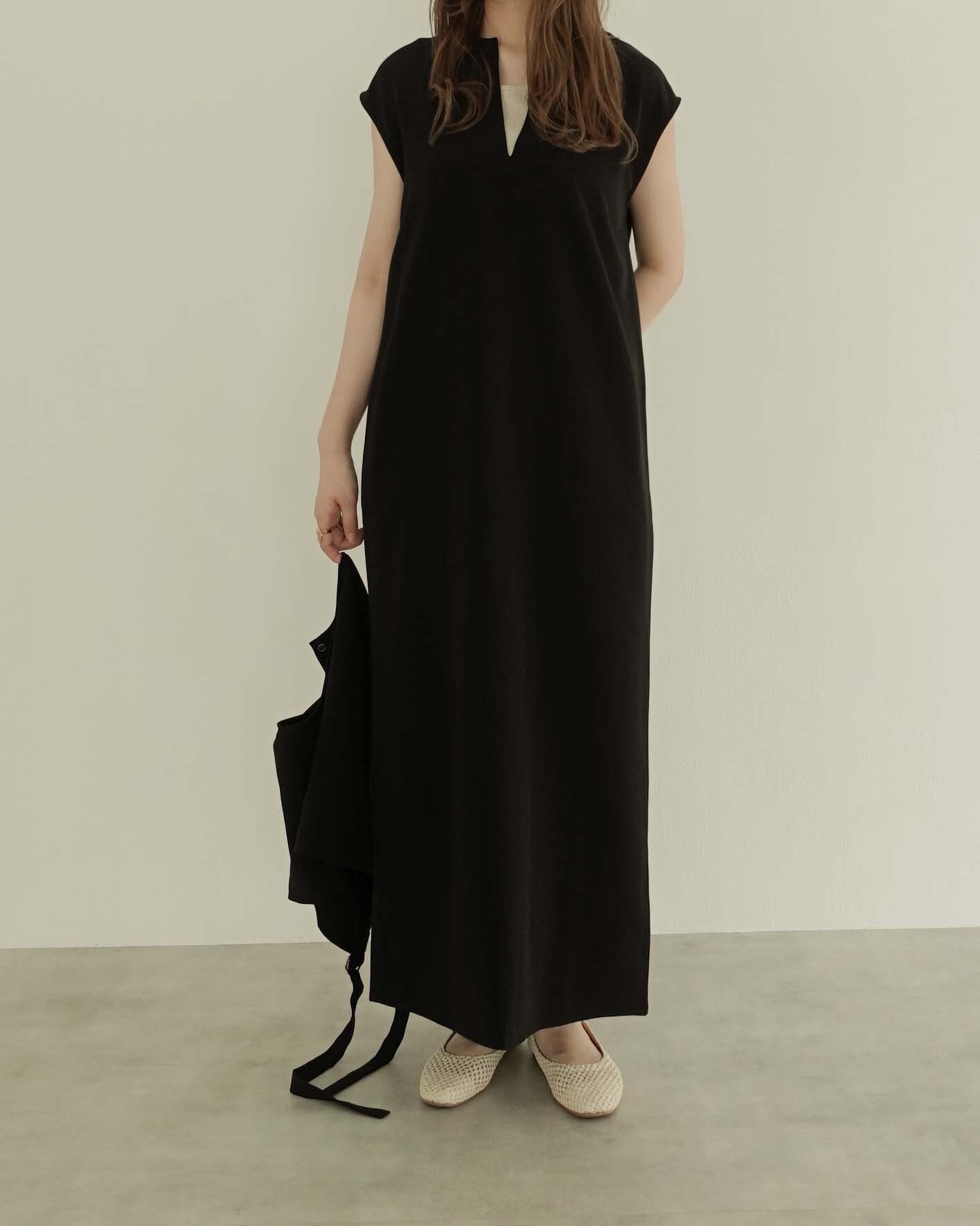 首元のVネックが程よく肌見せしてすっきりした印象に