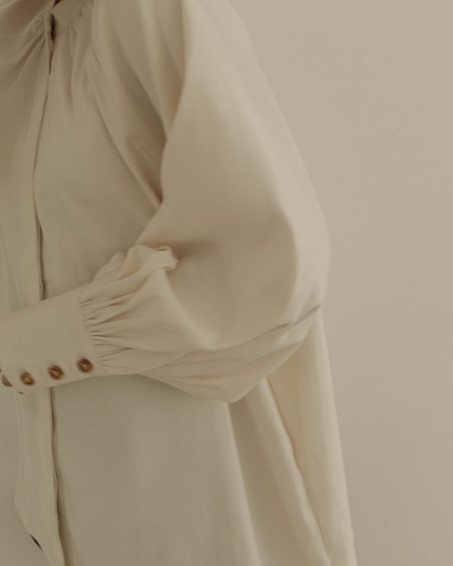 袖部分のタッポリとしたシルエットが女性らしさを演出してくれます。