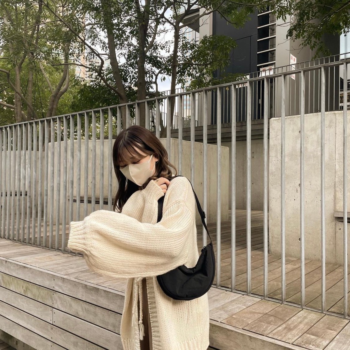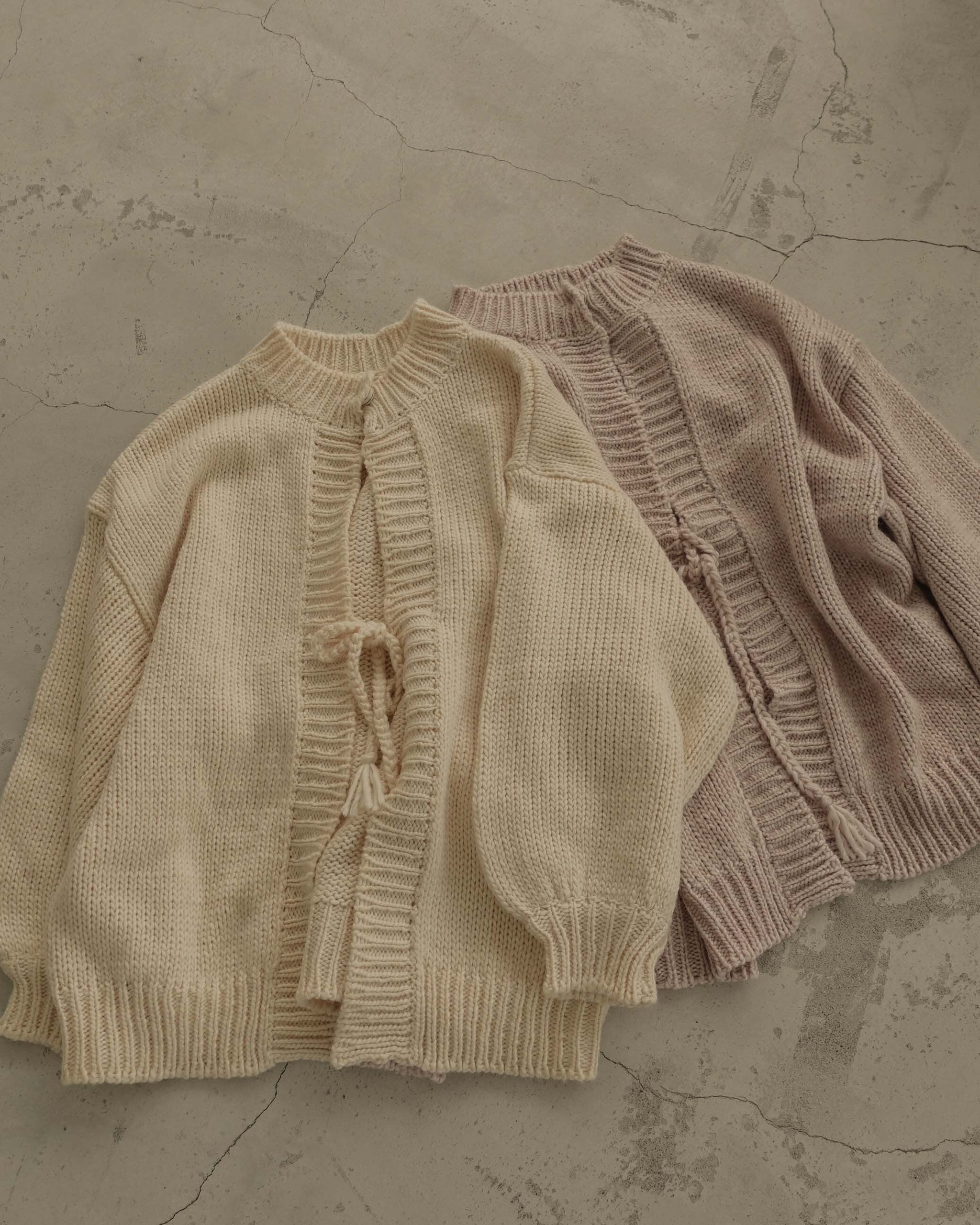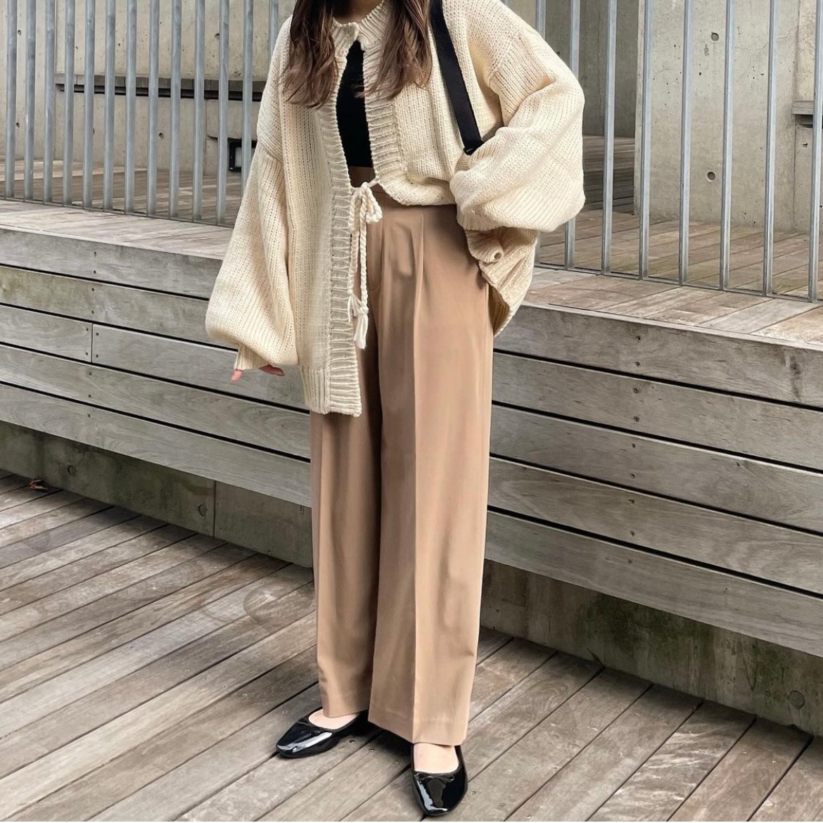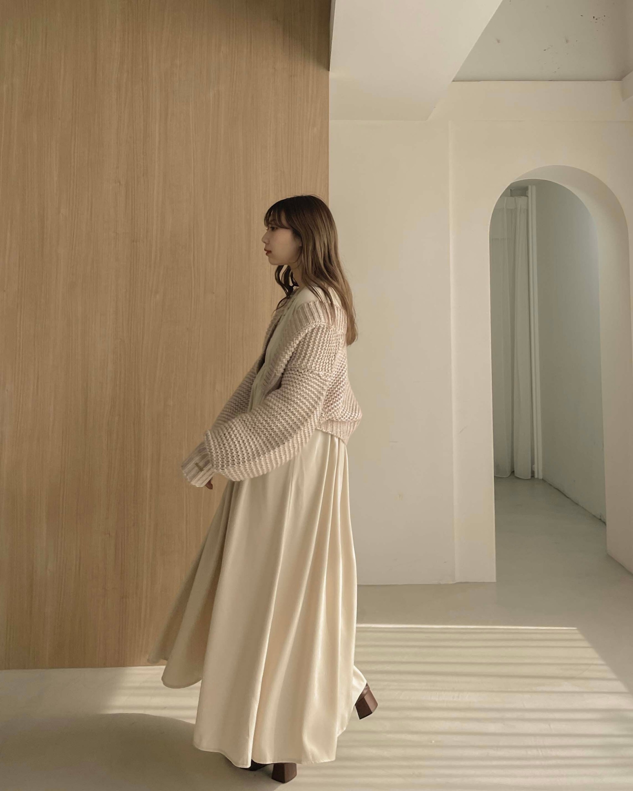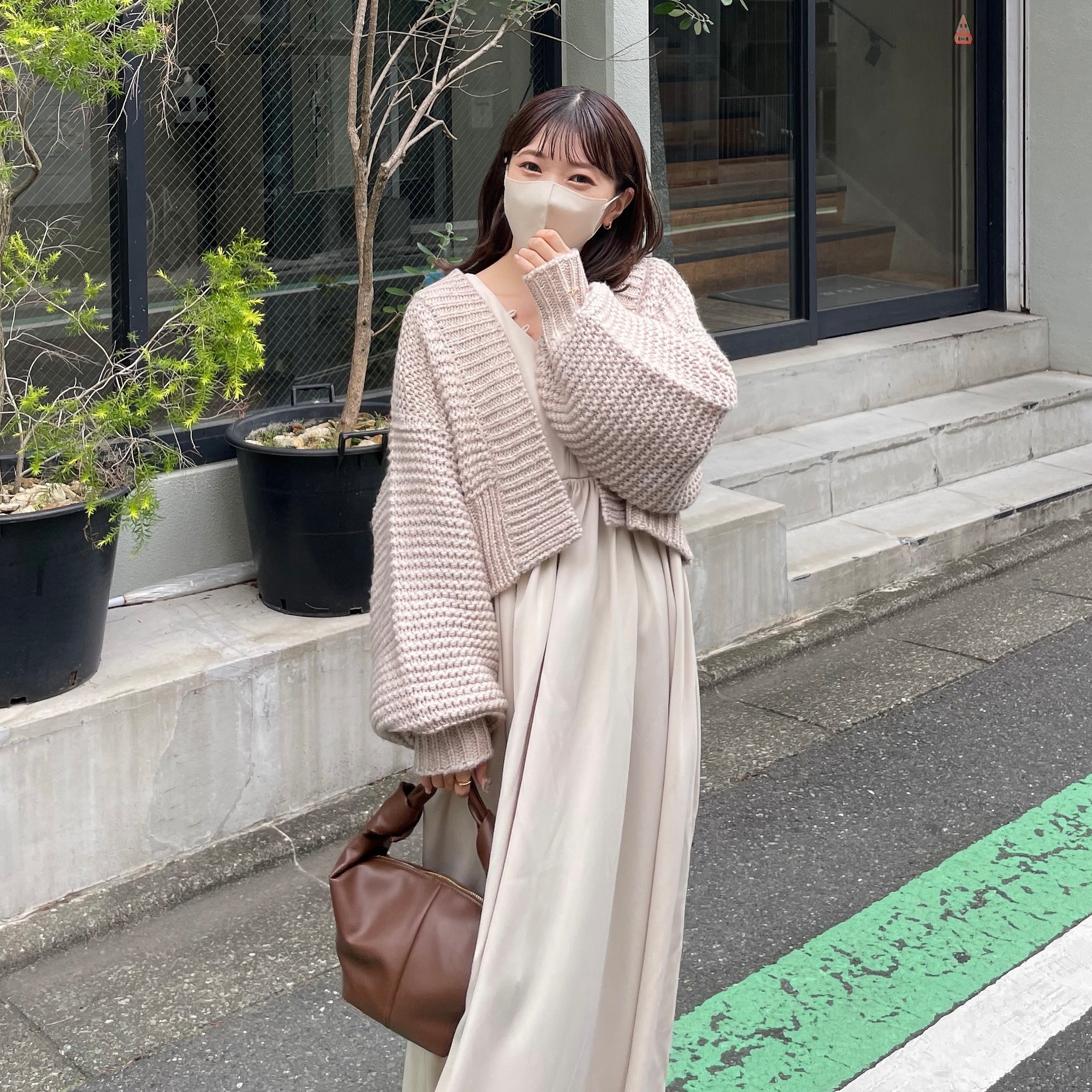 袖のボリューム感とざっくり編んだ編み地がポイント。