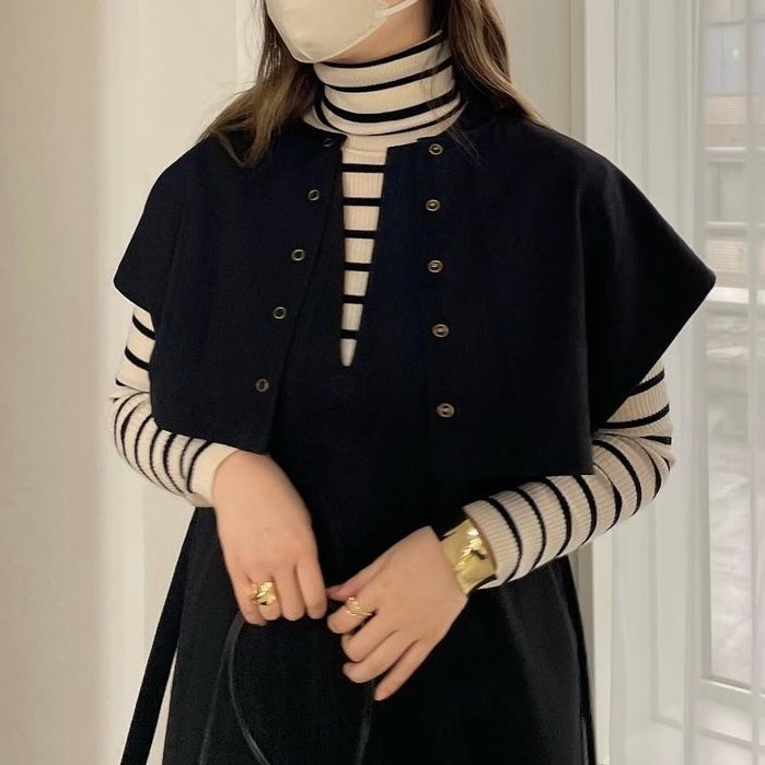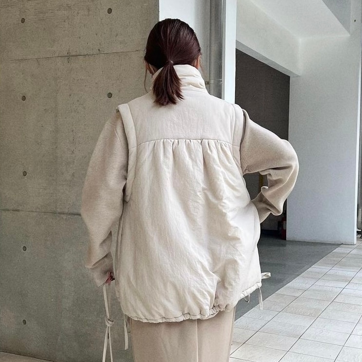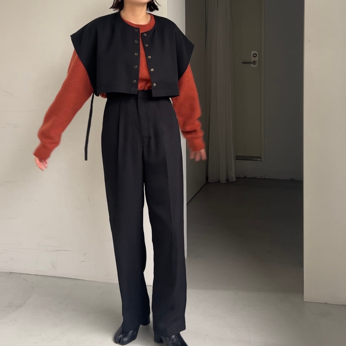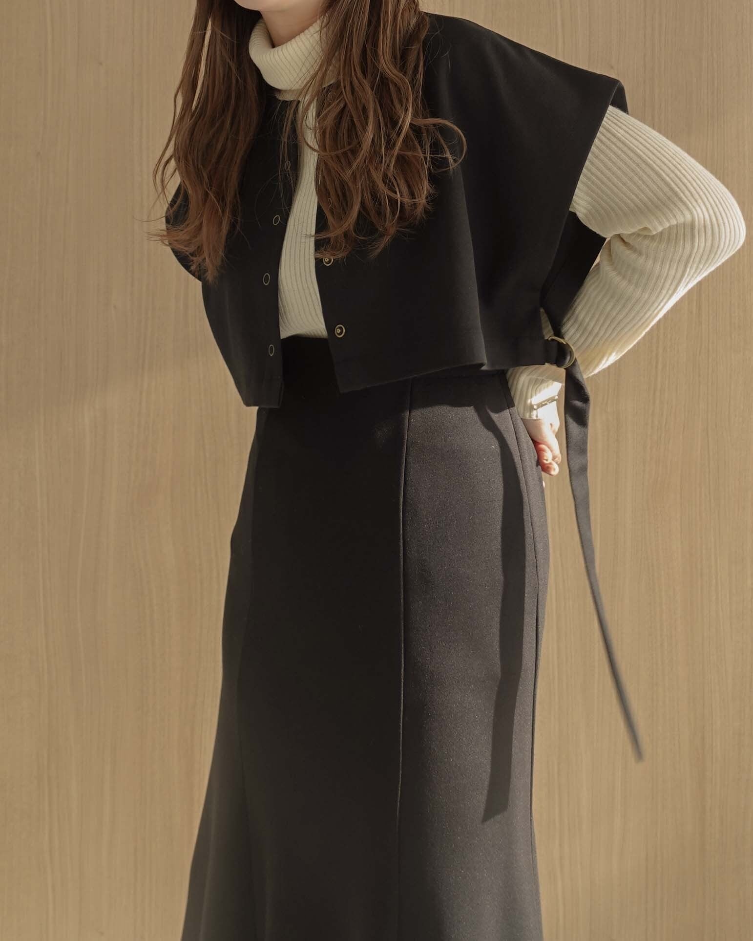 ベストはショート丈で単体でも着られるので着回し力もバッチリ