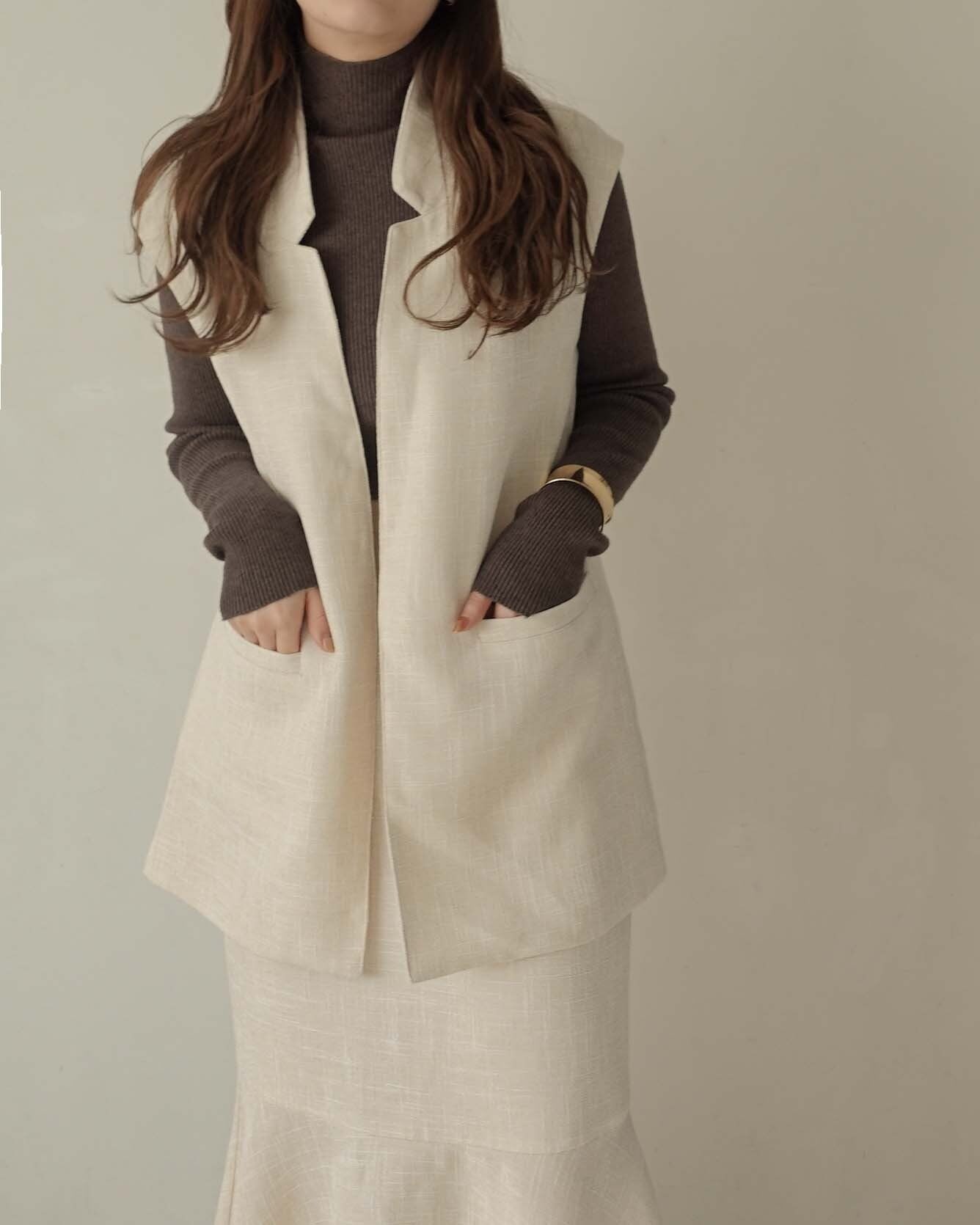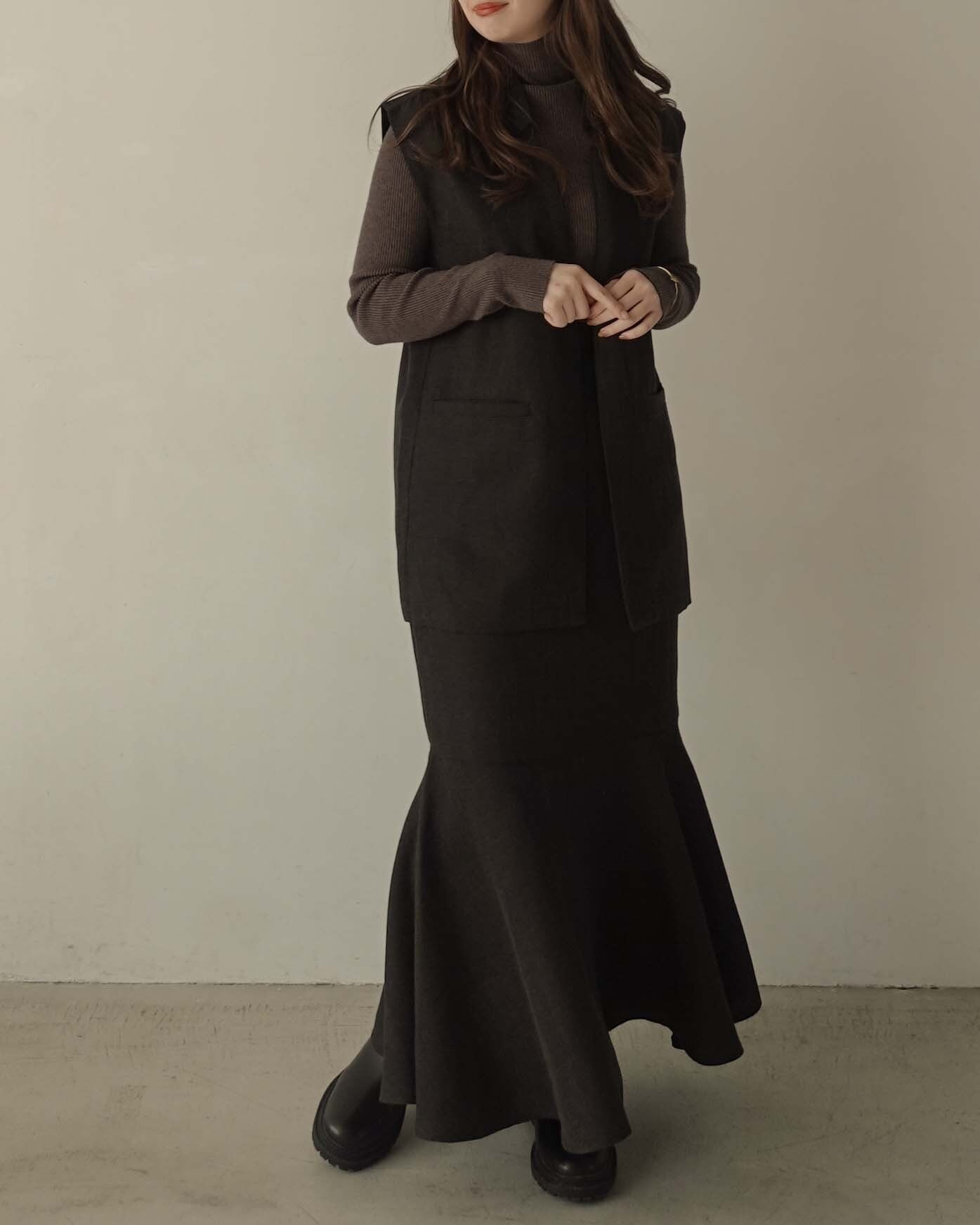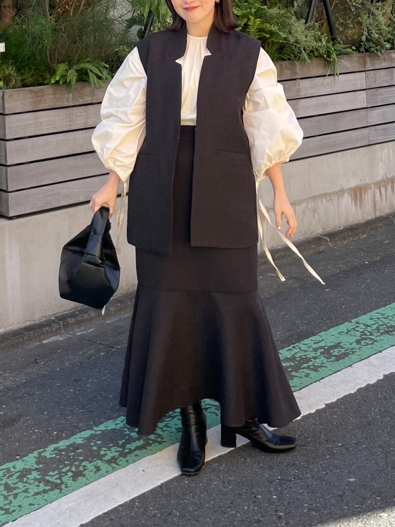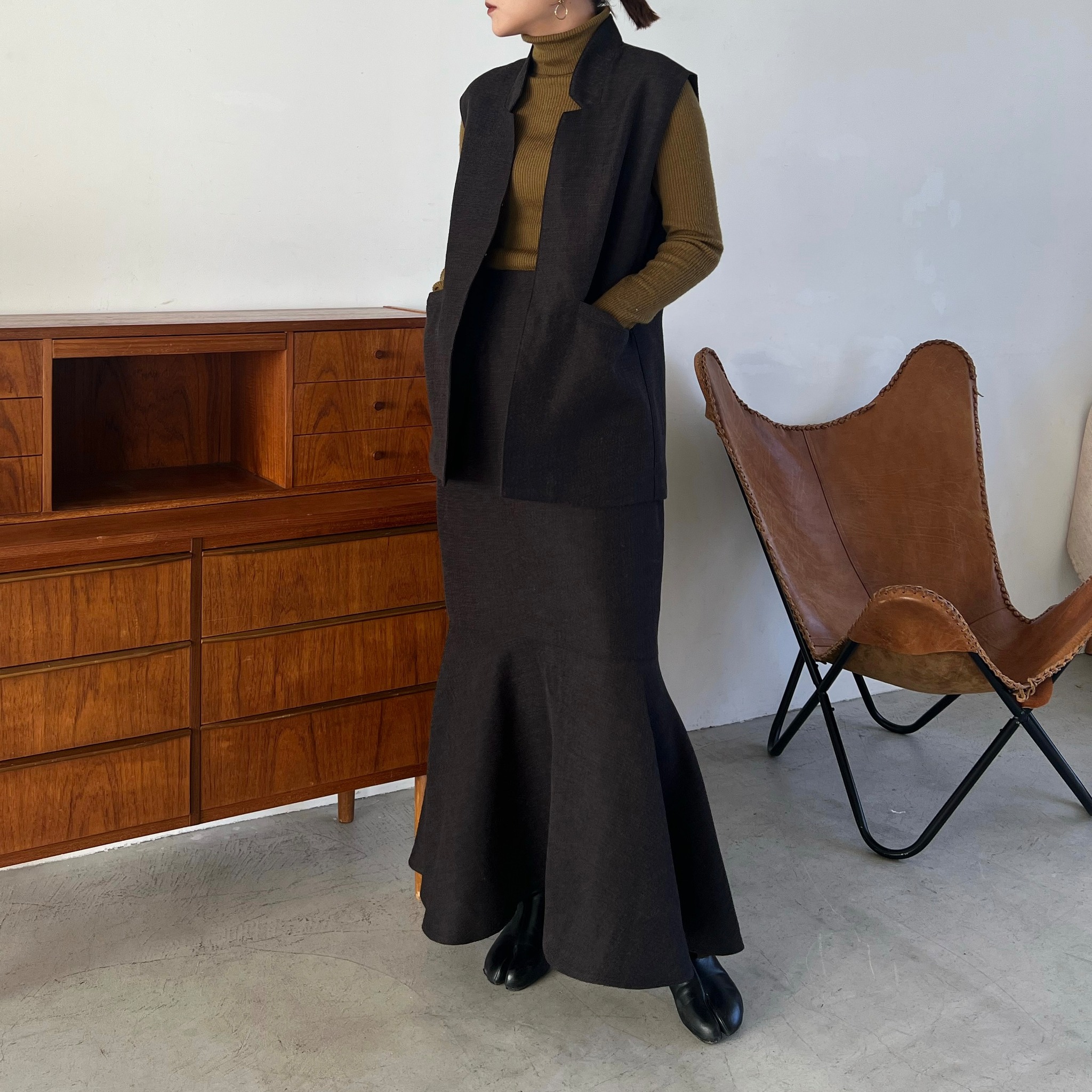 すっきり見えのジレとスタイルアップ間違いなしのマーメイドスカートがセットになったアイテム