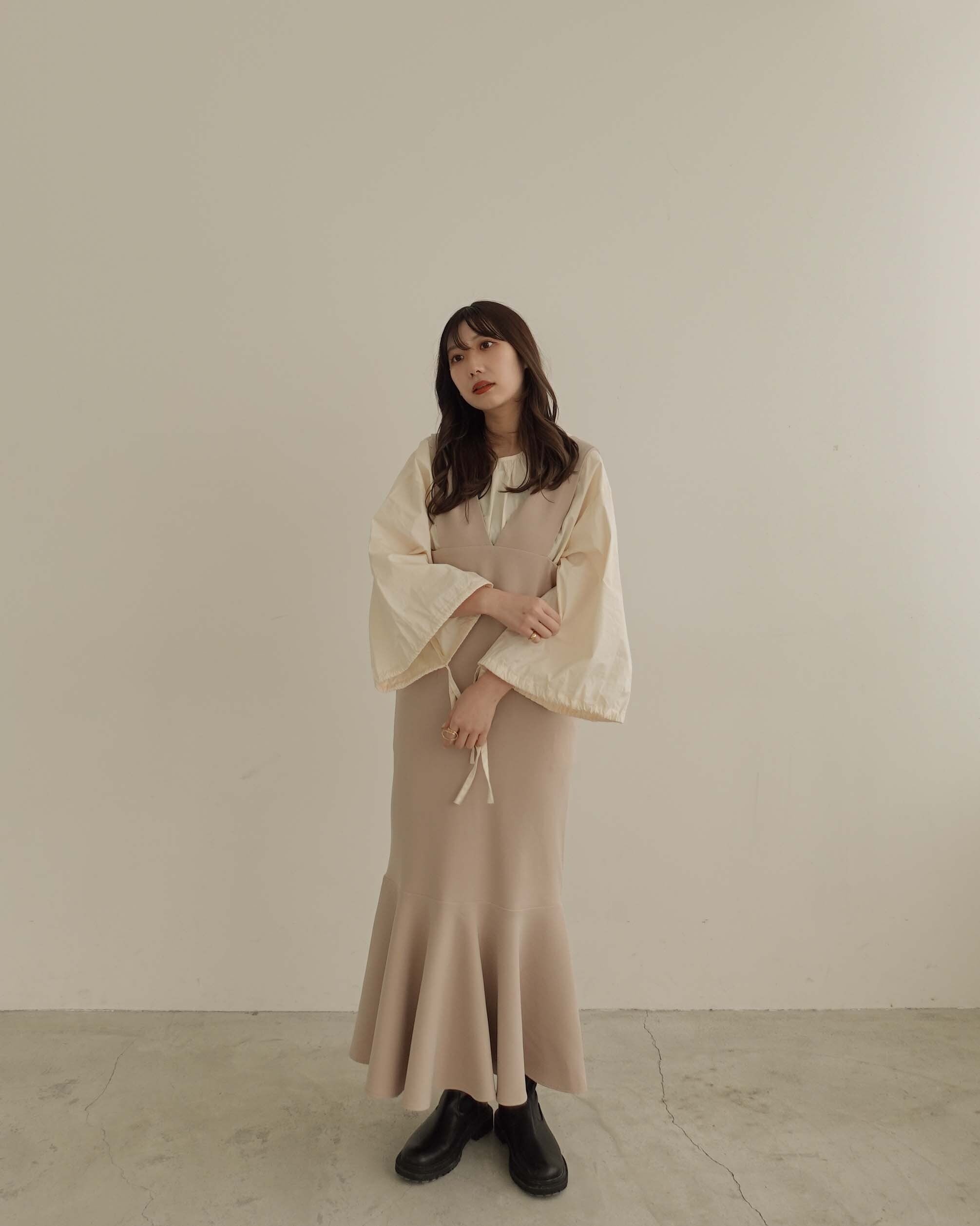 ■AM14 high waist one piece × 2way gather flare blouse 【set発売】