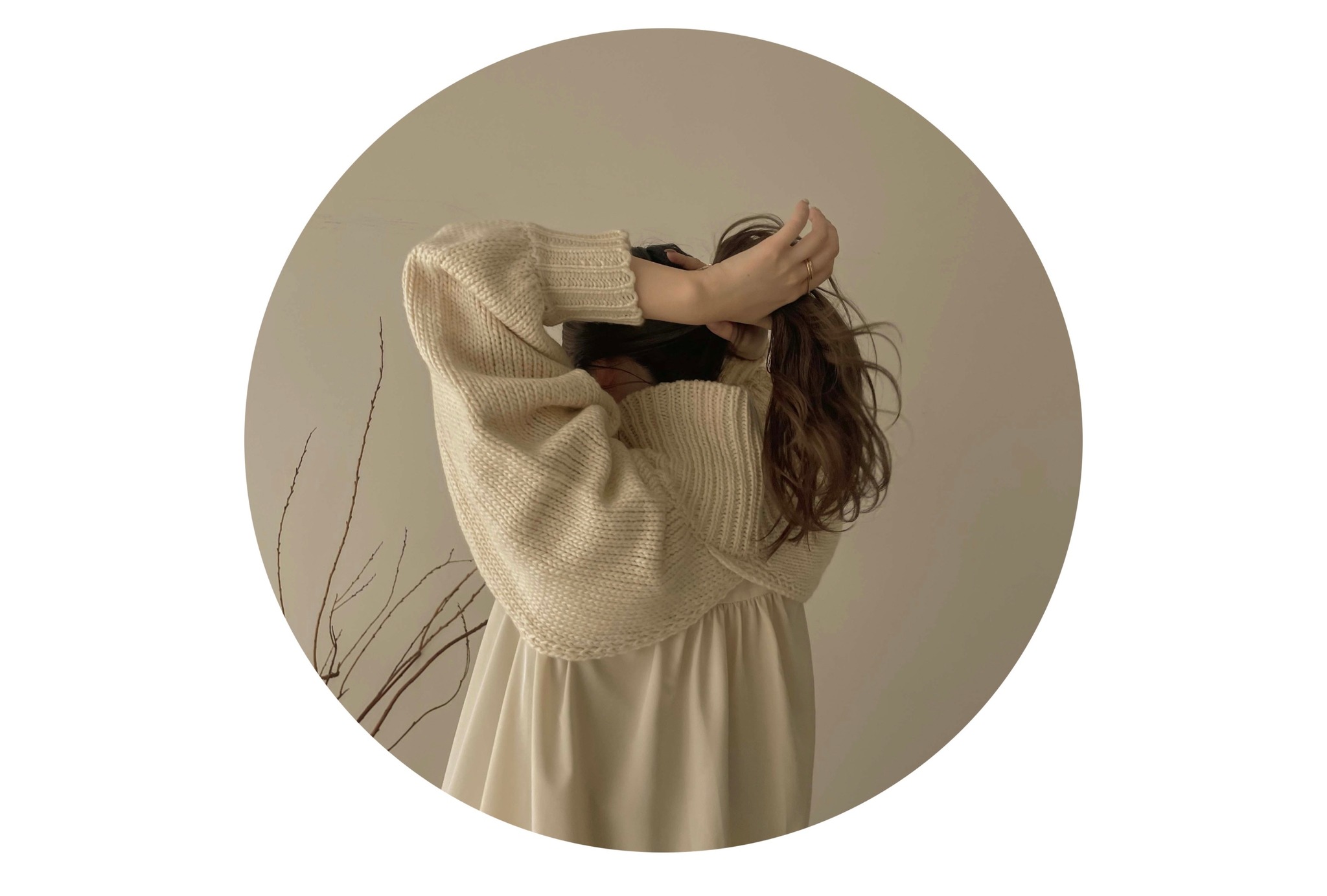 カラーカーディガンを羽織ることで、大人っぽさを残しつつ