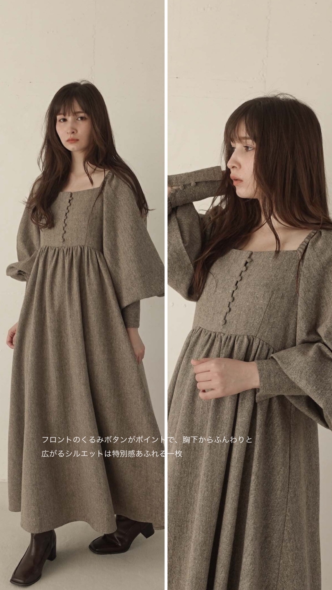 ■ AM341007 tweed square neck one piece