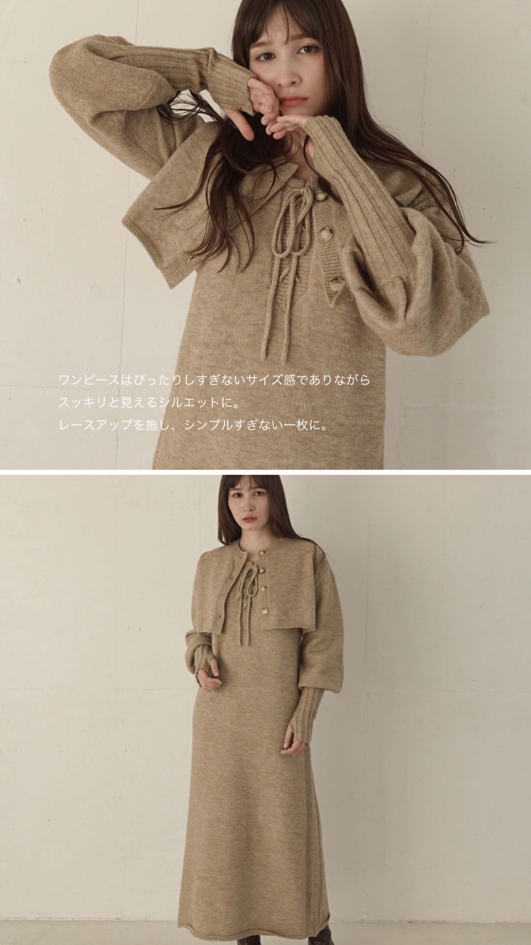 ■ AM341006 knit cardigan×lace up knit onepiece set