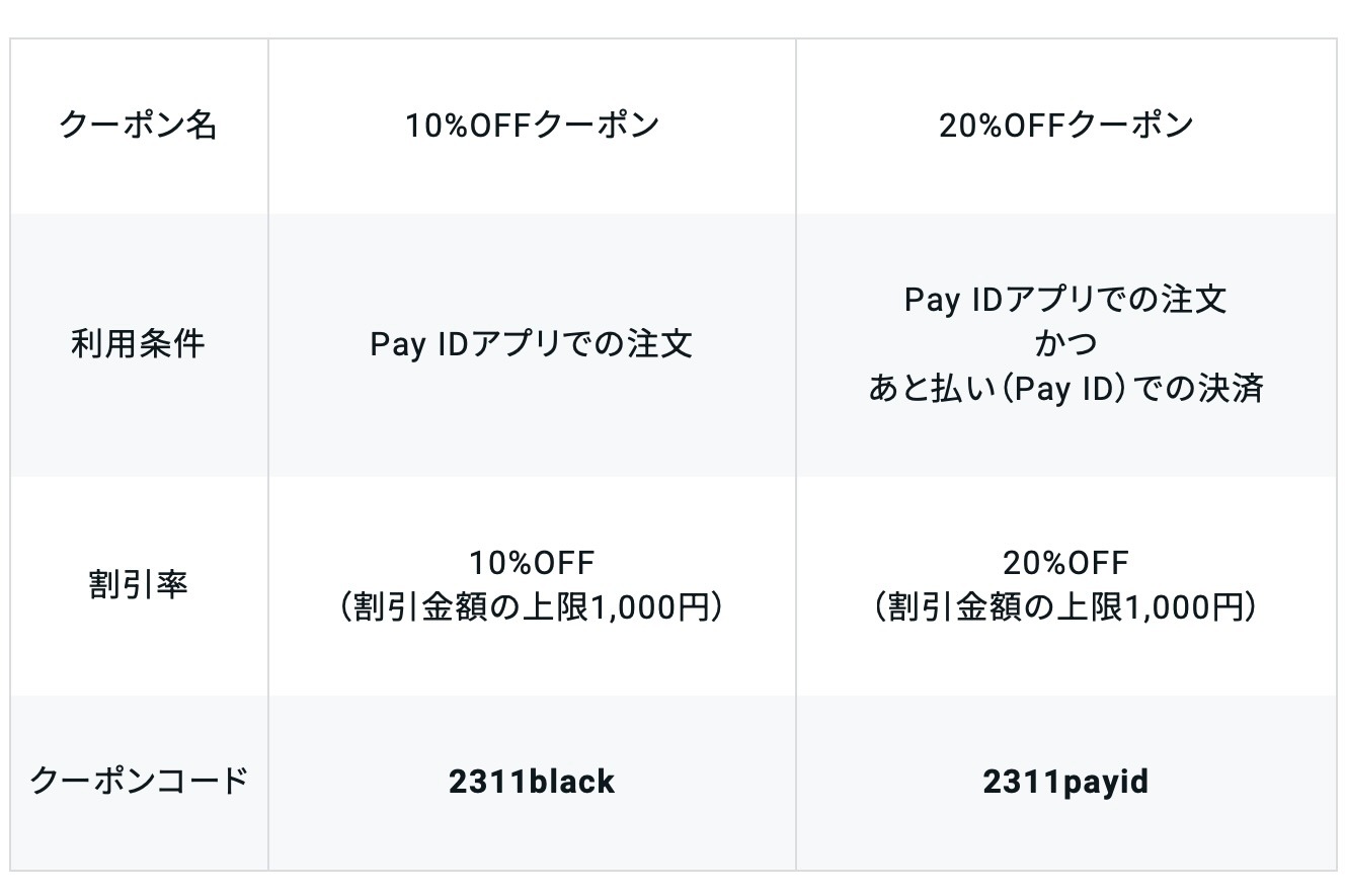 ②あと払い(Pay ID) 利用でお使いいただける20%OFFクーポン