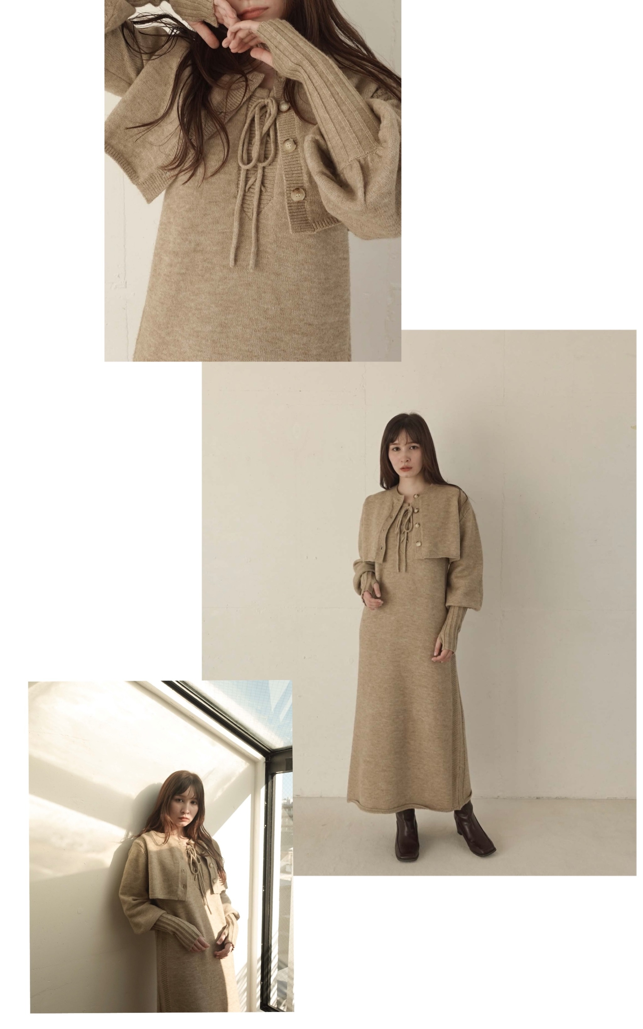 カーディガンは、指を通せるフィンガーホールデザインで、手袋いらずで暖かく