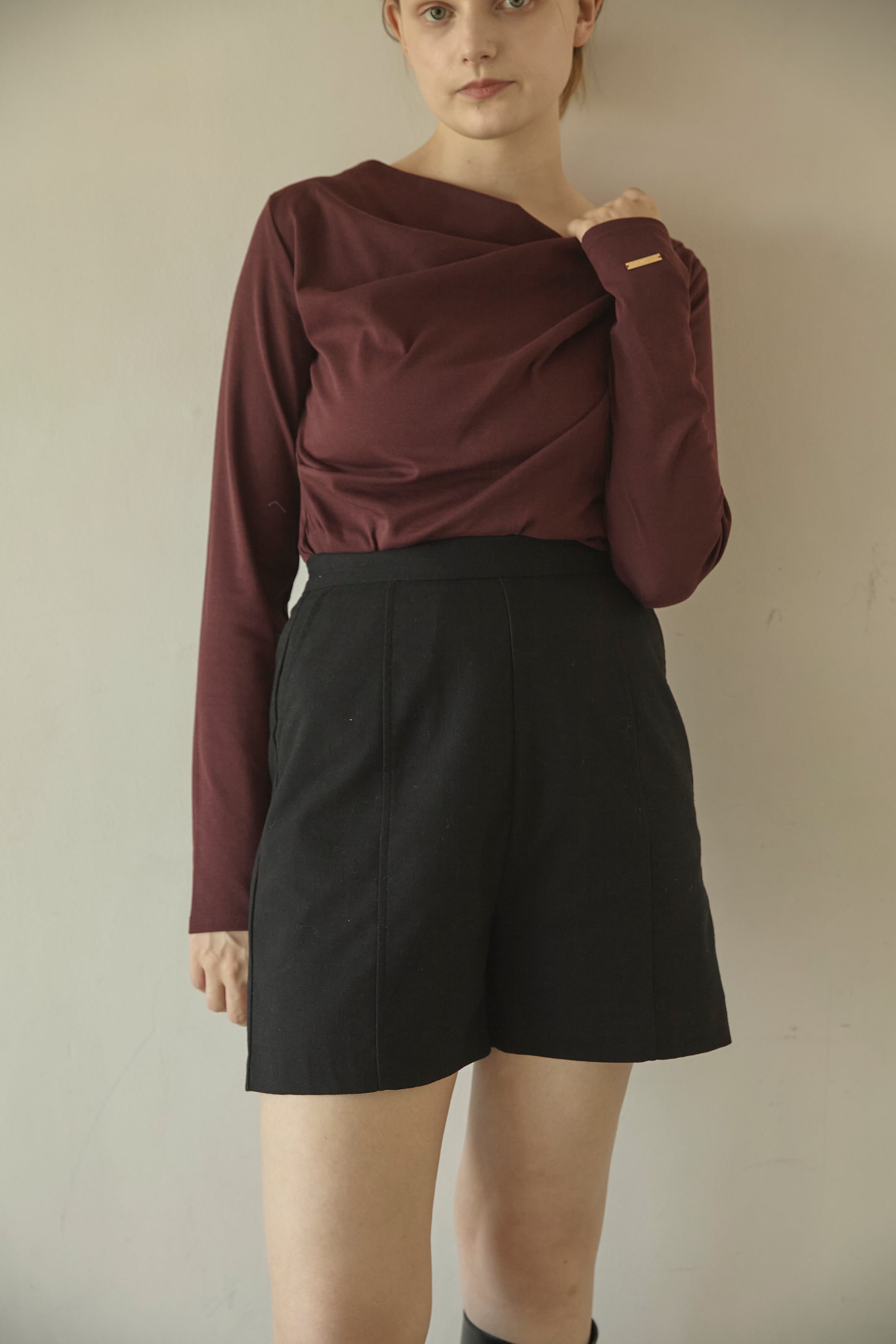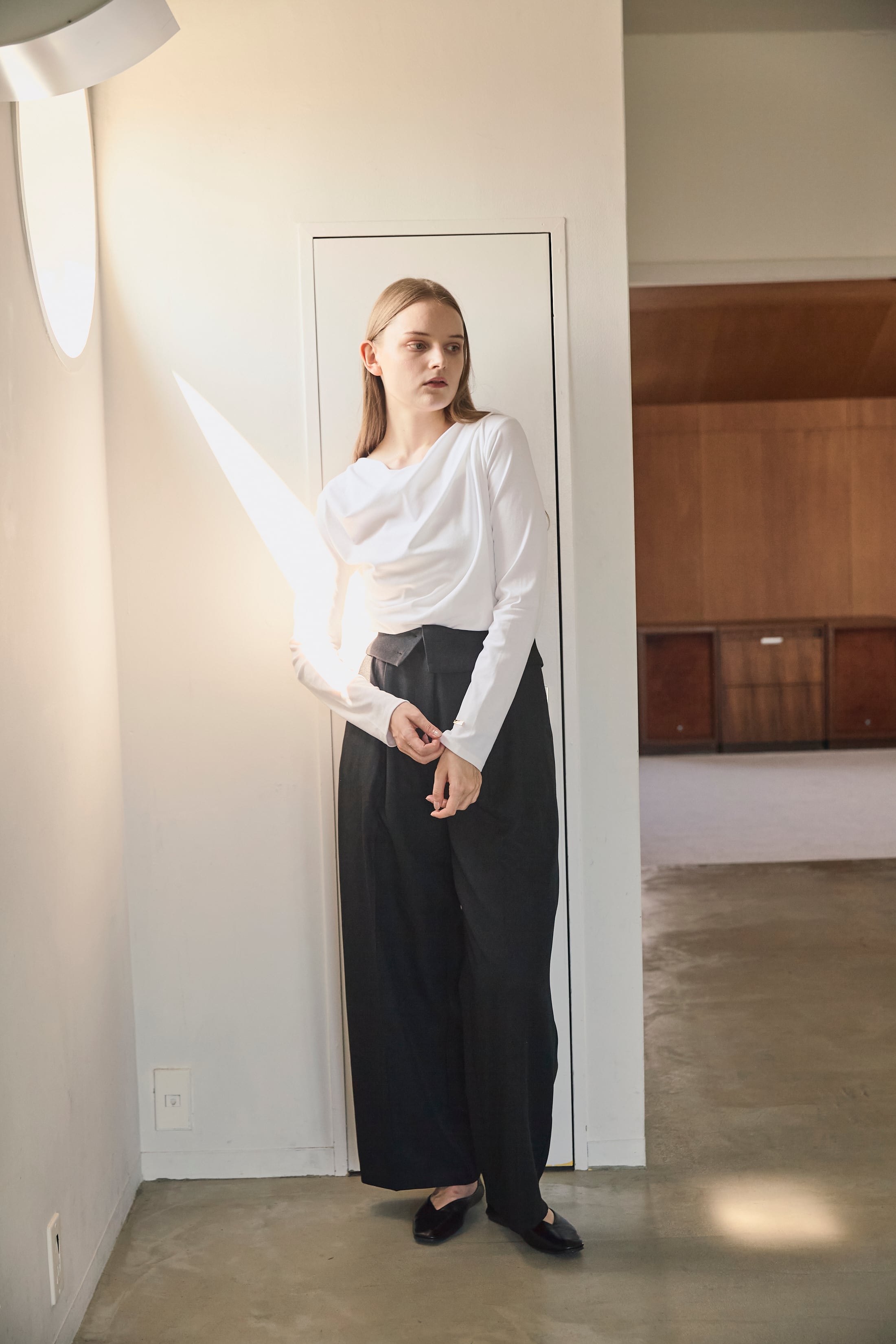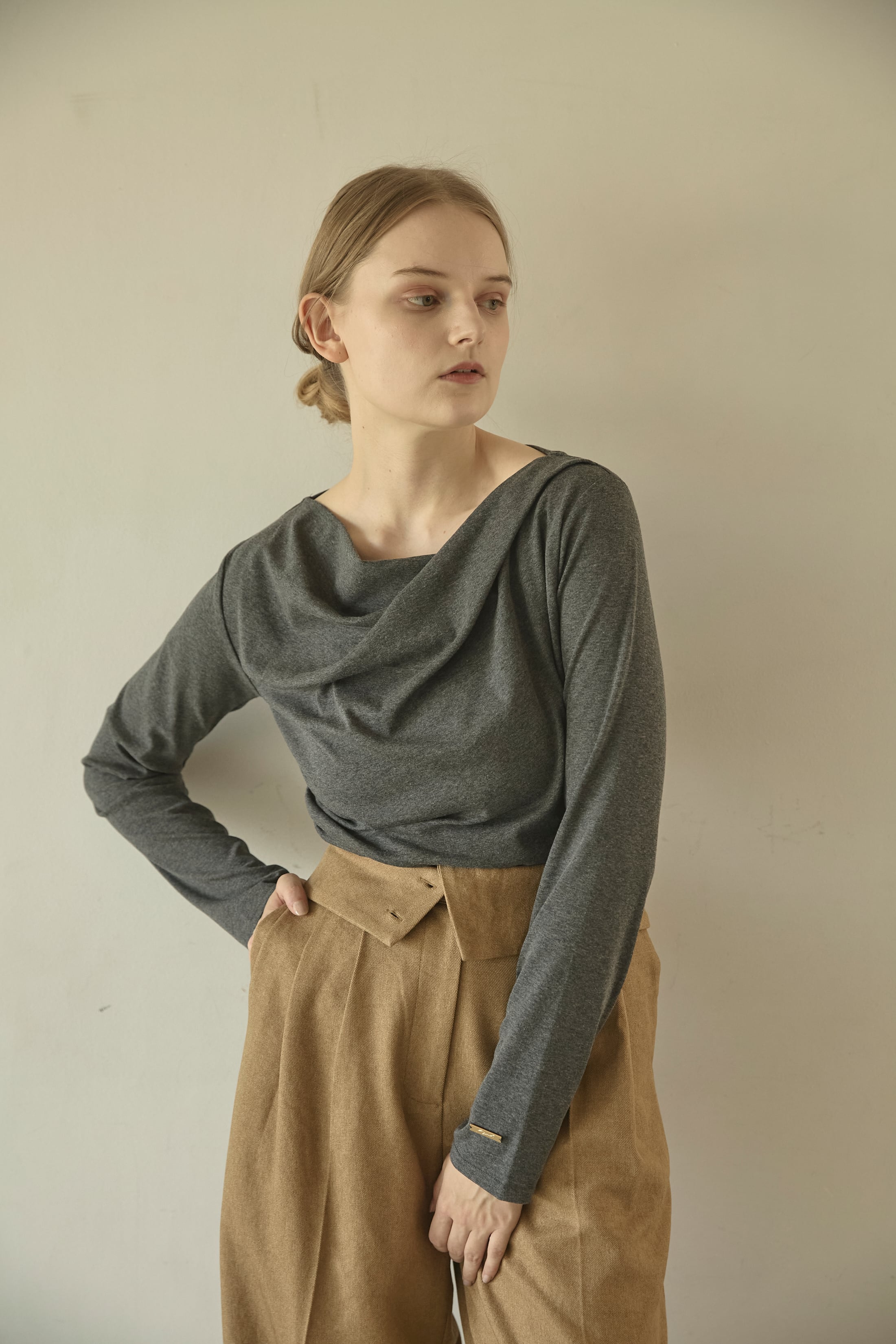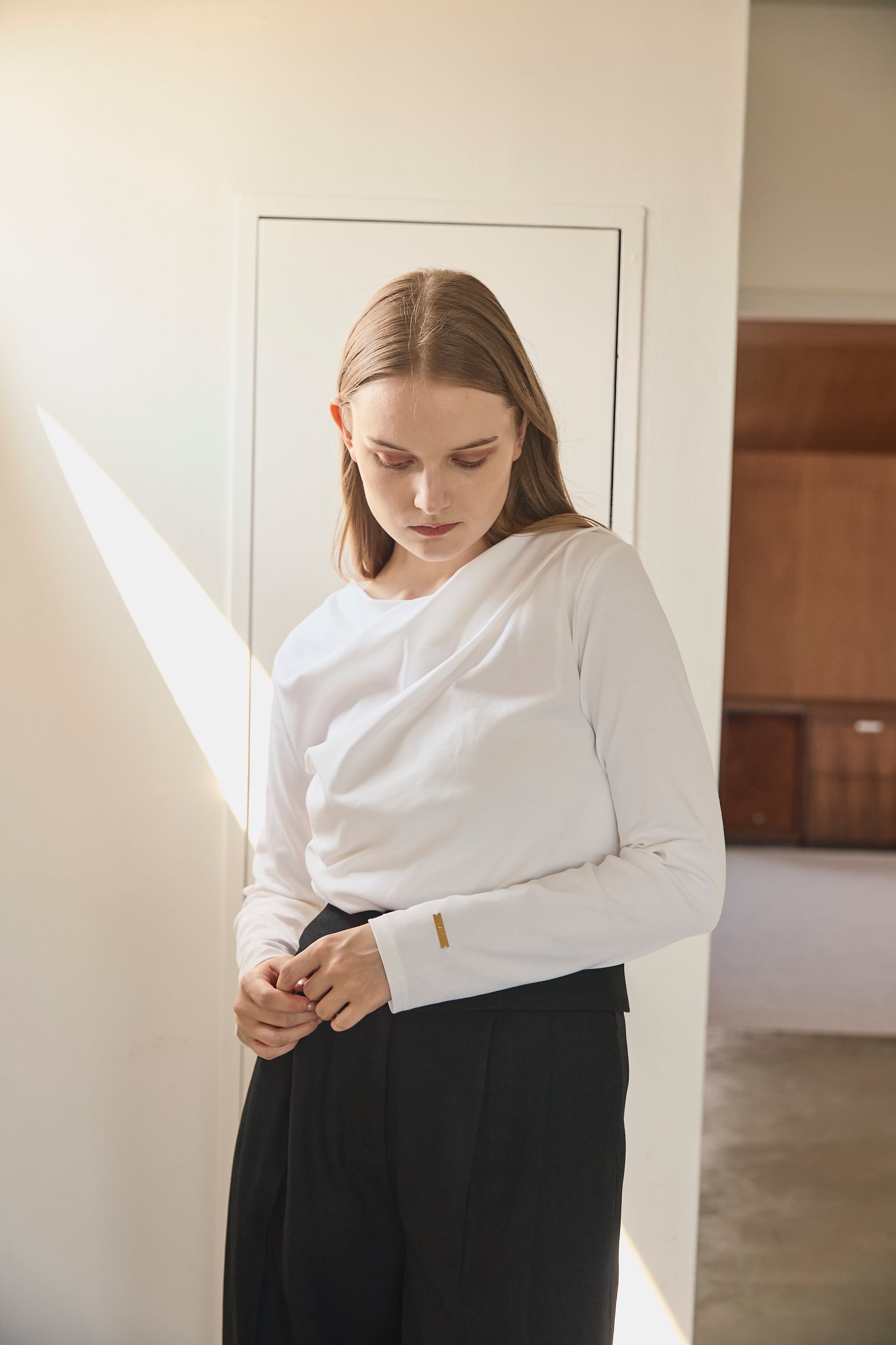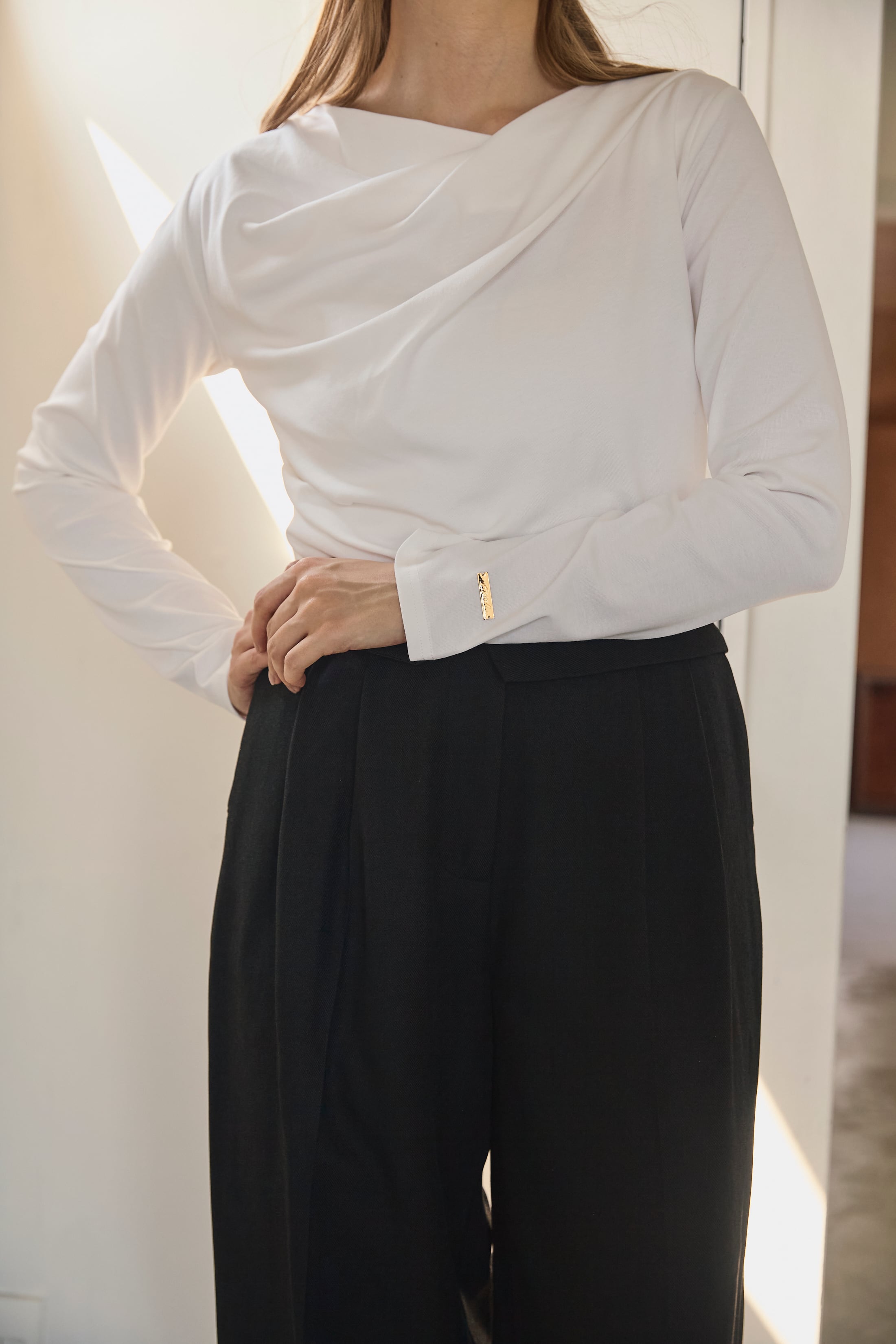 一枚で大人っぽくキマるドレープデザインのカットソー