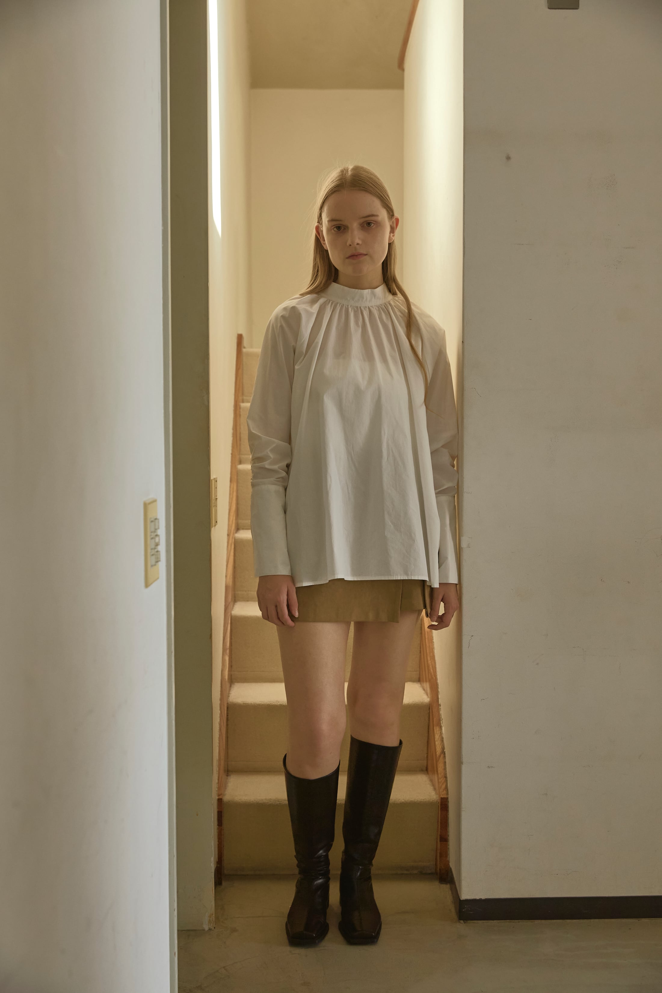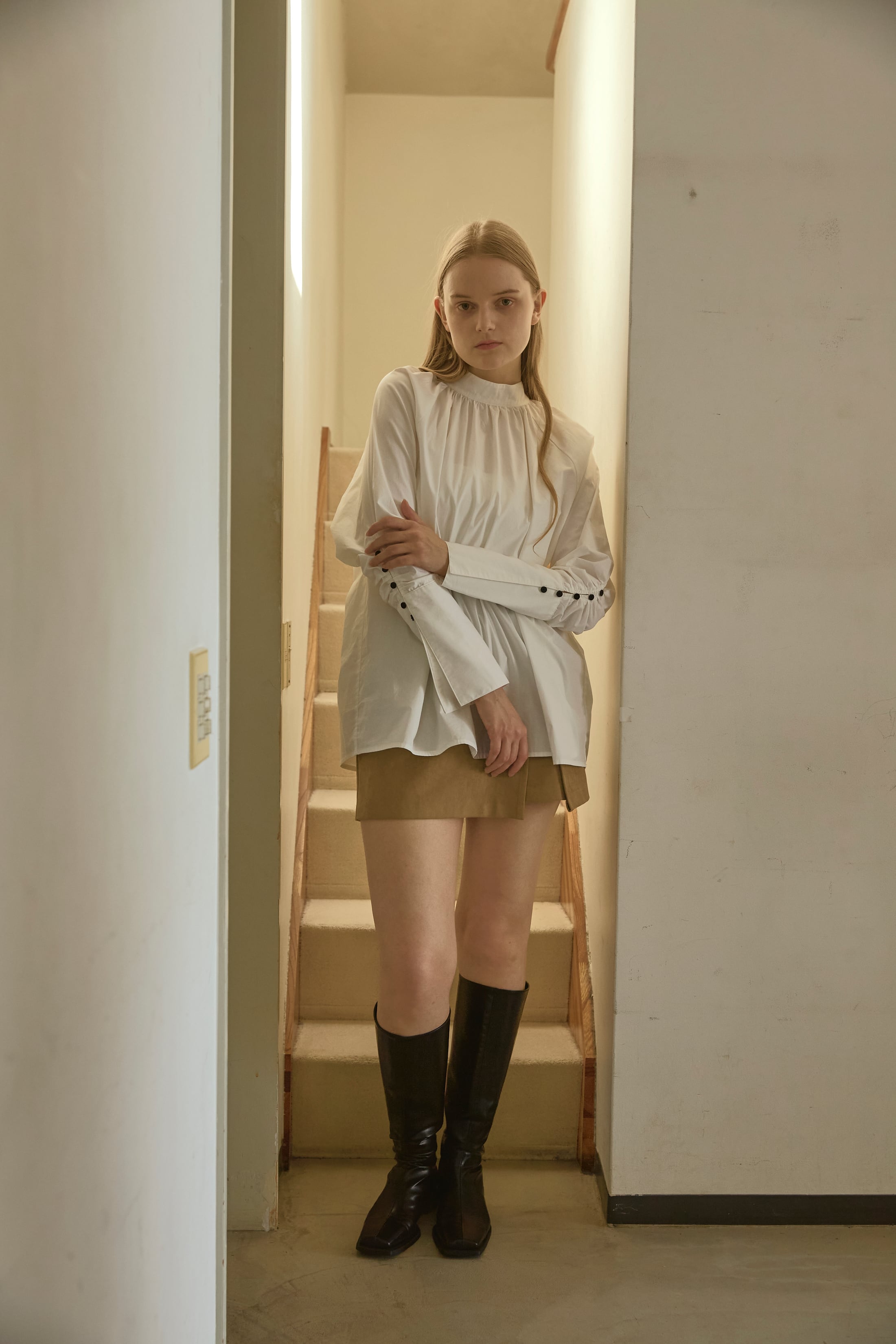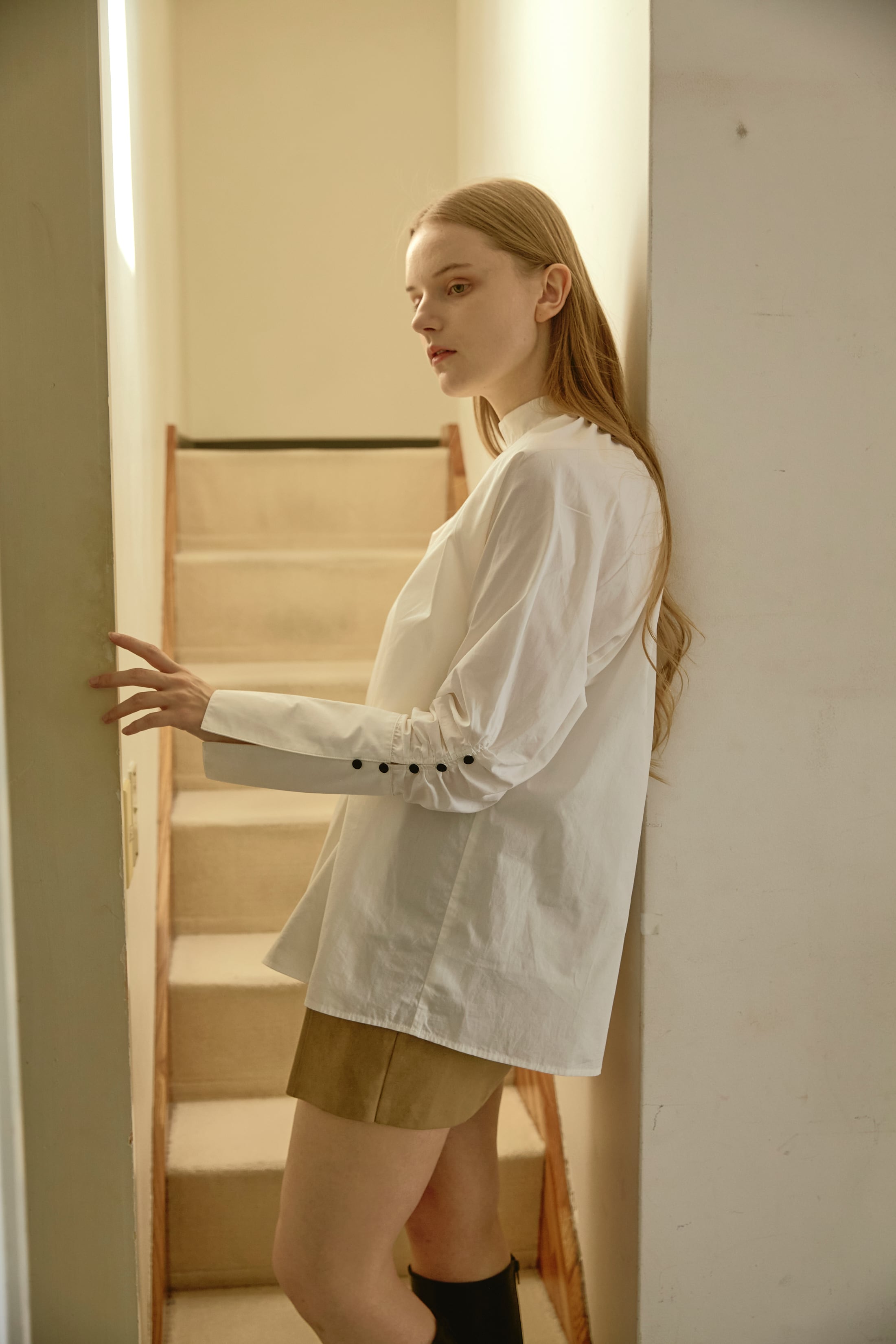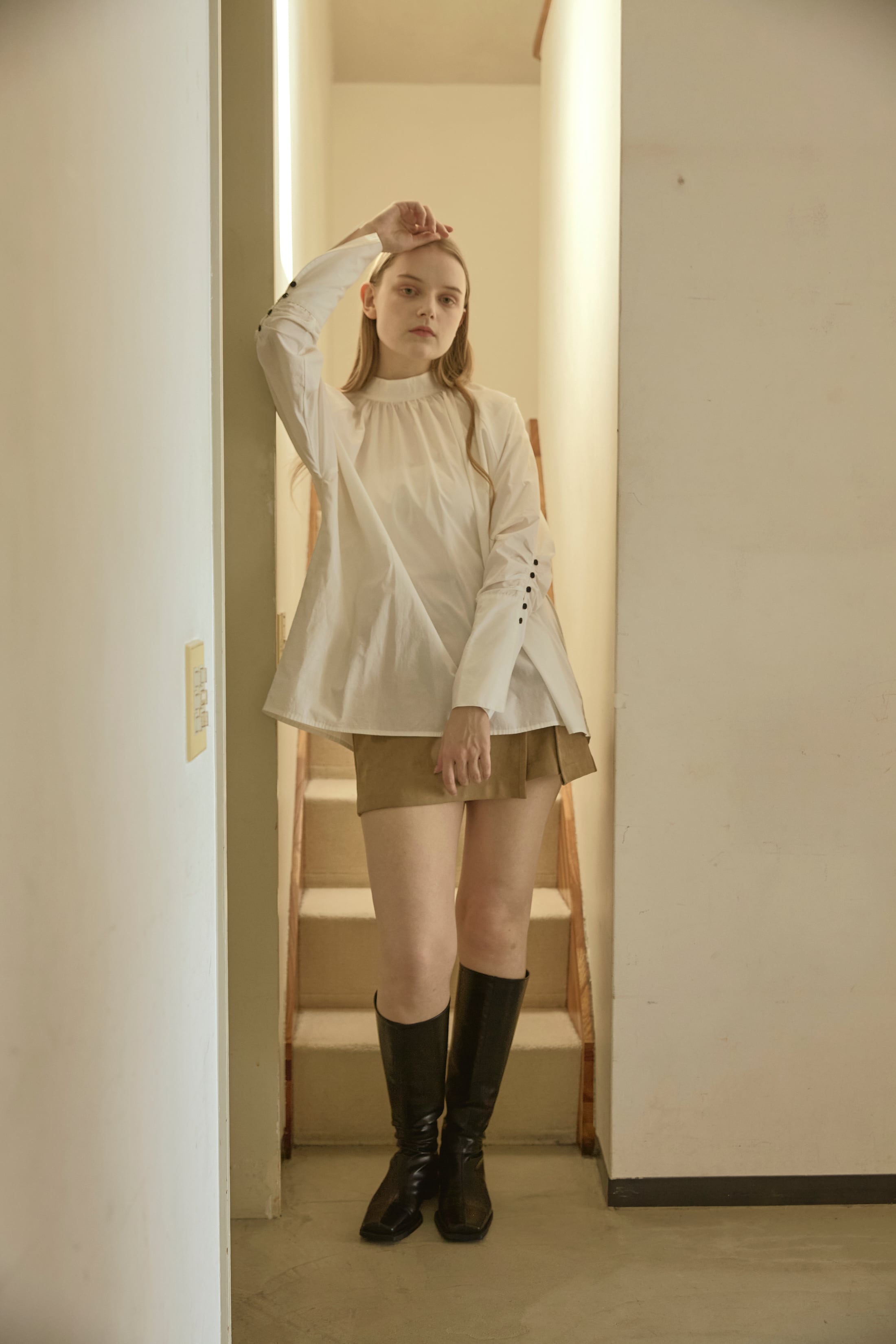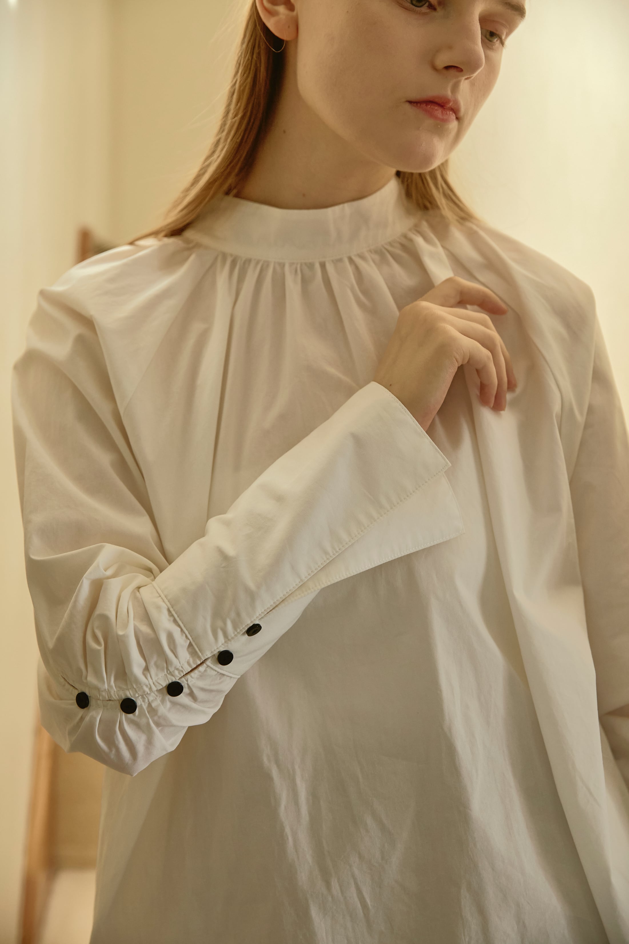 ロングカフスリットとボタンデザインが特徴的なブラウス