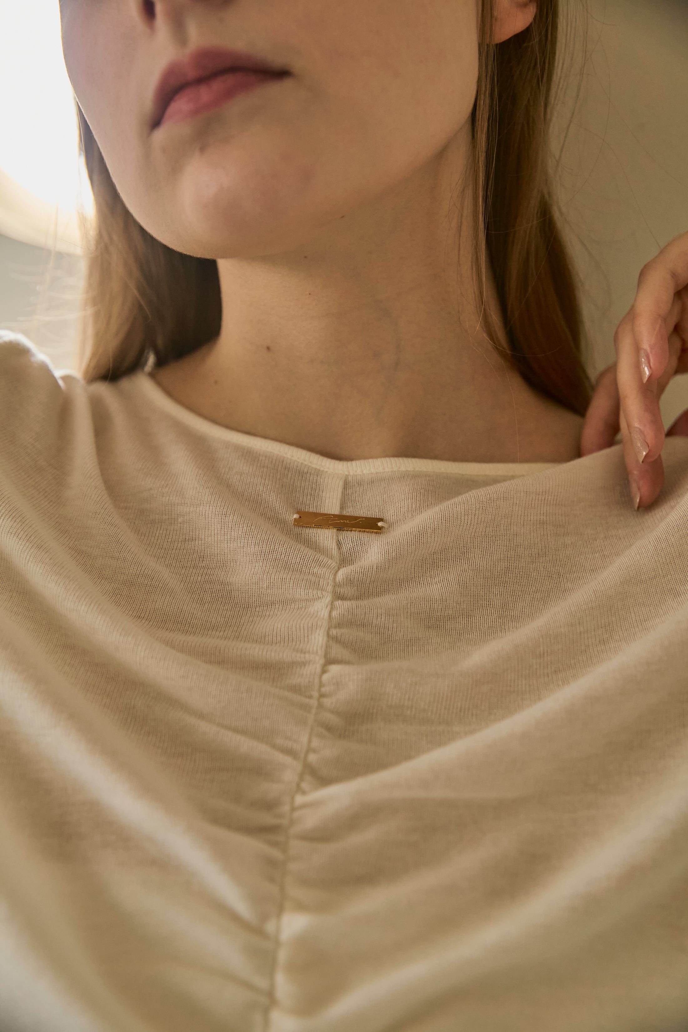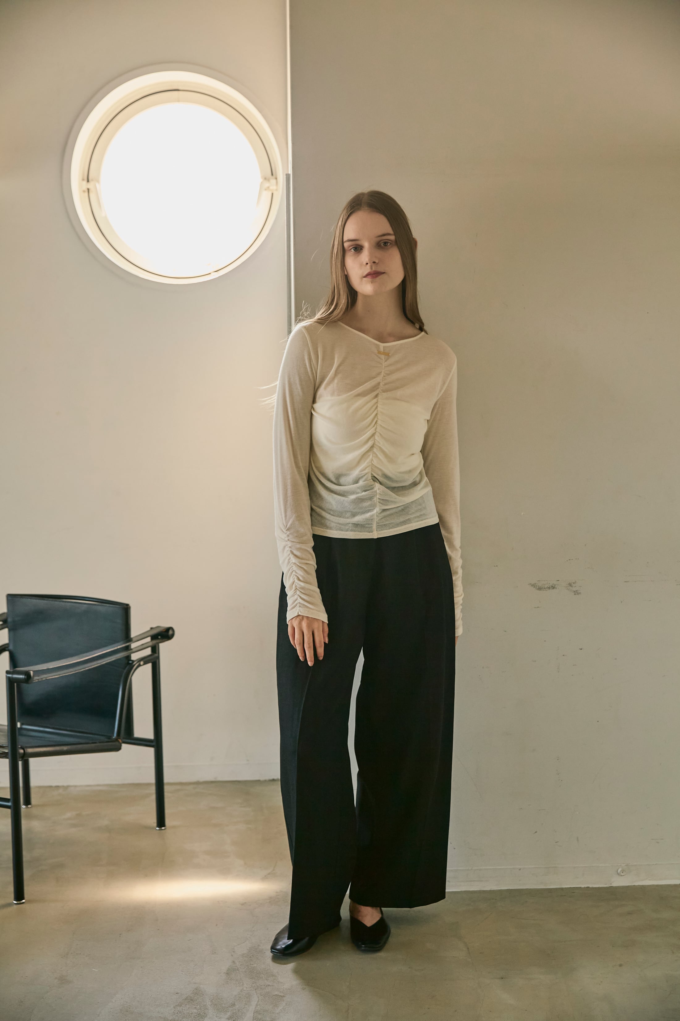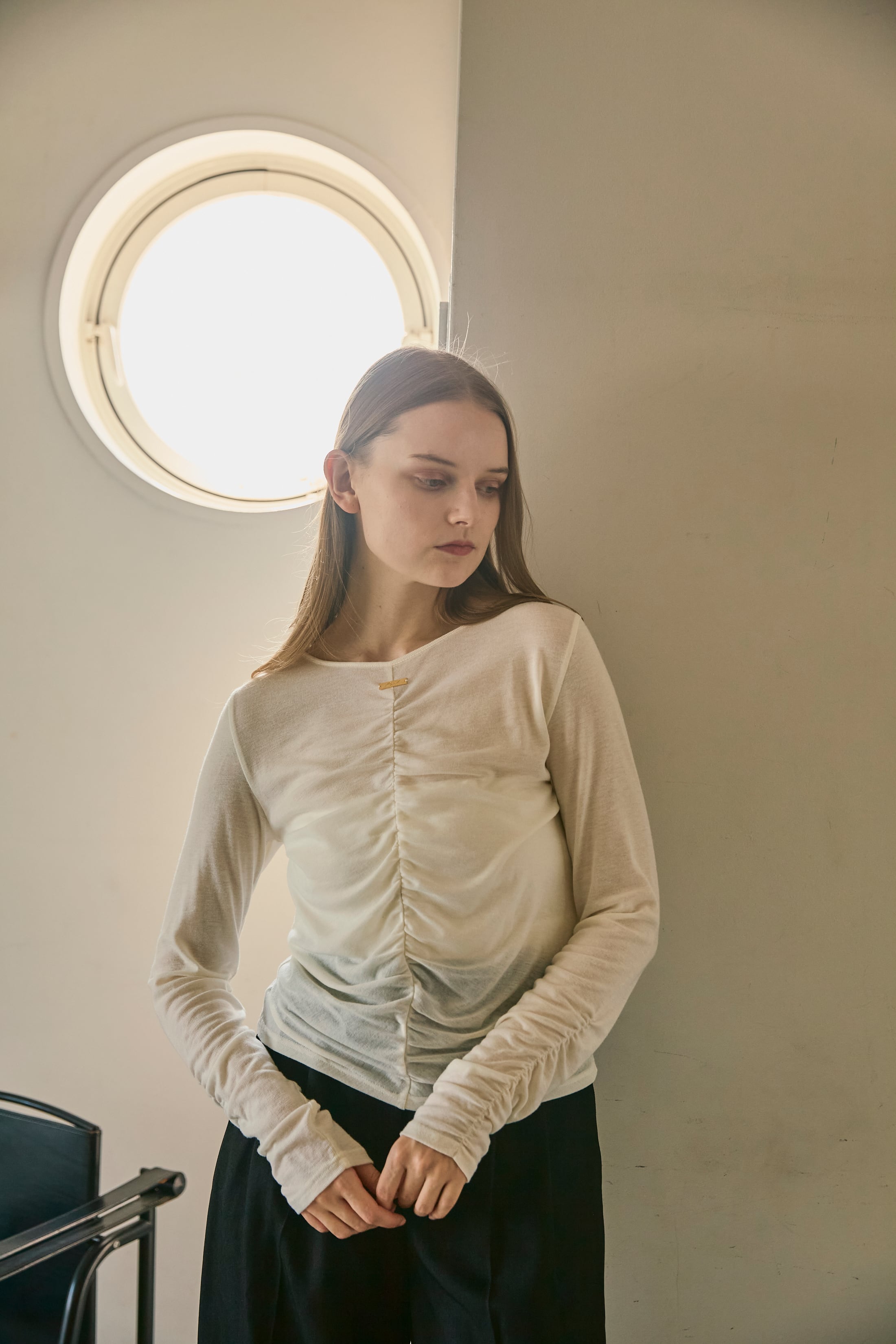 程よい透け感と、フロントの金プレートが女性らしさを演出◎