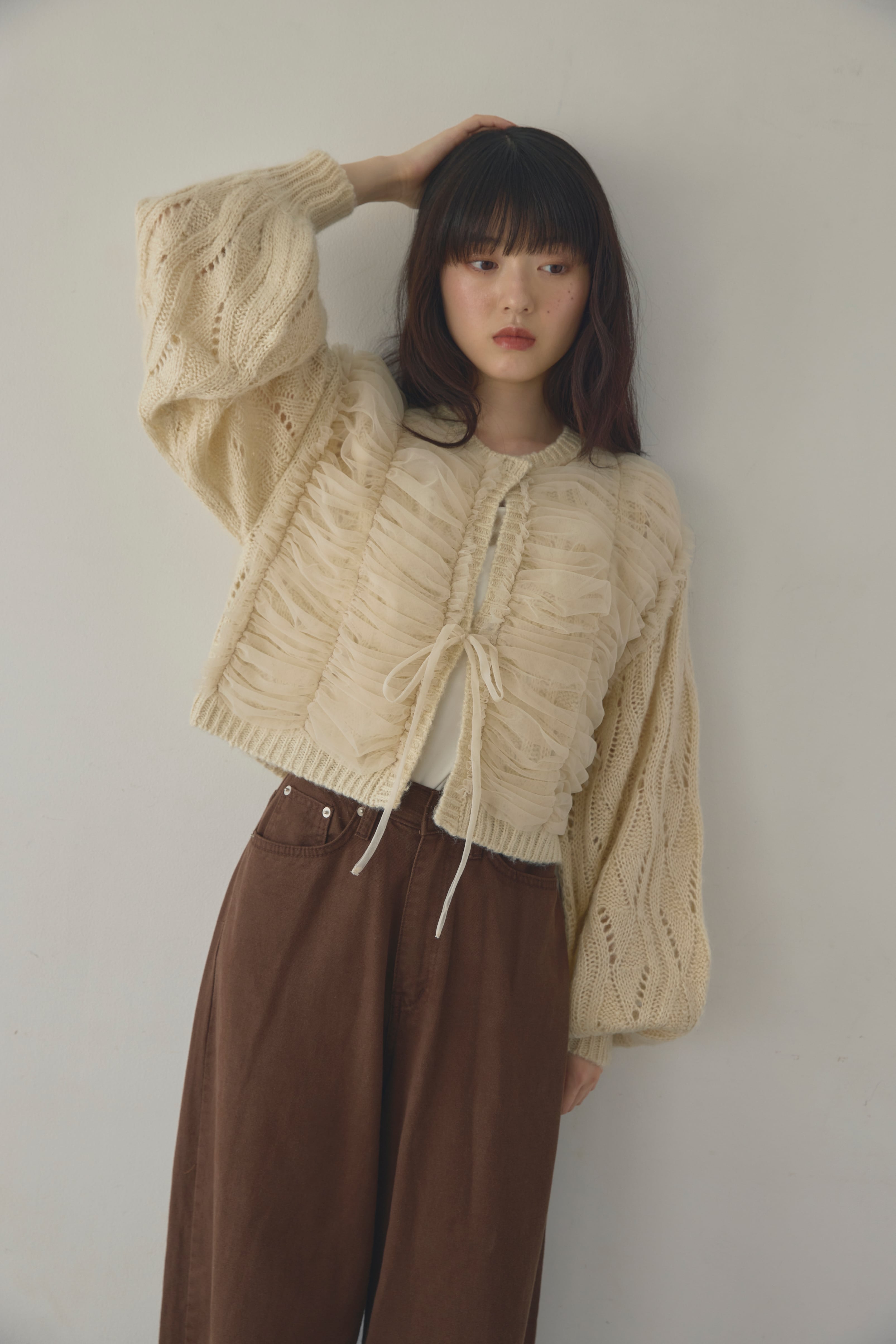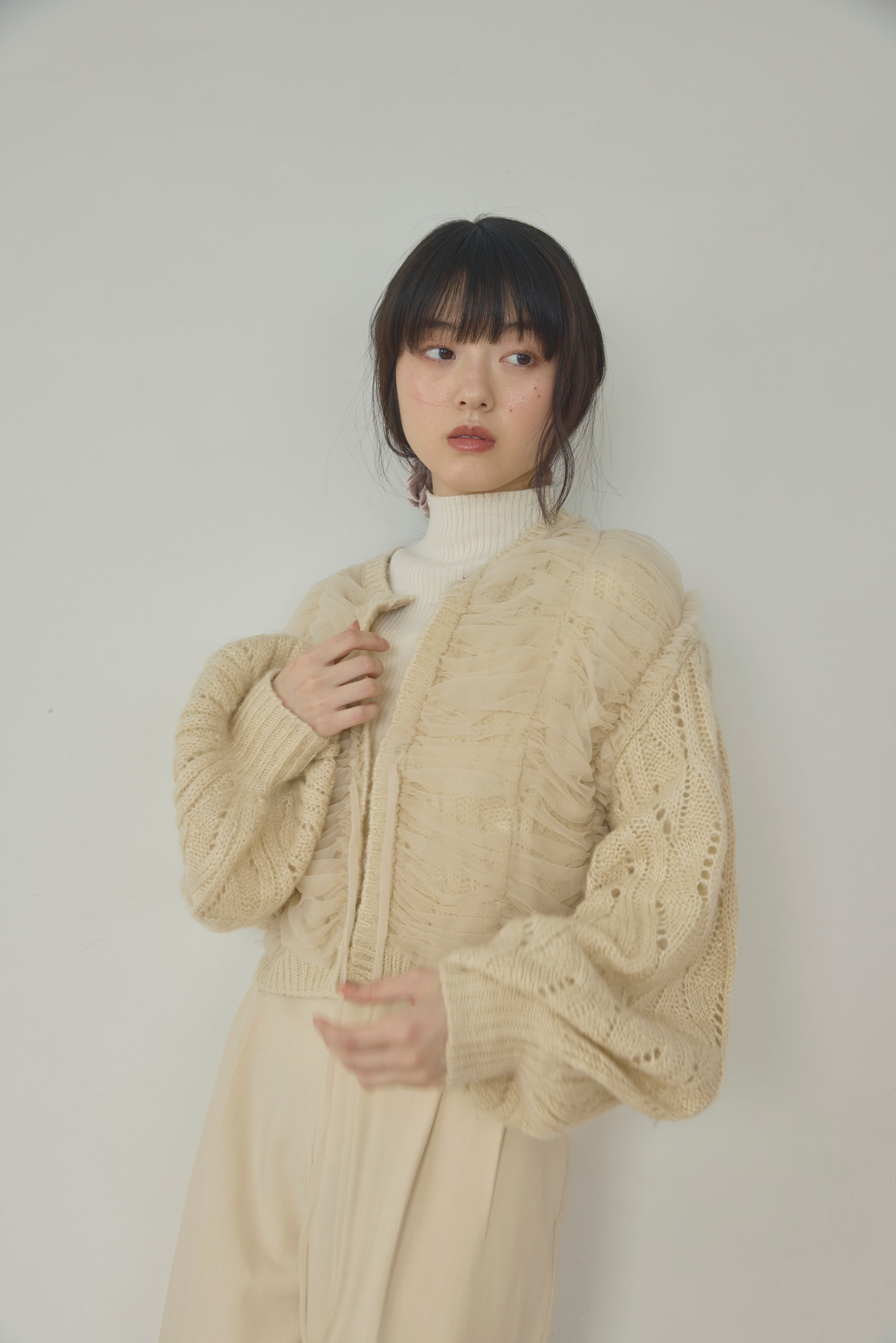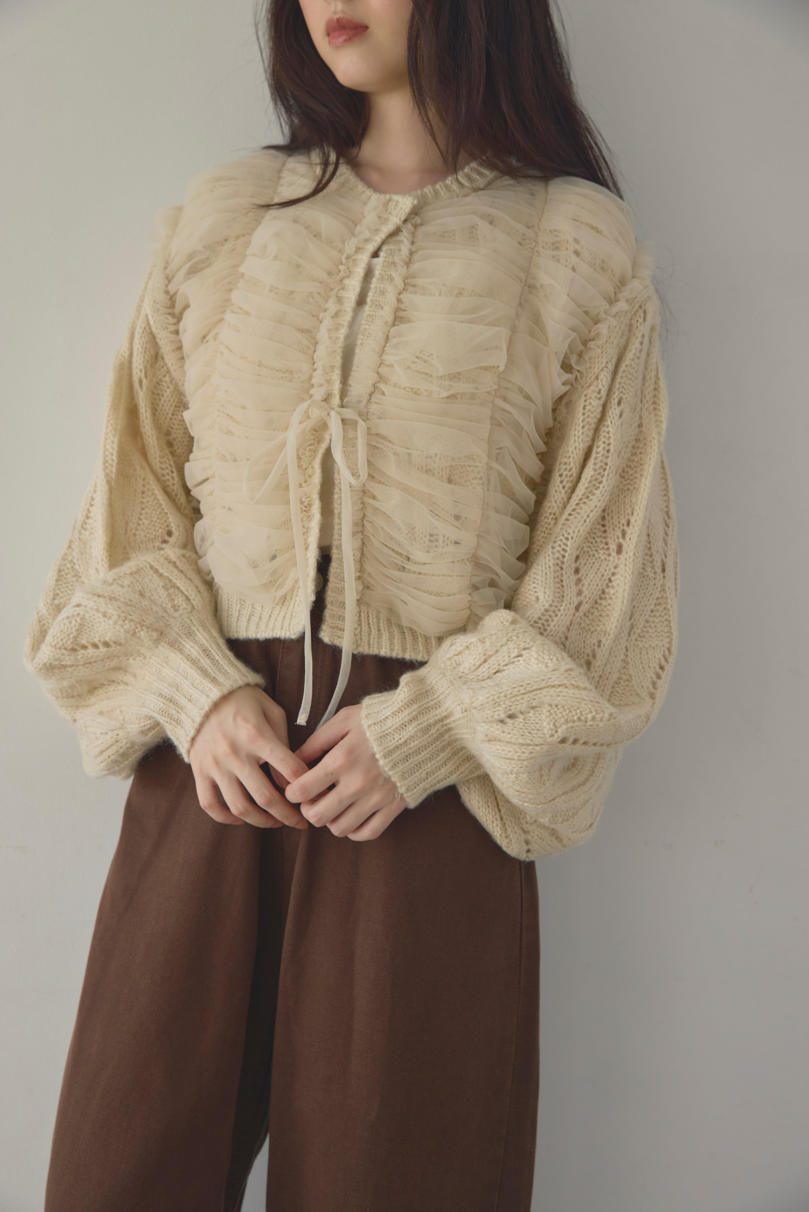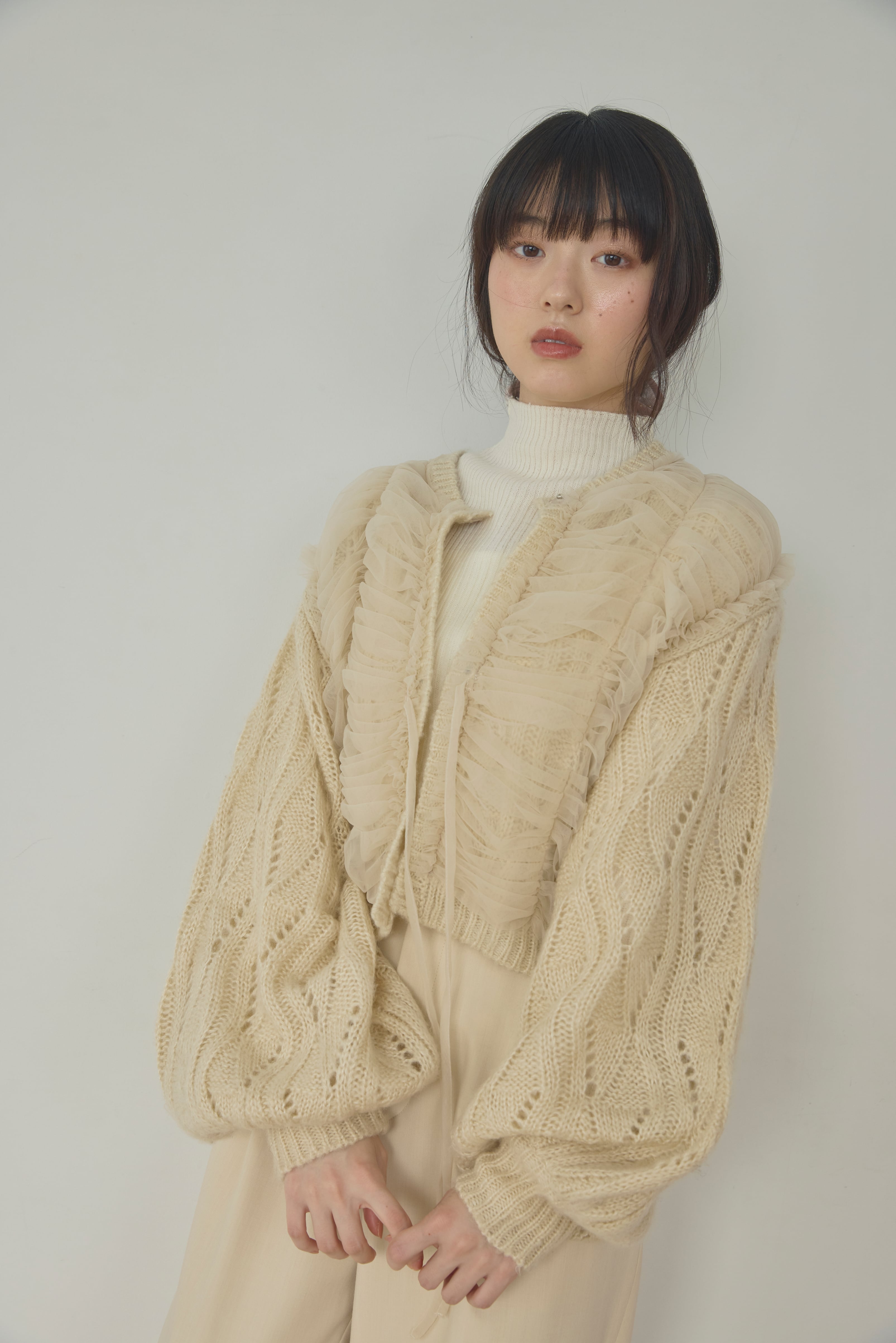 ふんわりとしたチュールがアクセントのニットカーディガン