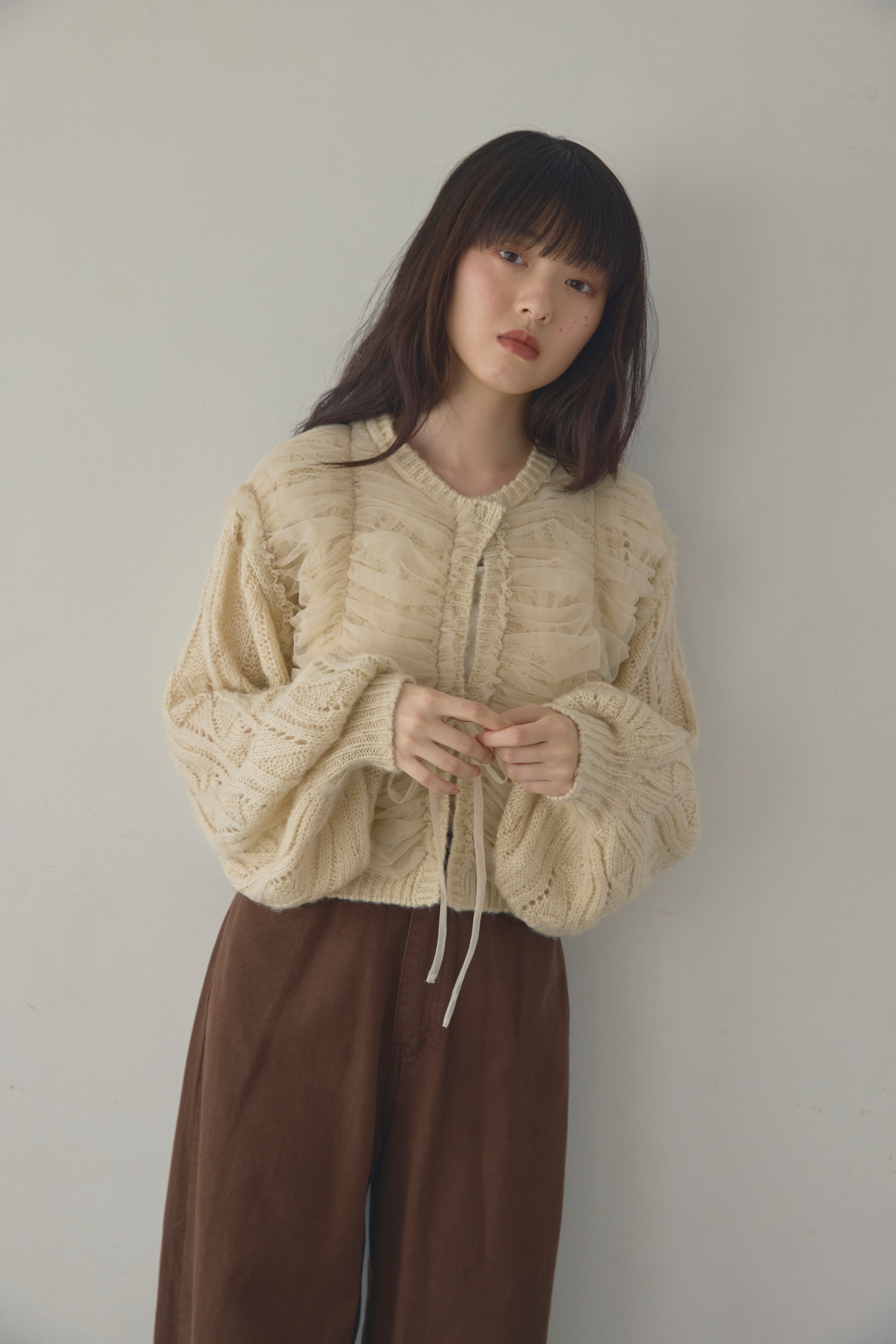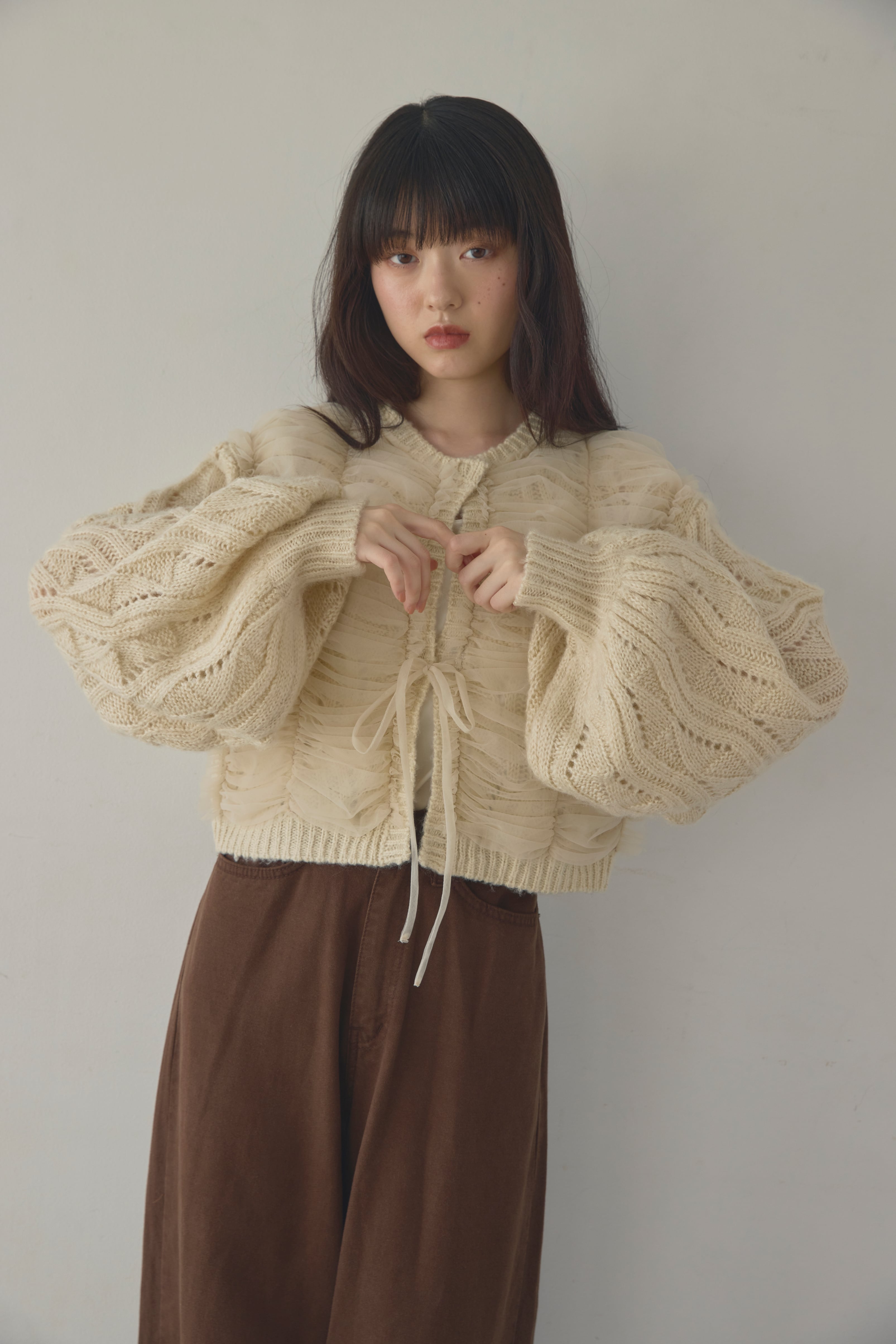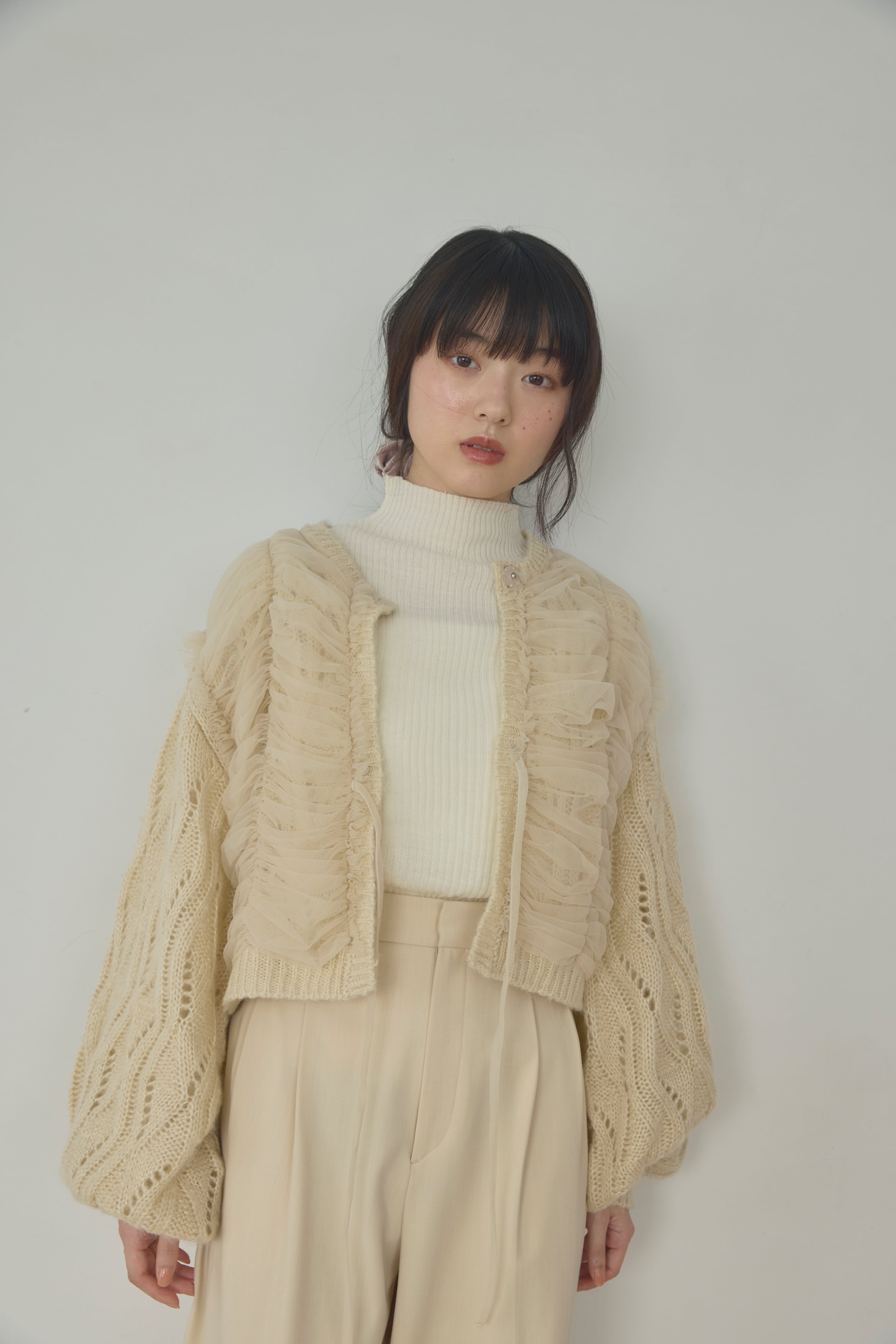 ふんわりとしたチュールがアクセントのニットカーディガン