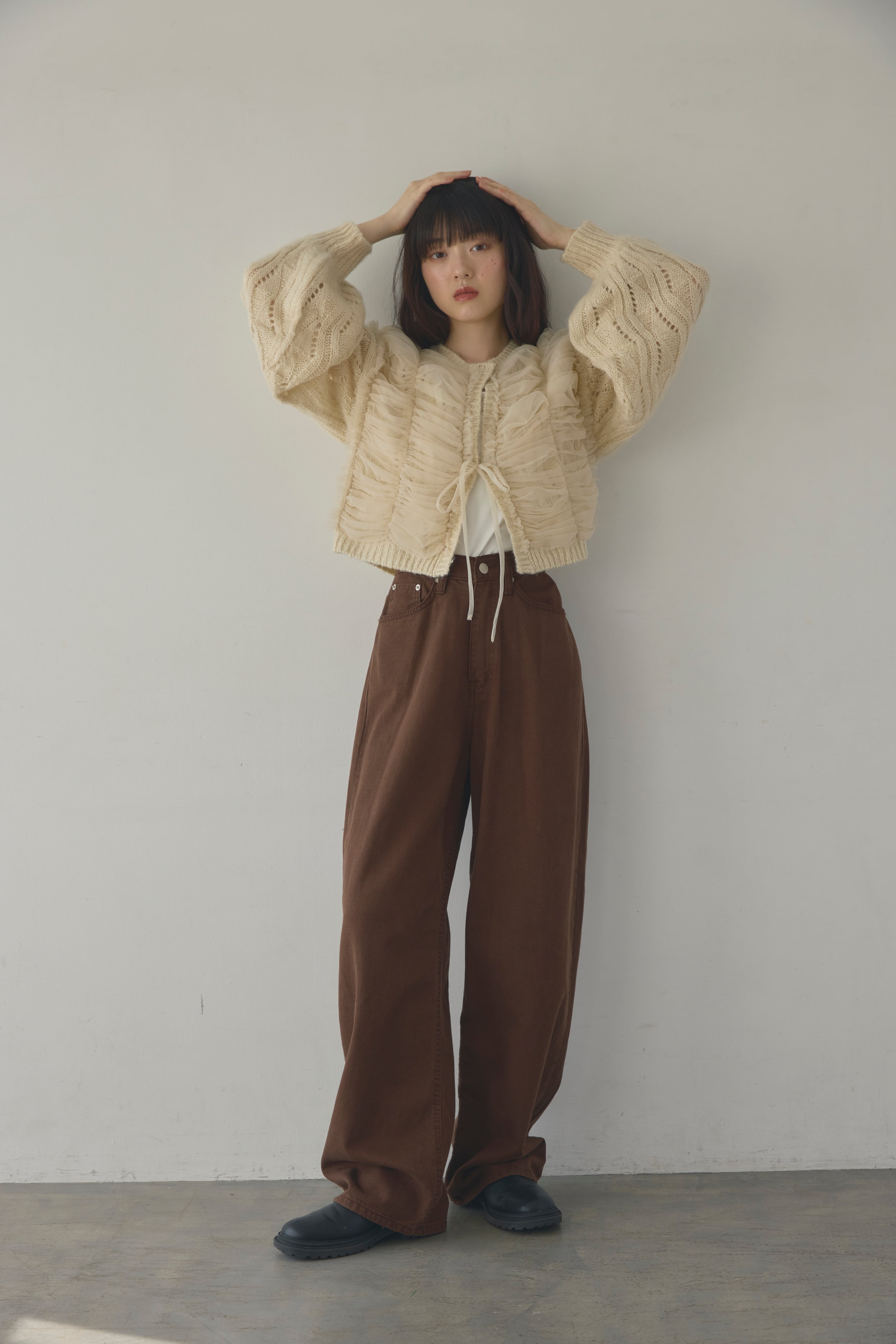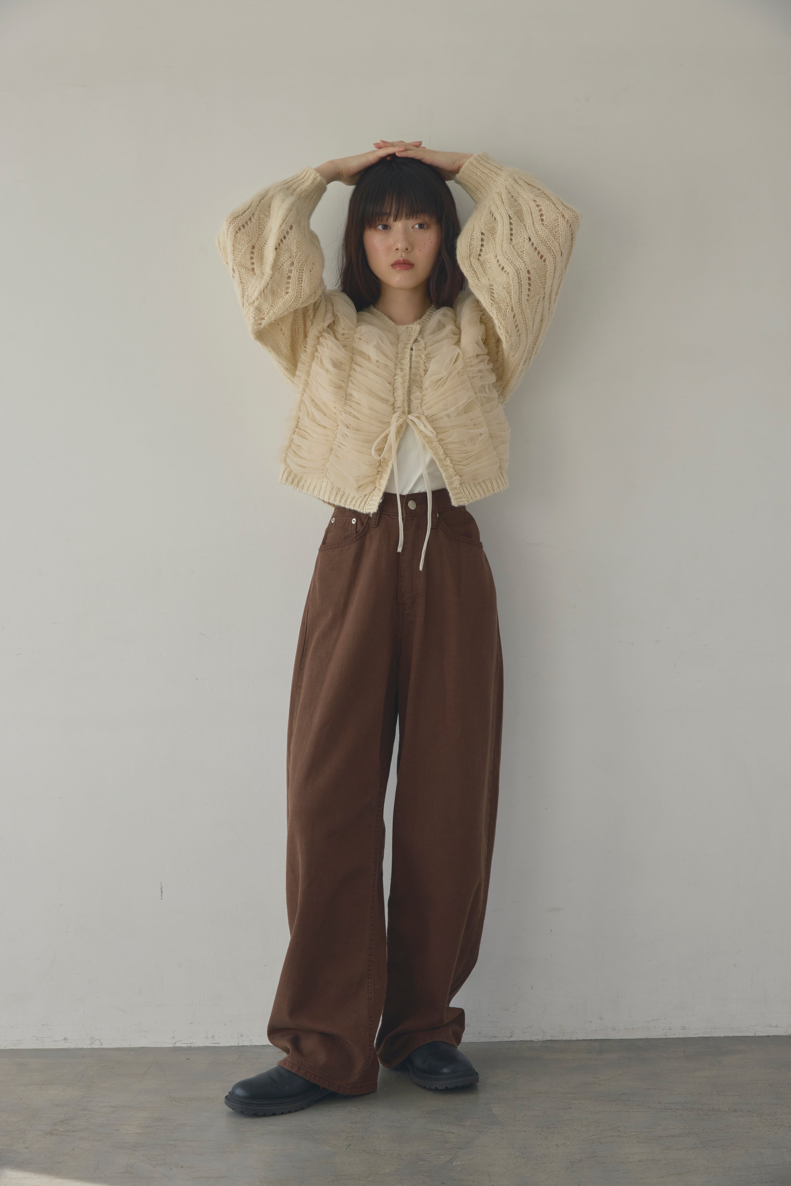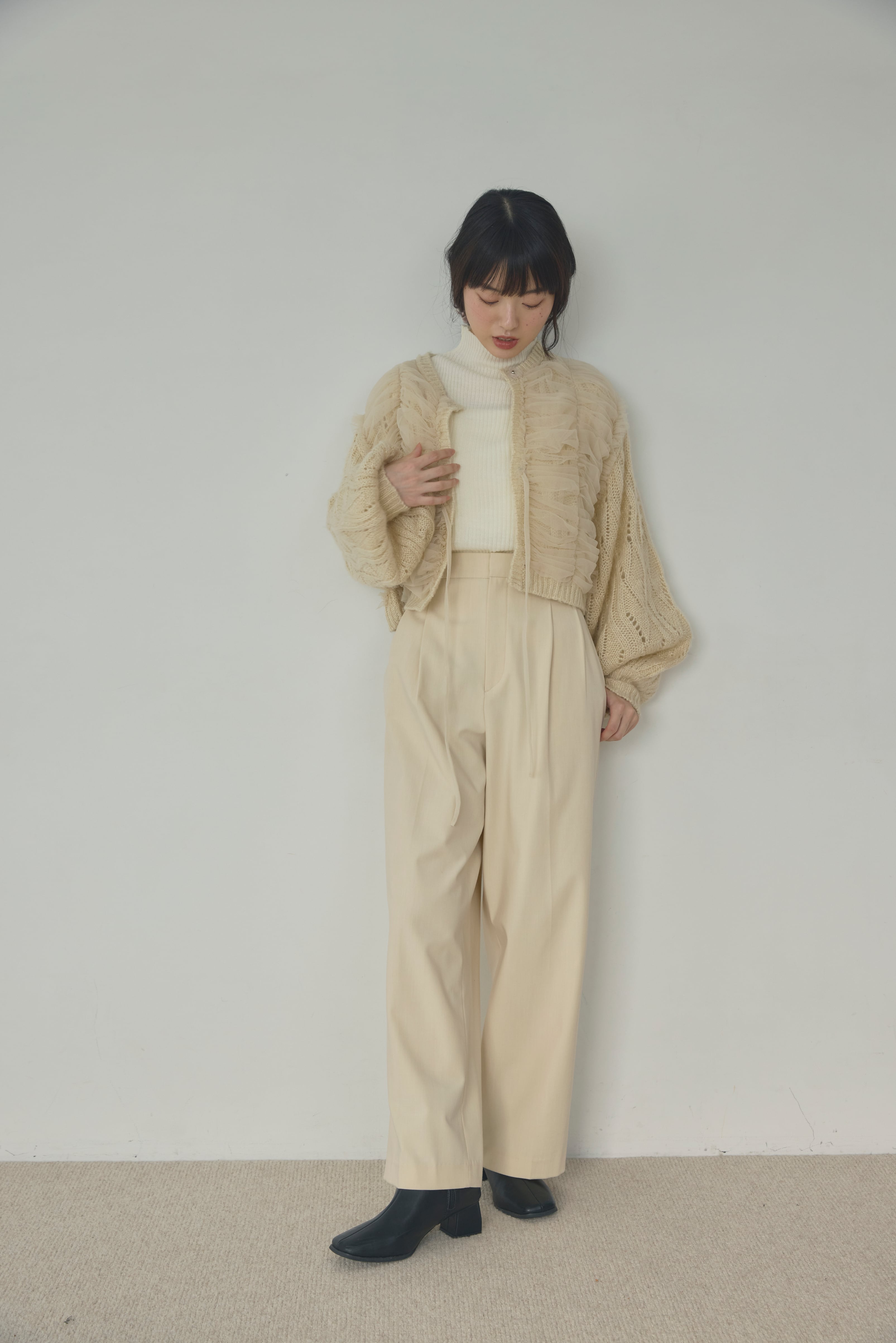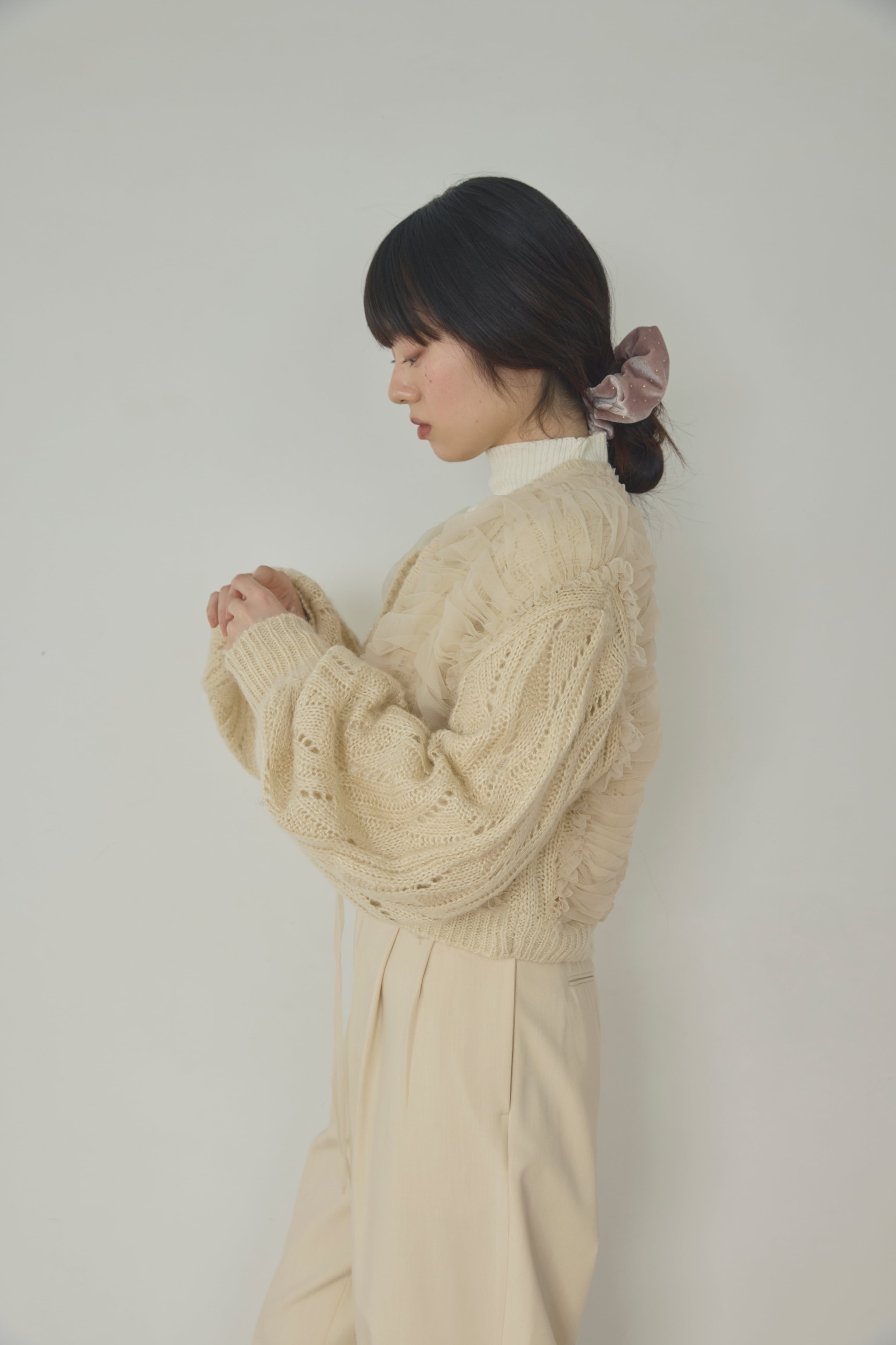 ふんわりとしたチュールがアクセントのニットカーディガン