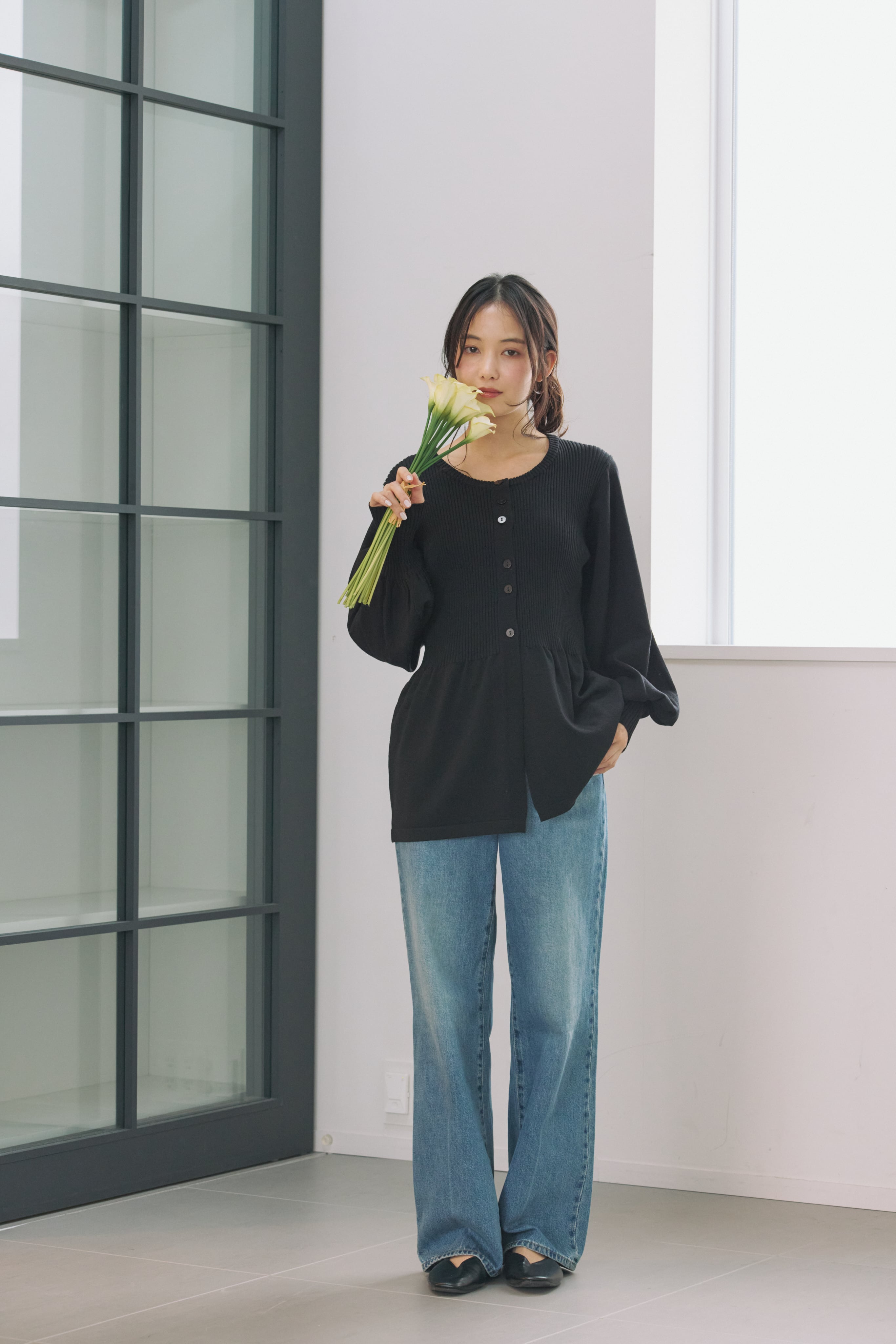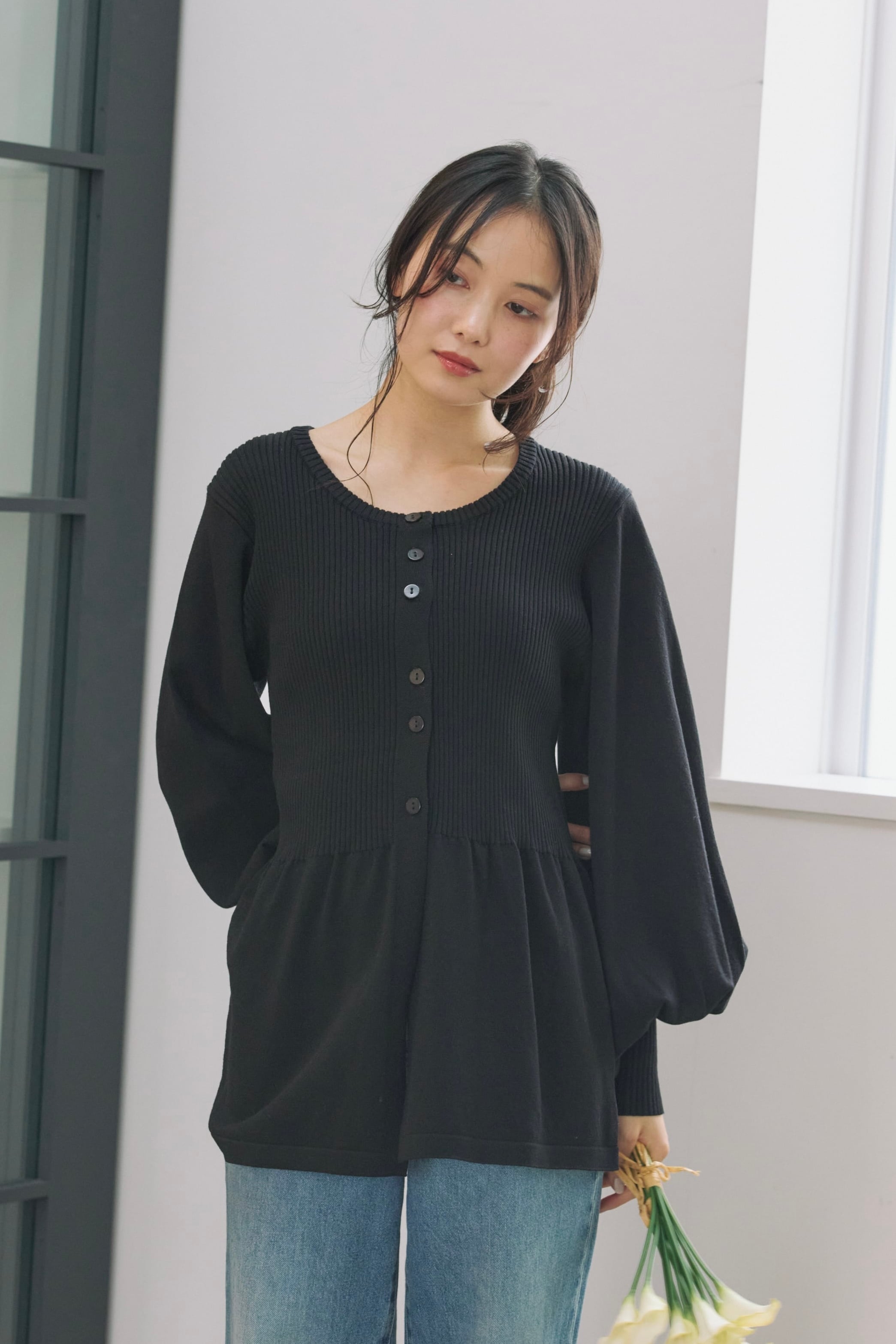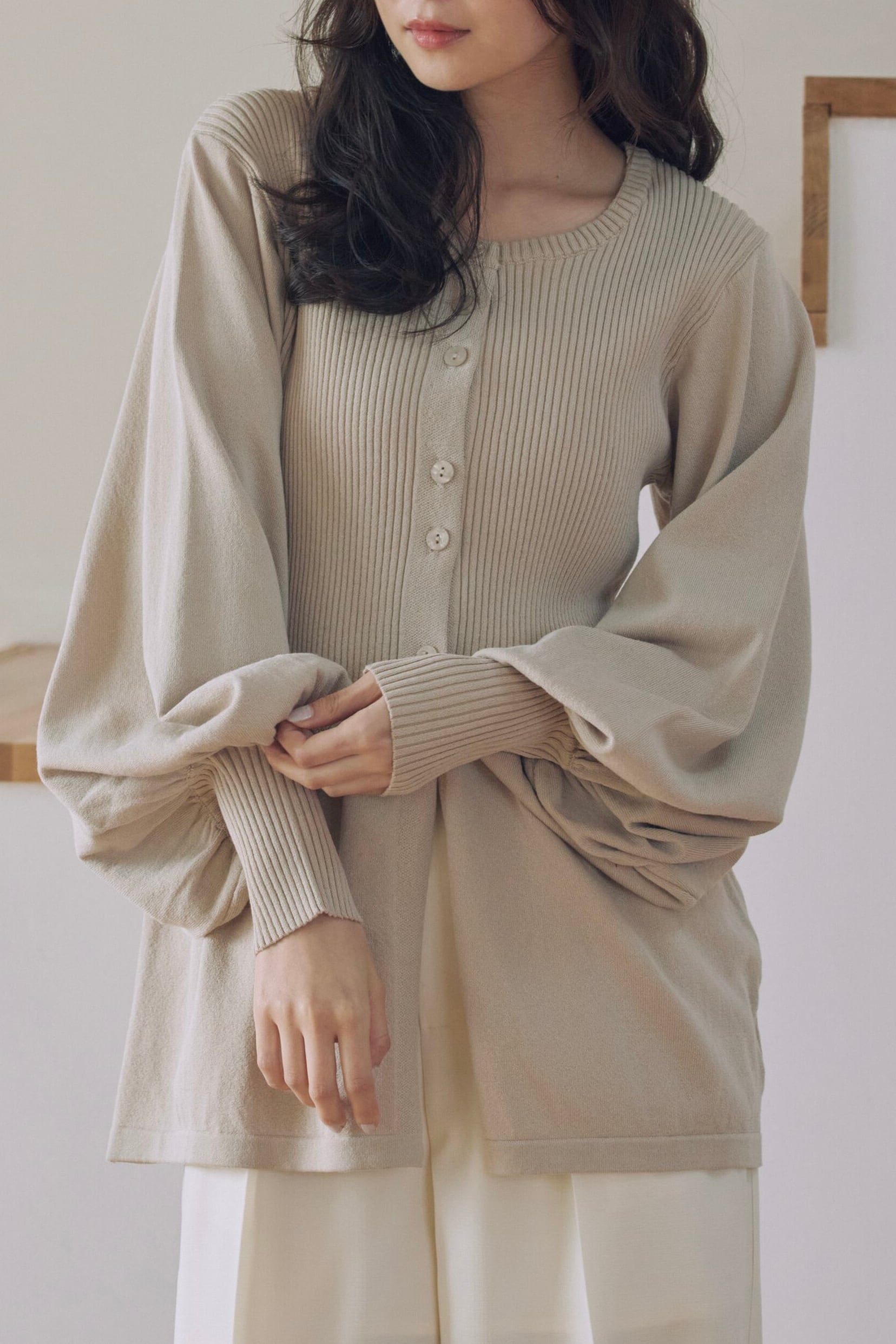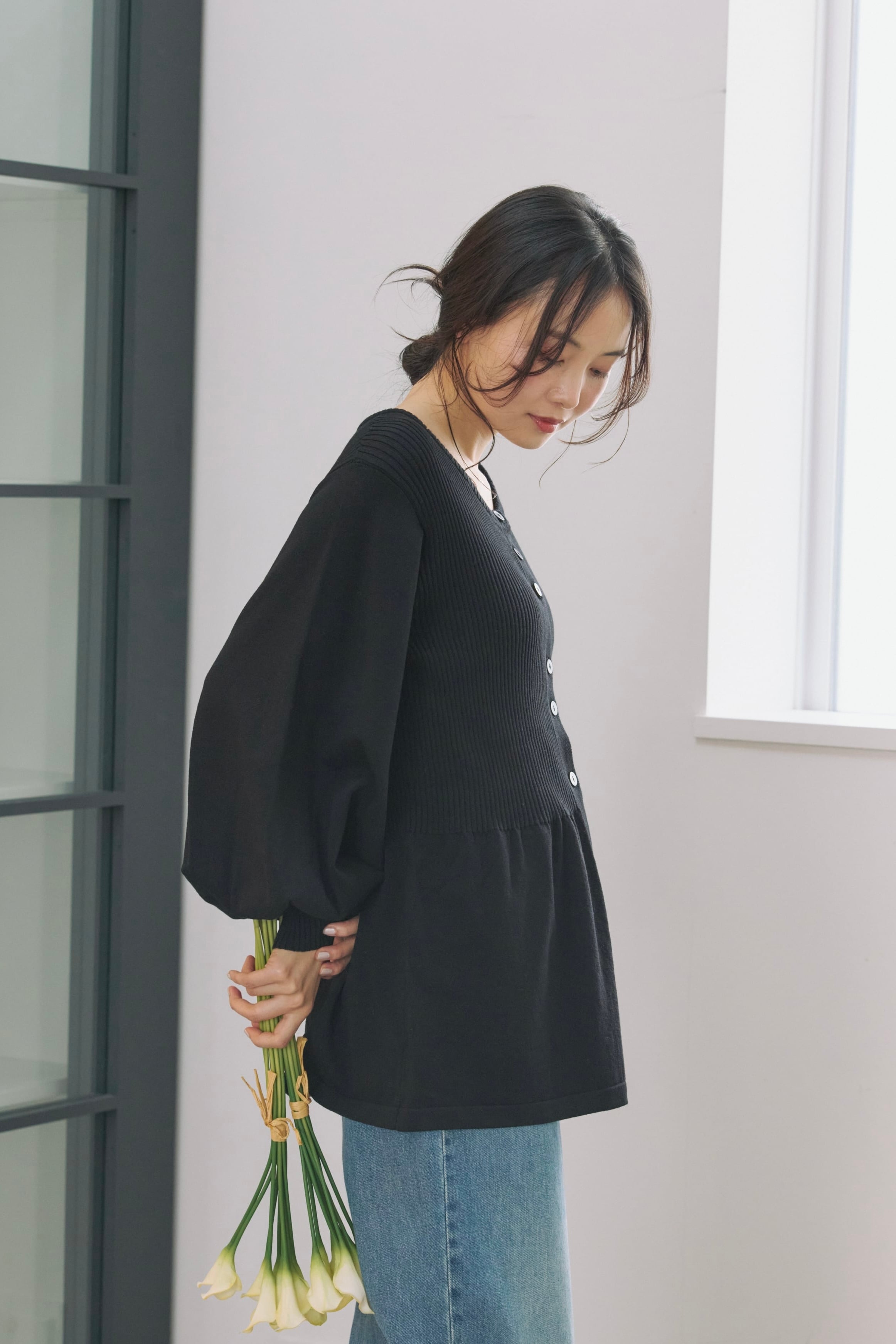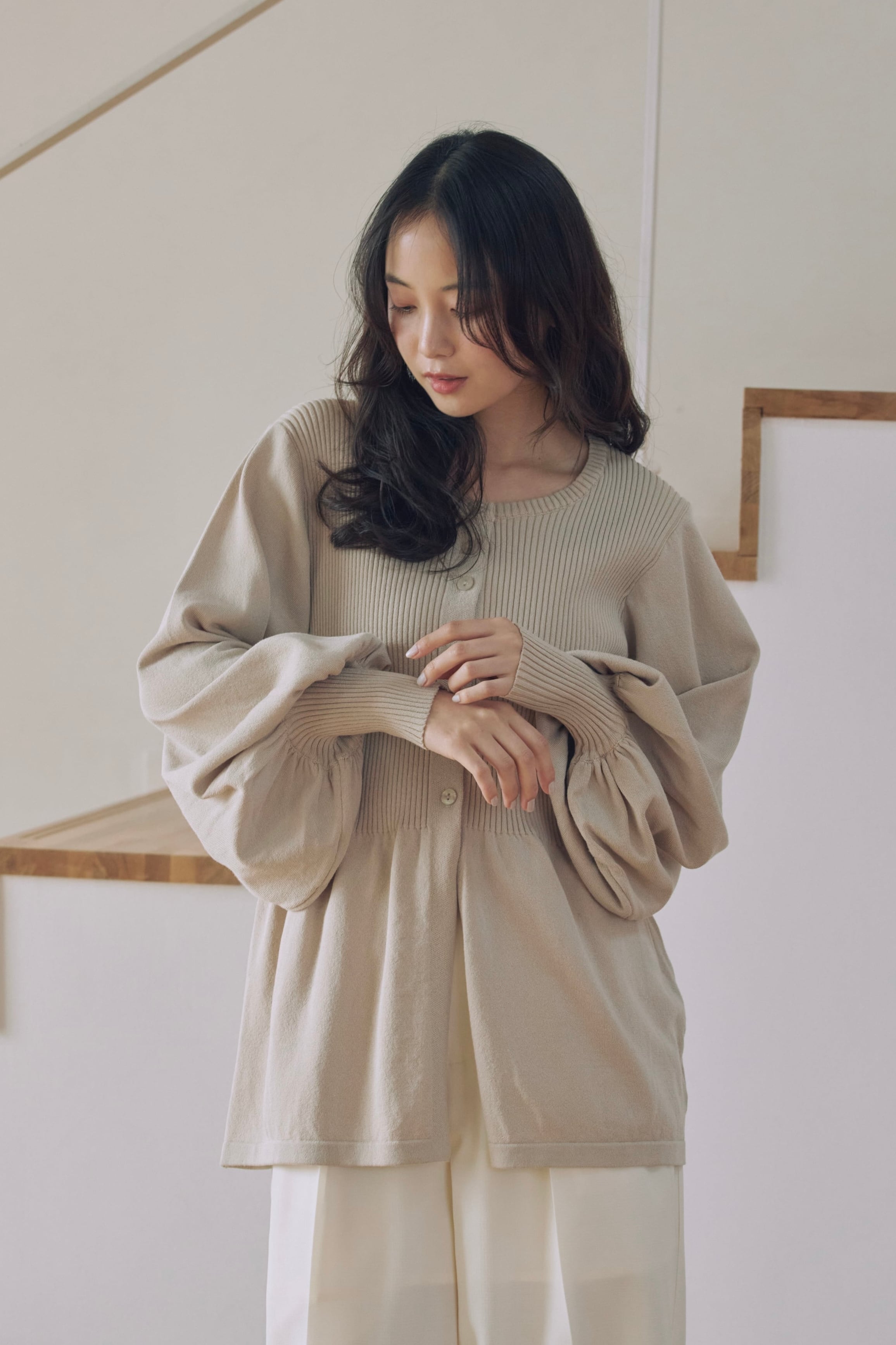女性らしいメリハリのあるシルエットが魅力のニットカーディガン