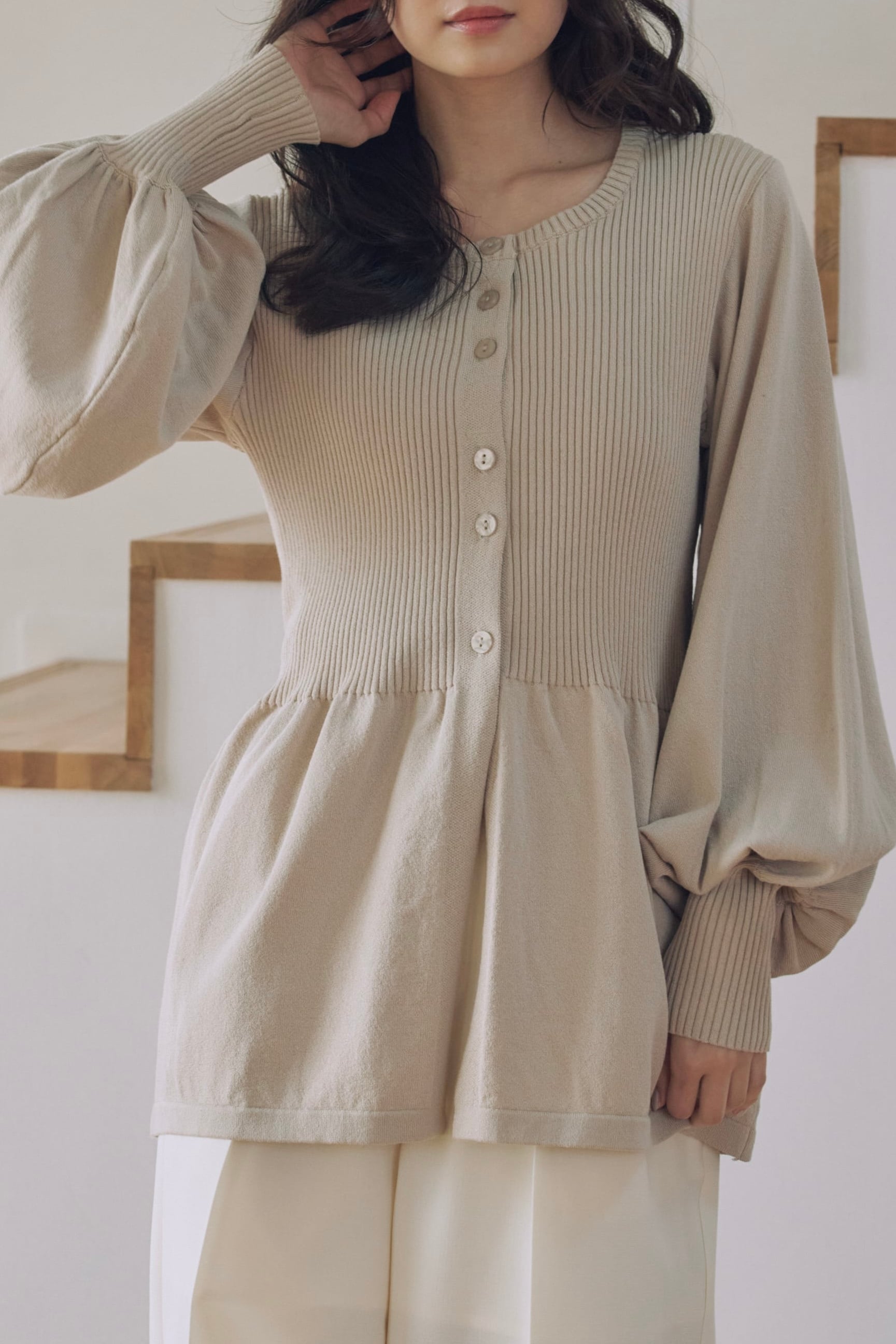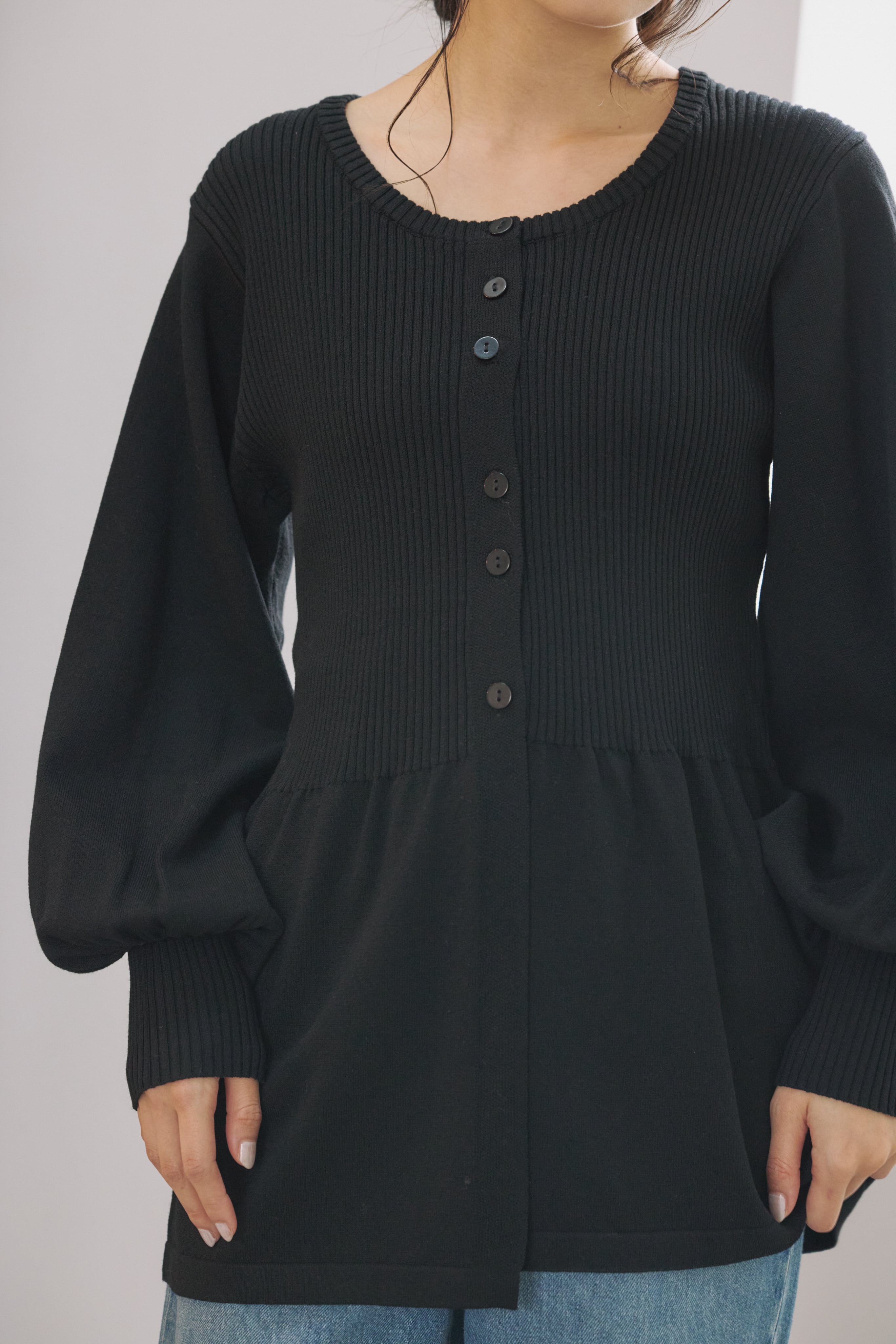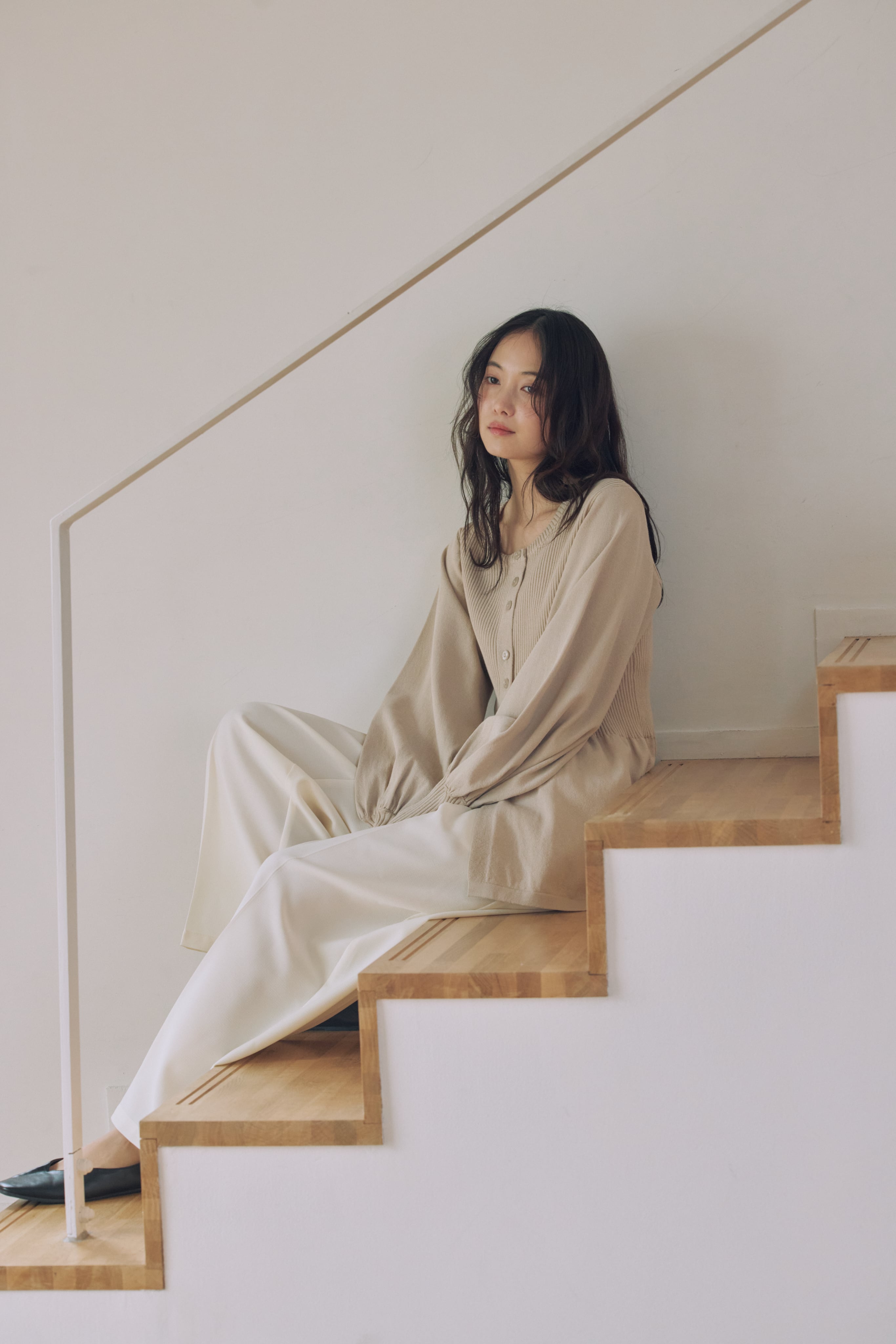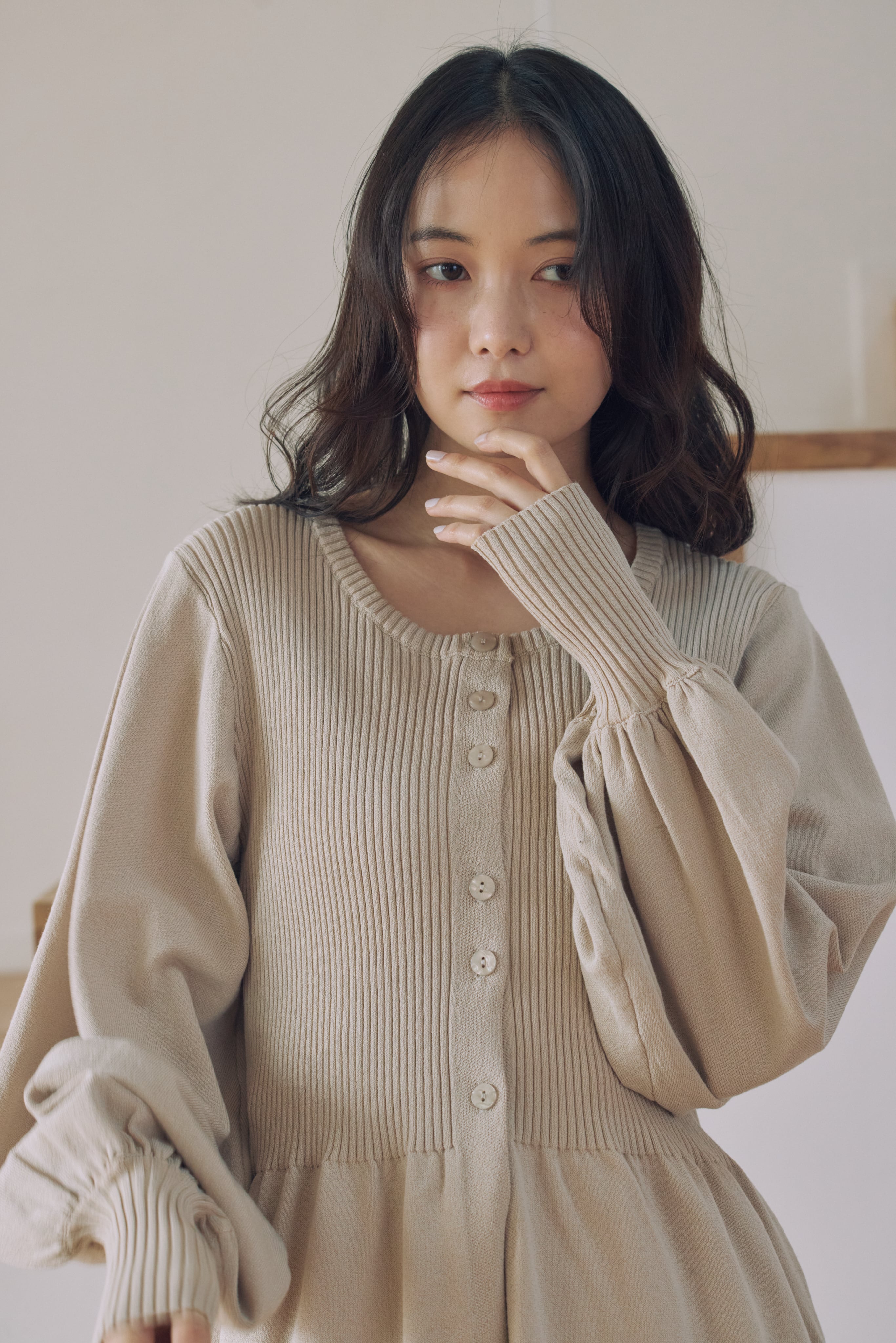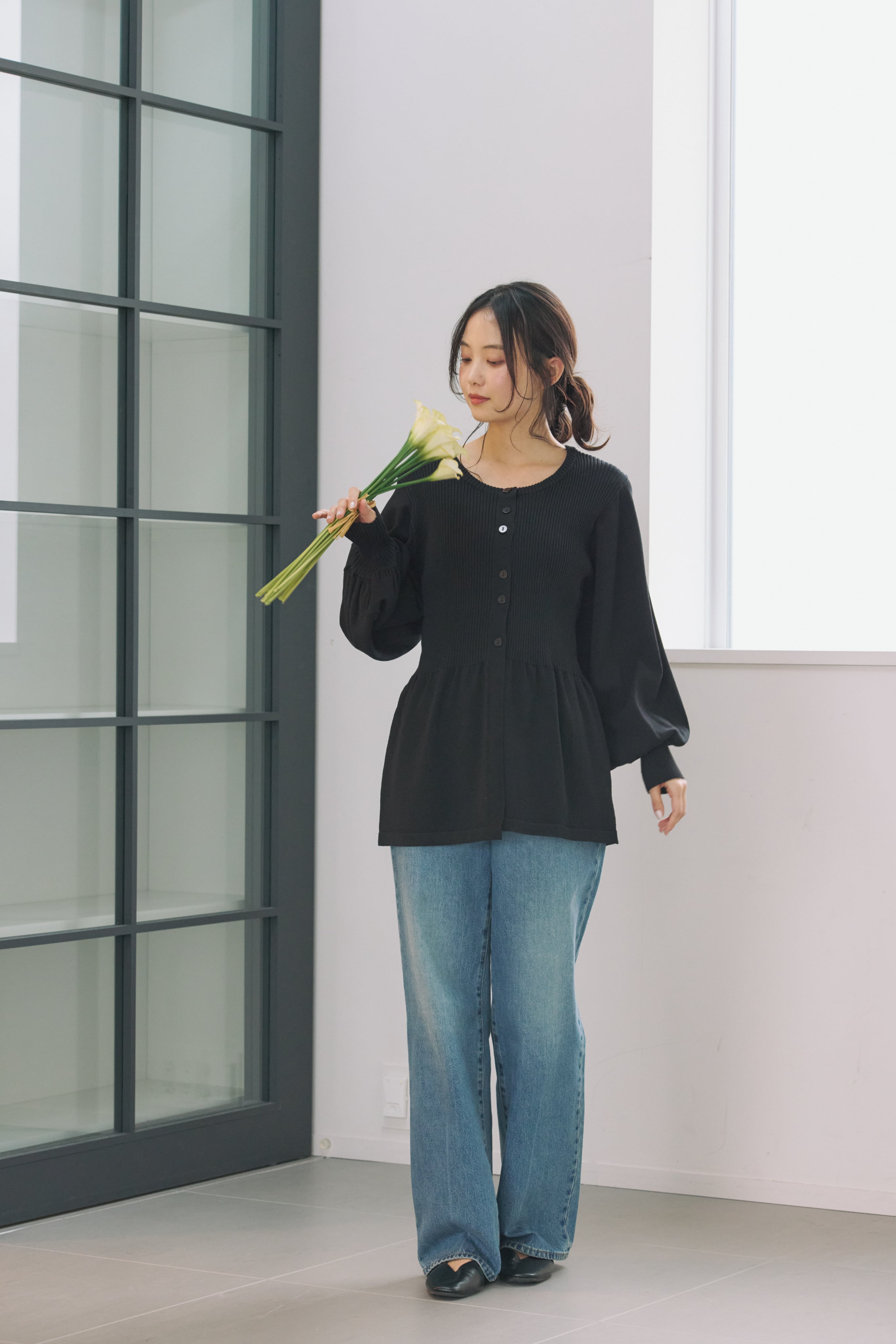 女性らしいメリハリのあるシルエットが魅力のニットカーディガン