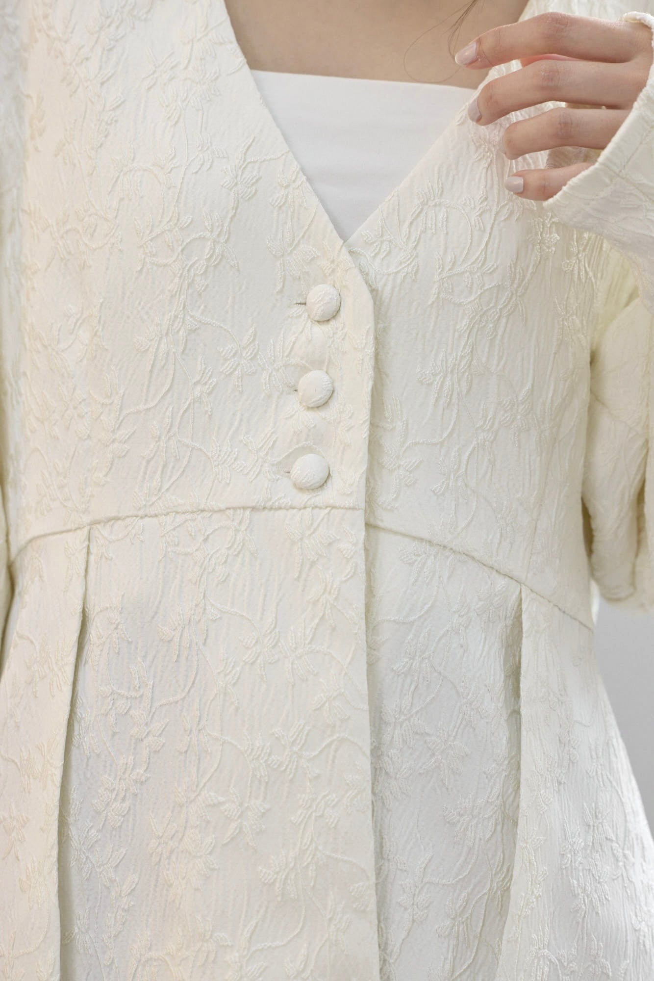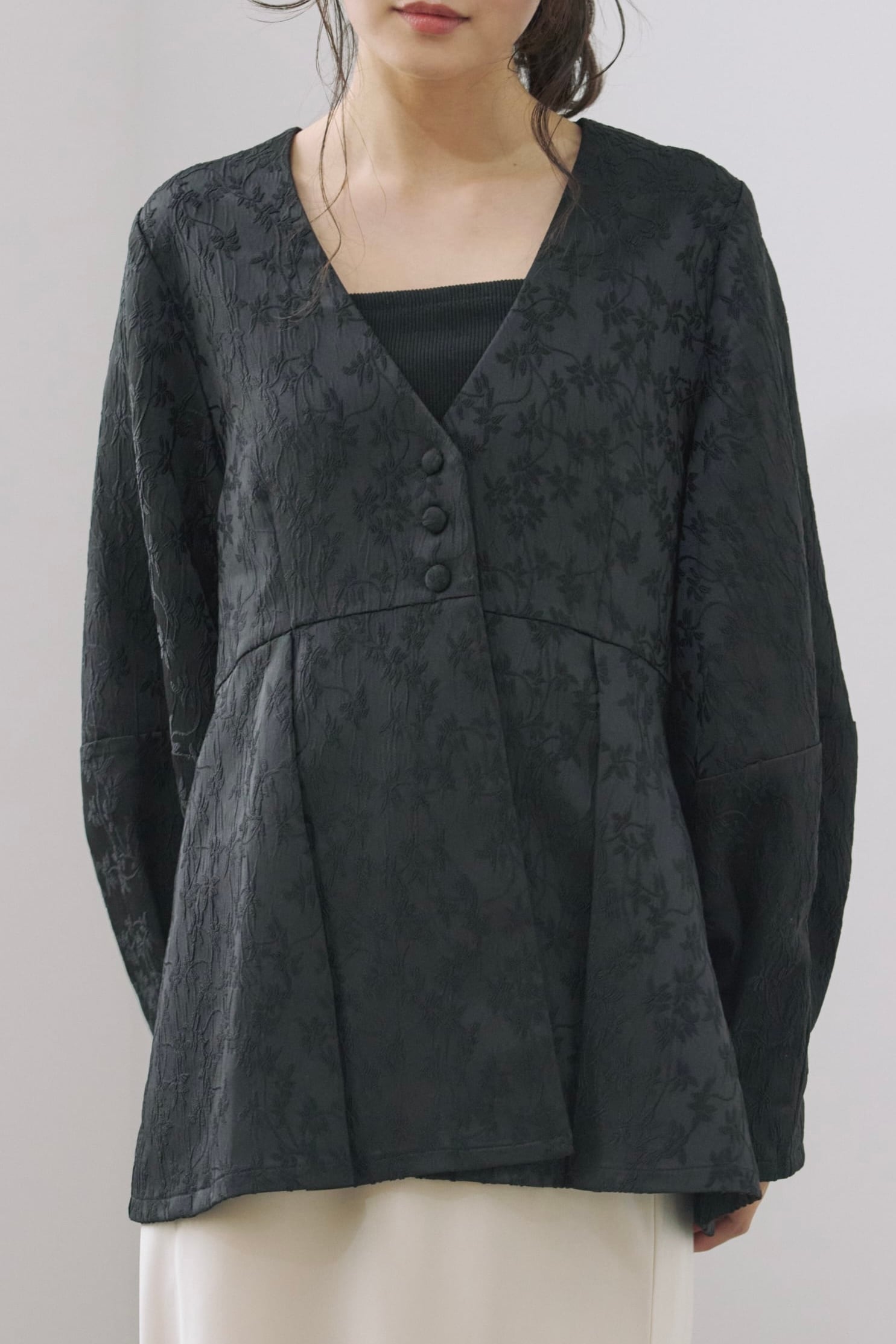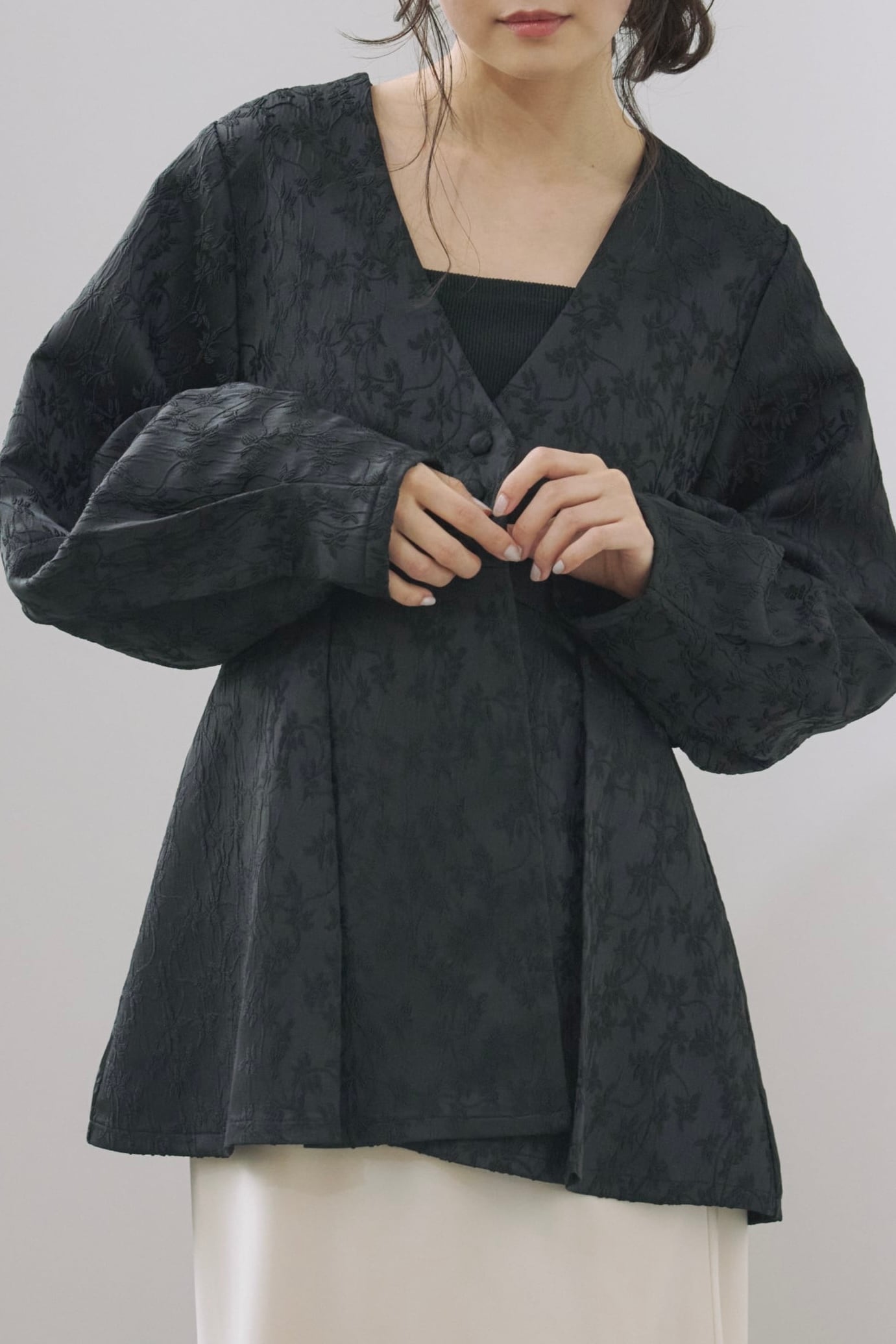 ツヤっと感が目を惹く花柄ジャガード素材は、