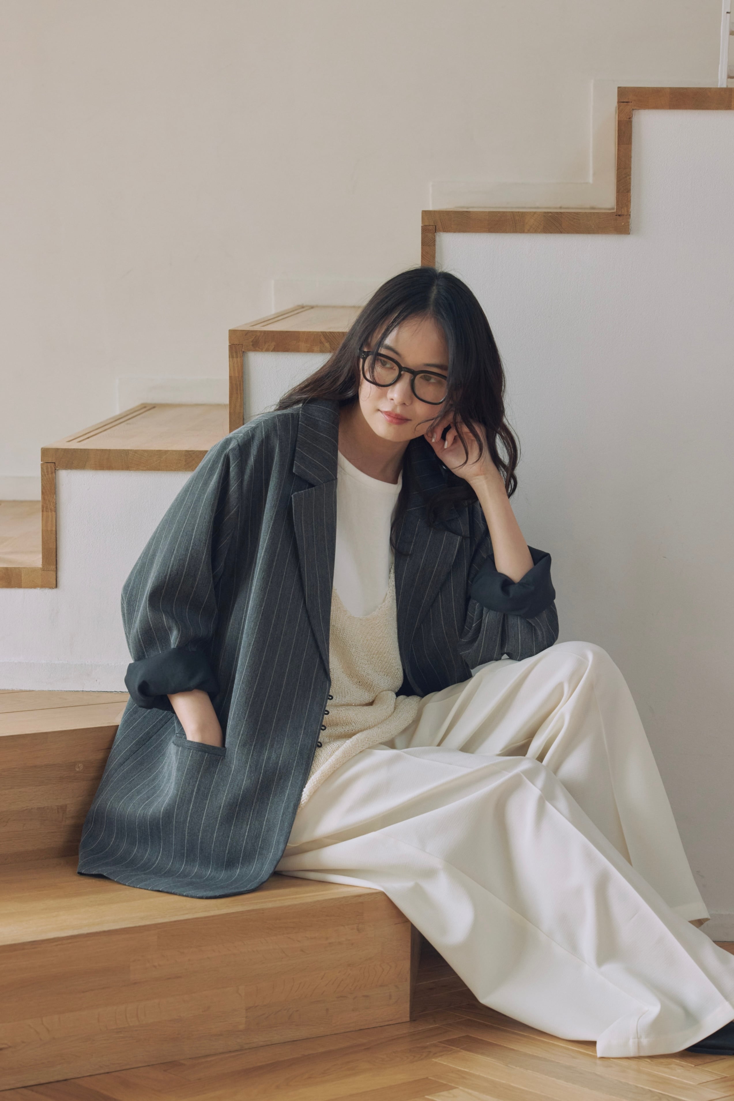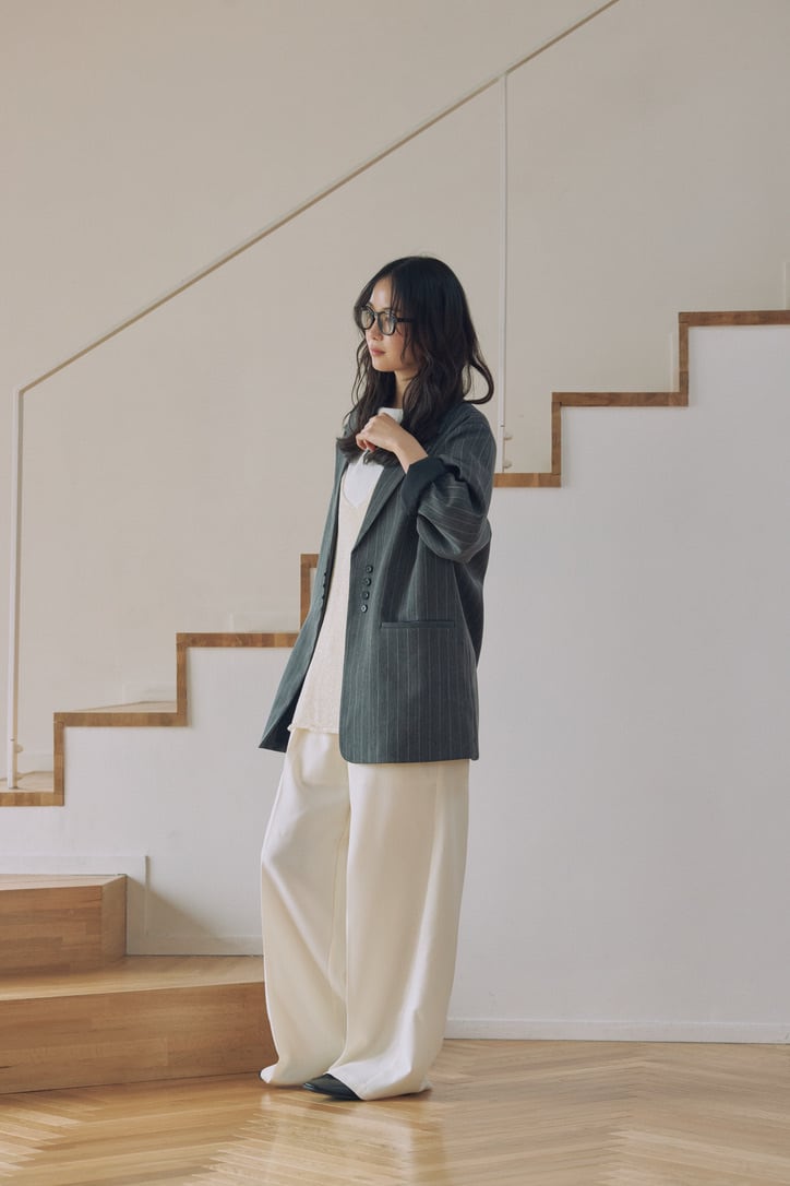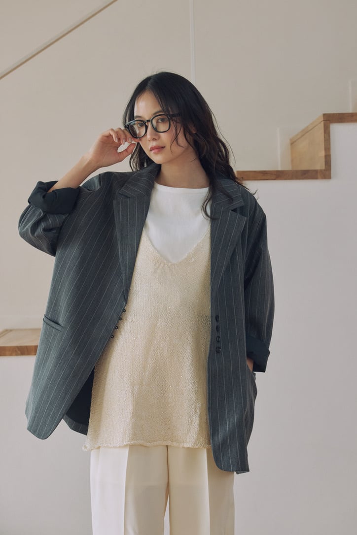 シンプルなスタイリングに1枚プラスすることで、