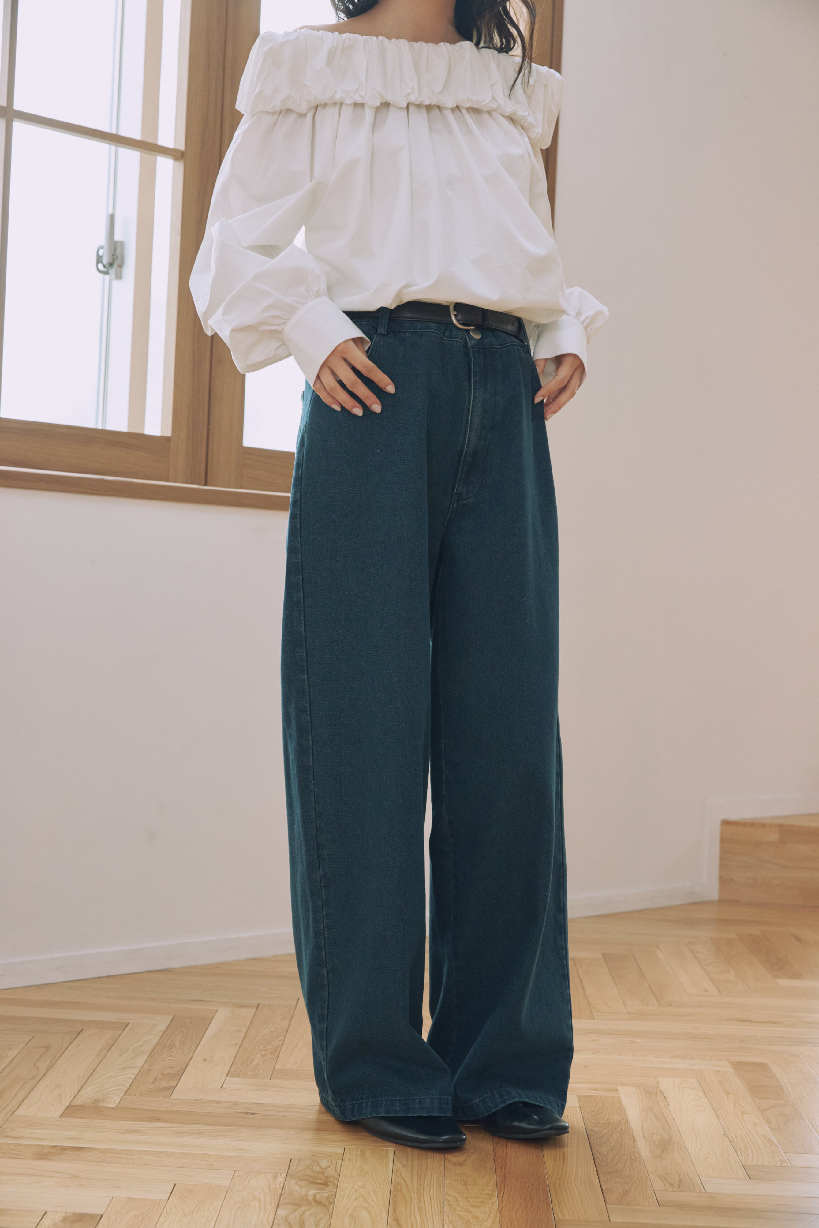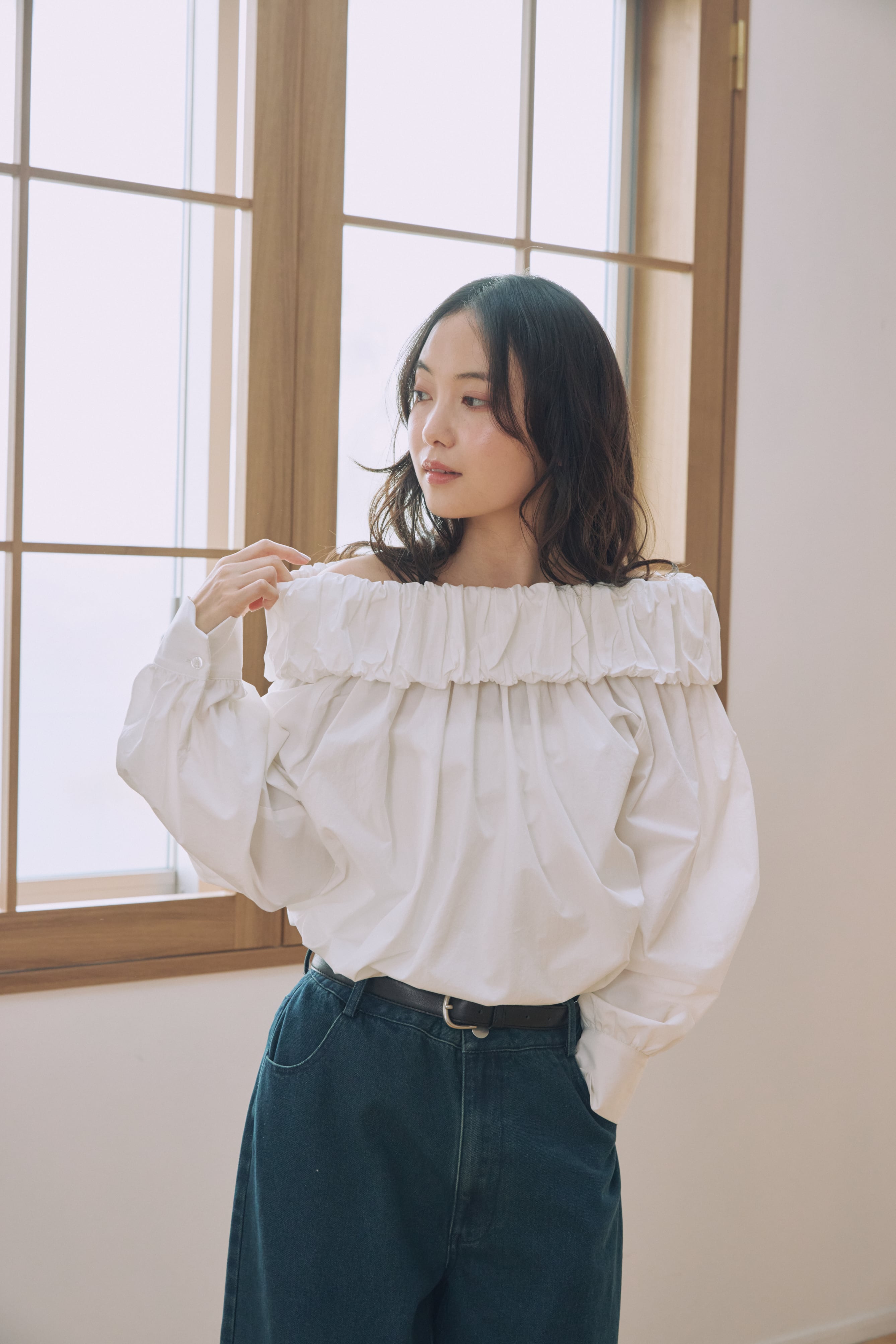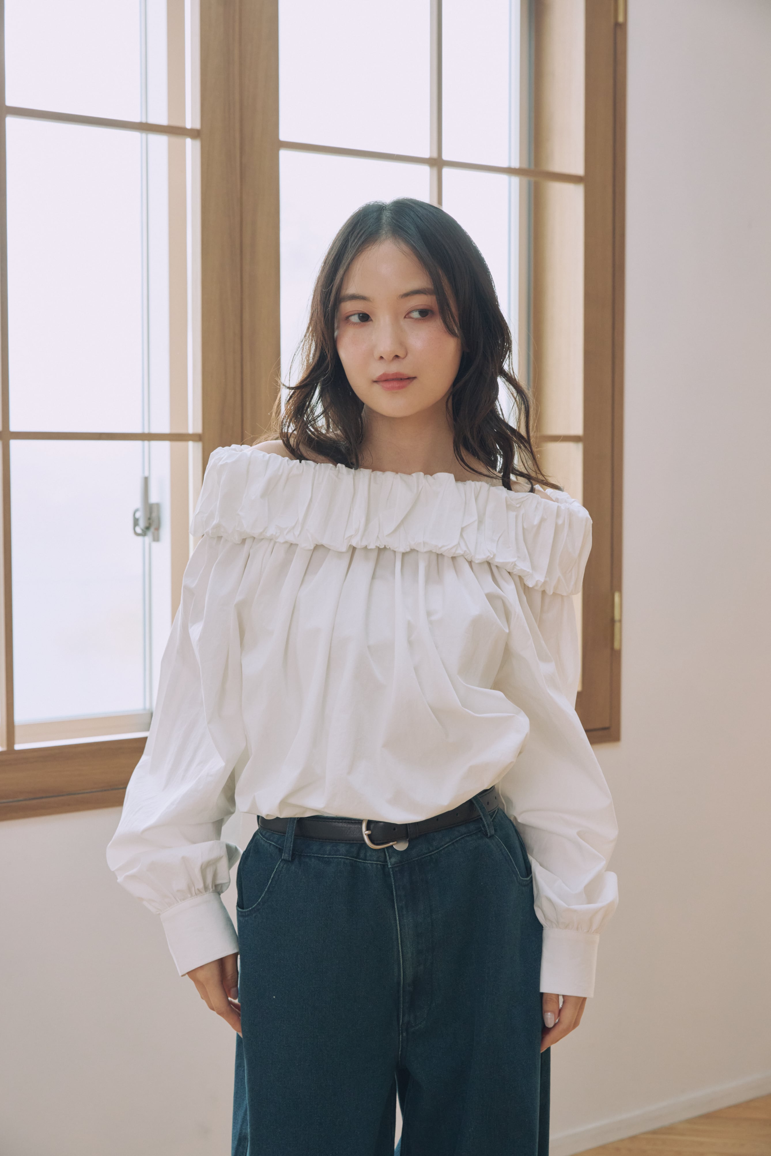 AM650309 gather off shoulder blouse