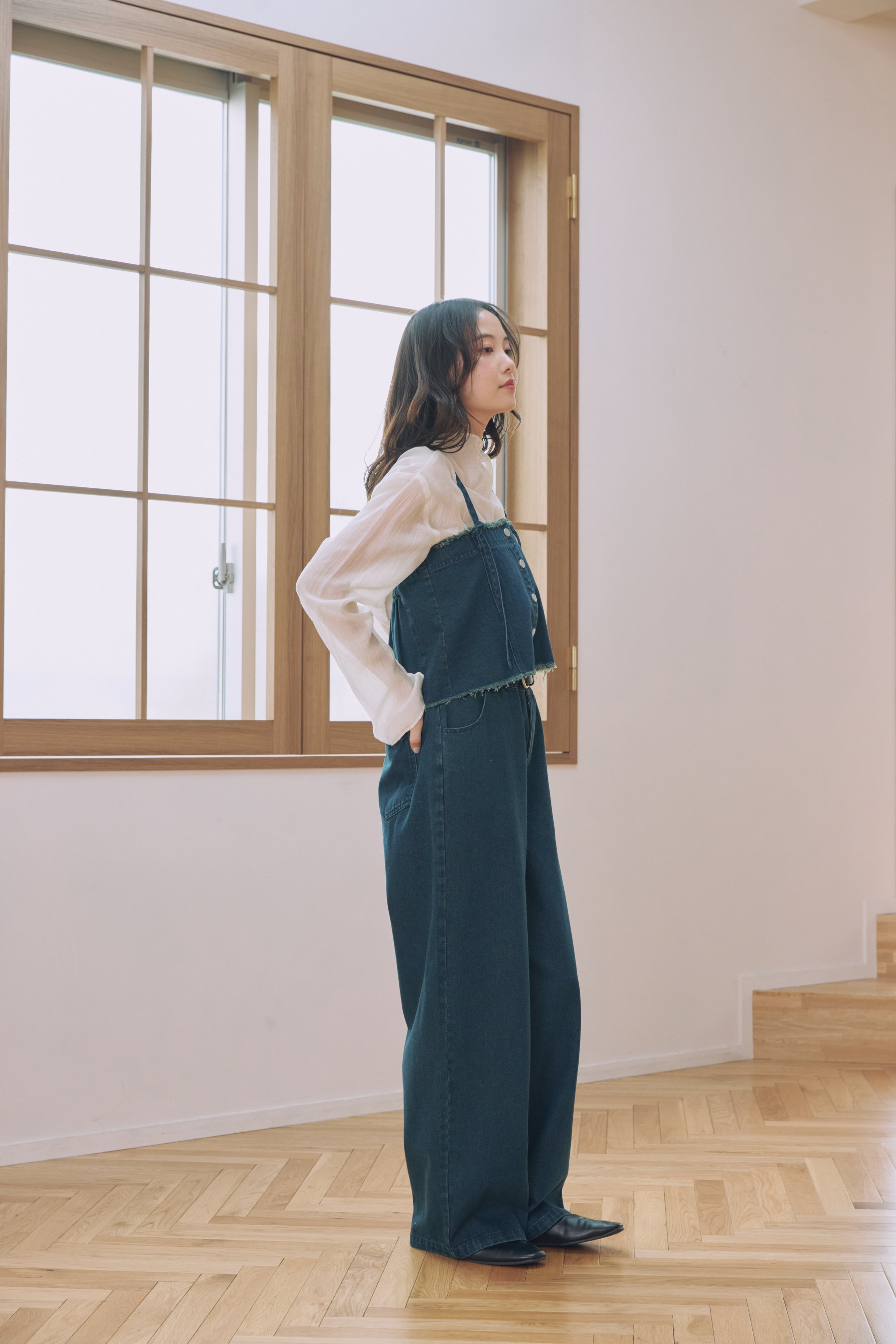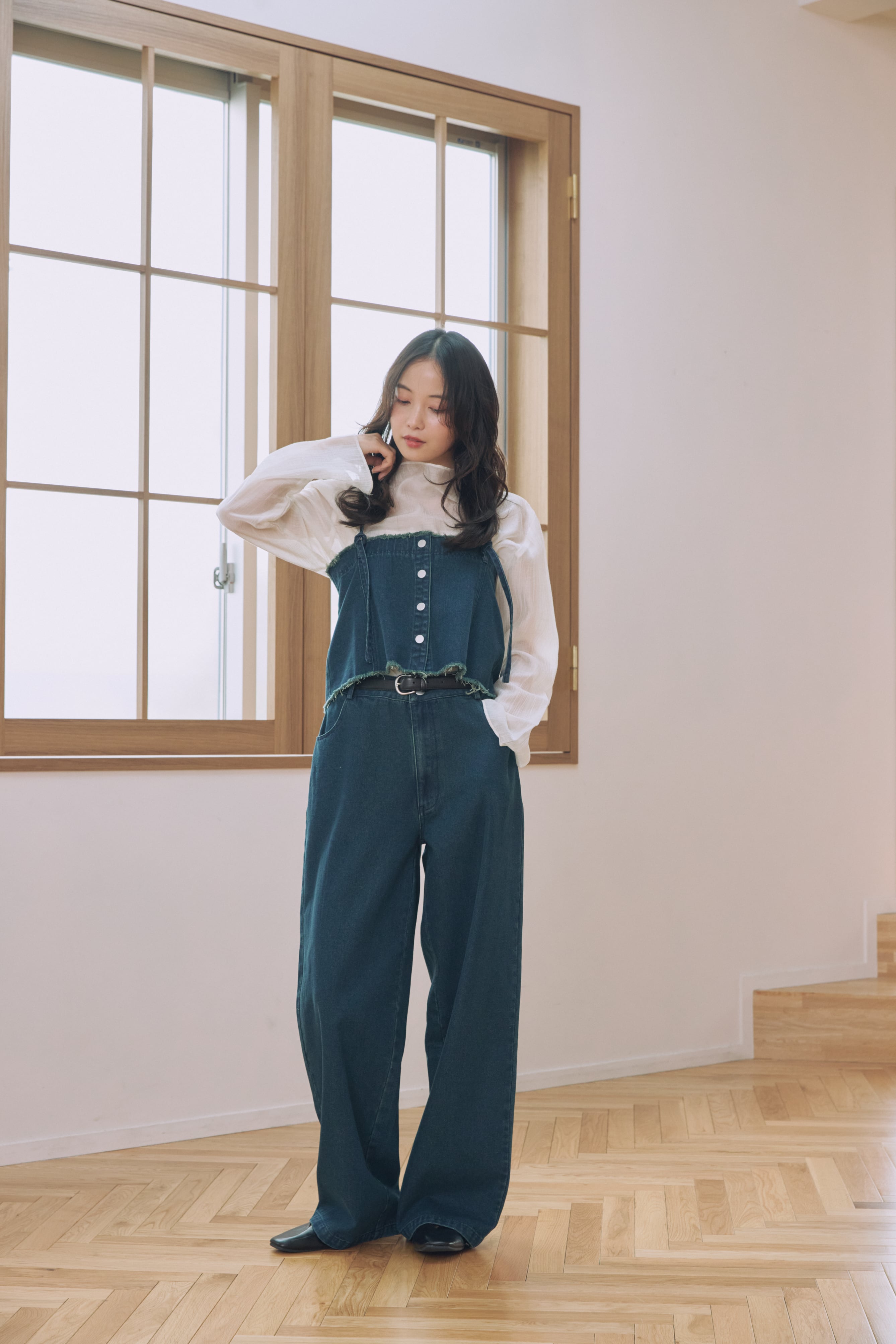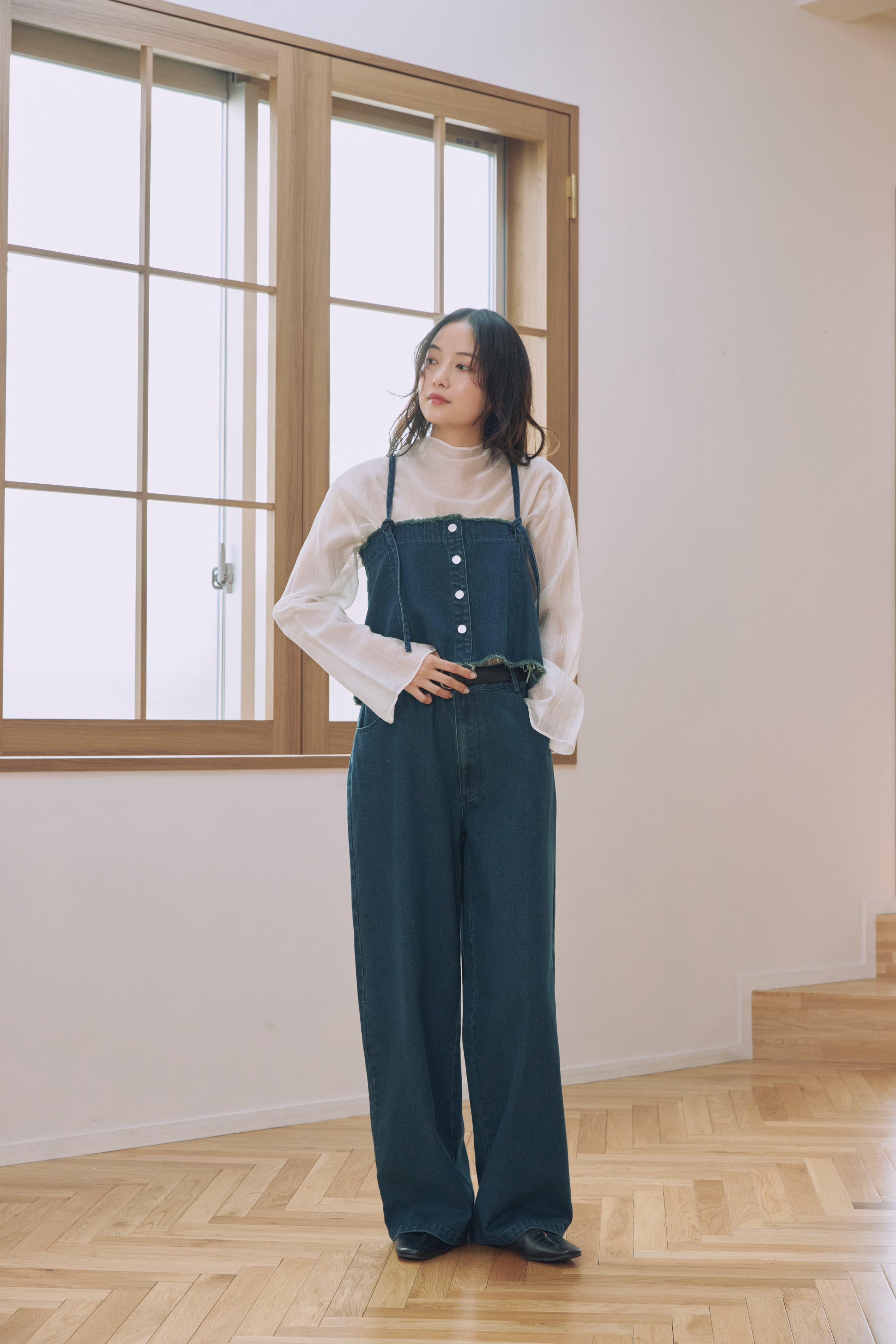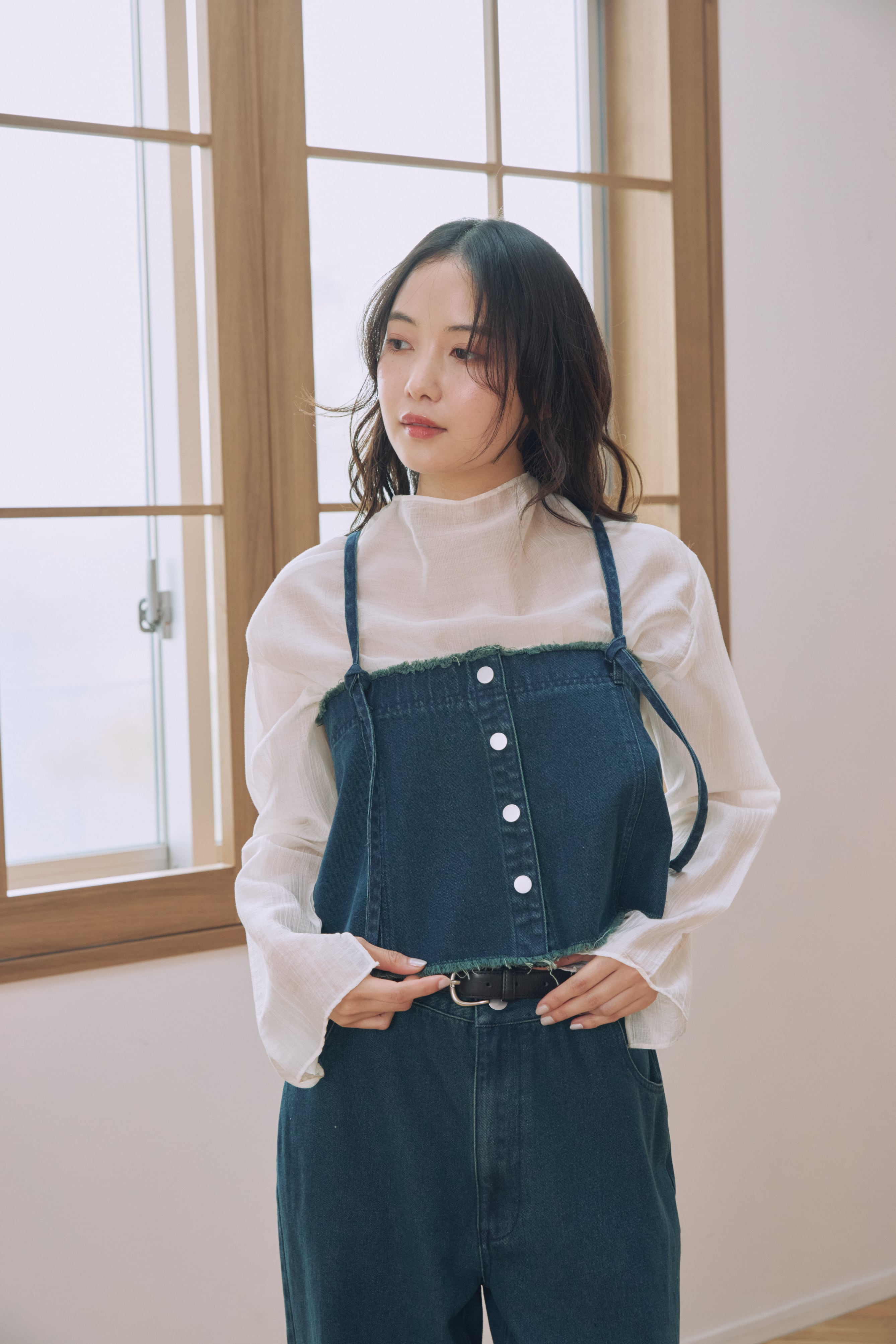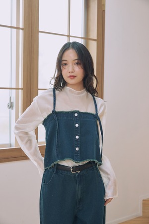 ビスチェとデニムパンツがセットになった、着回し力抜群のアイテム