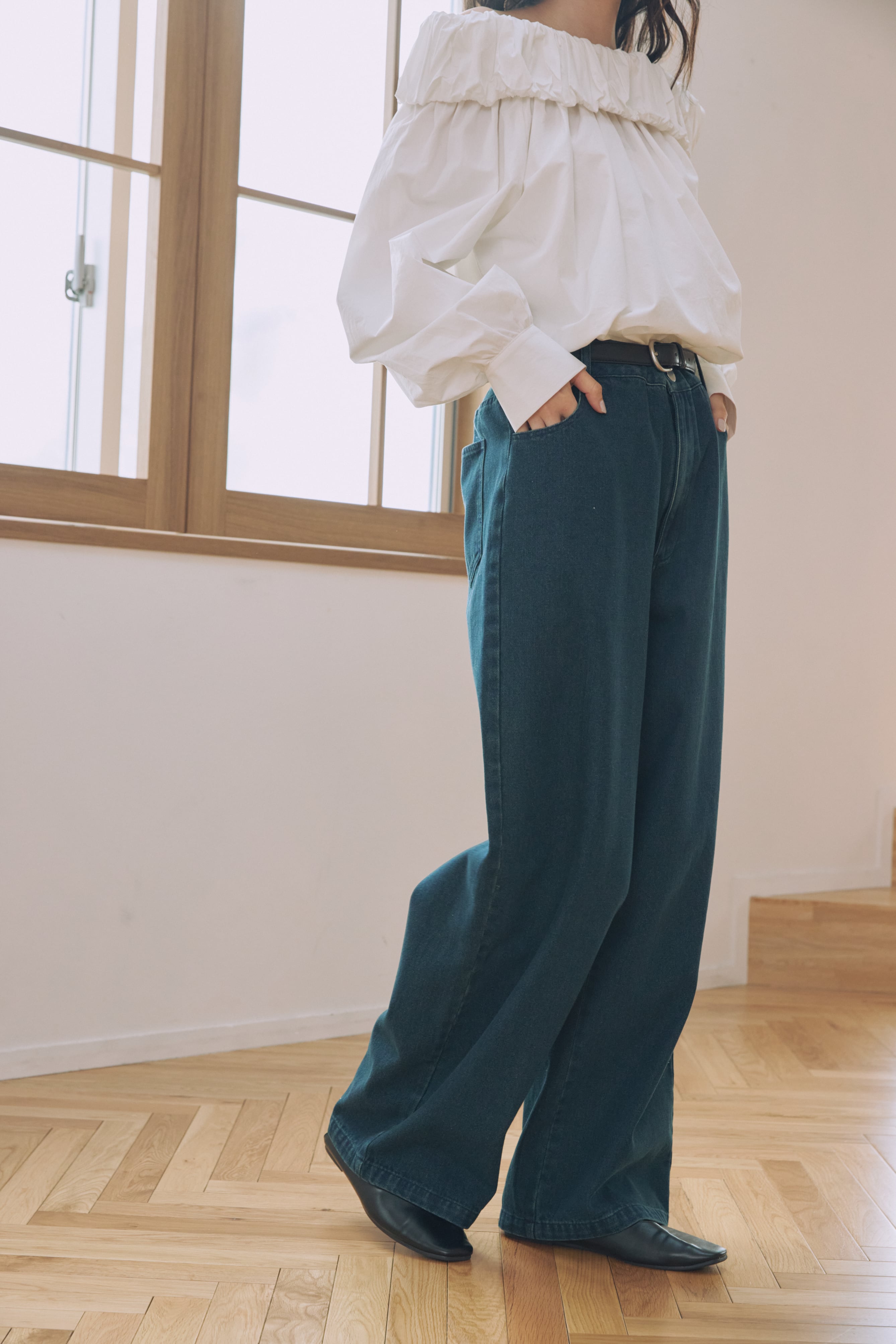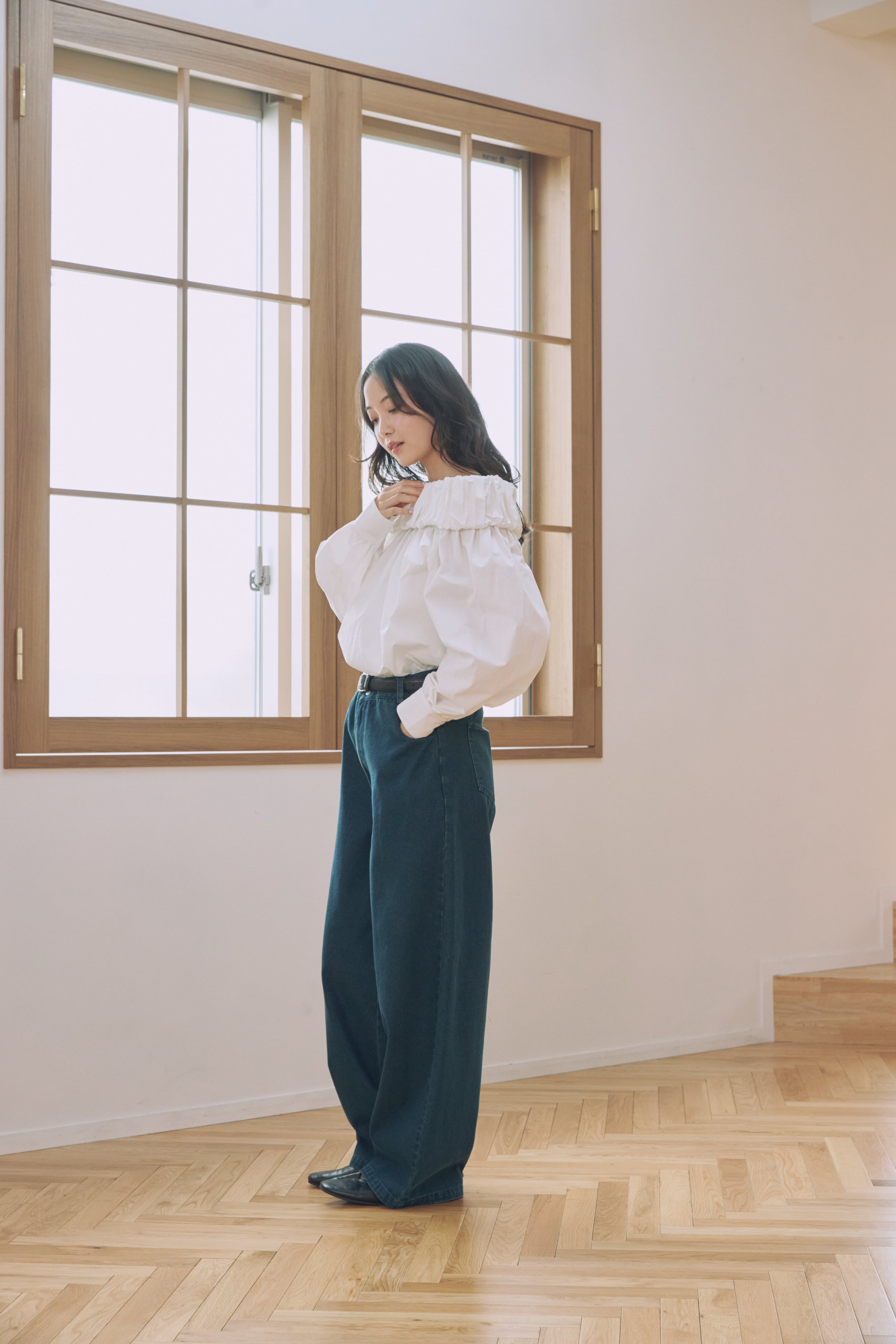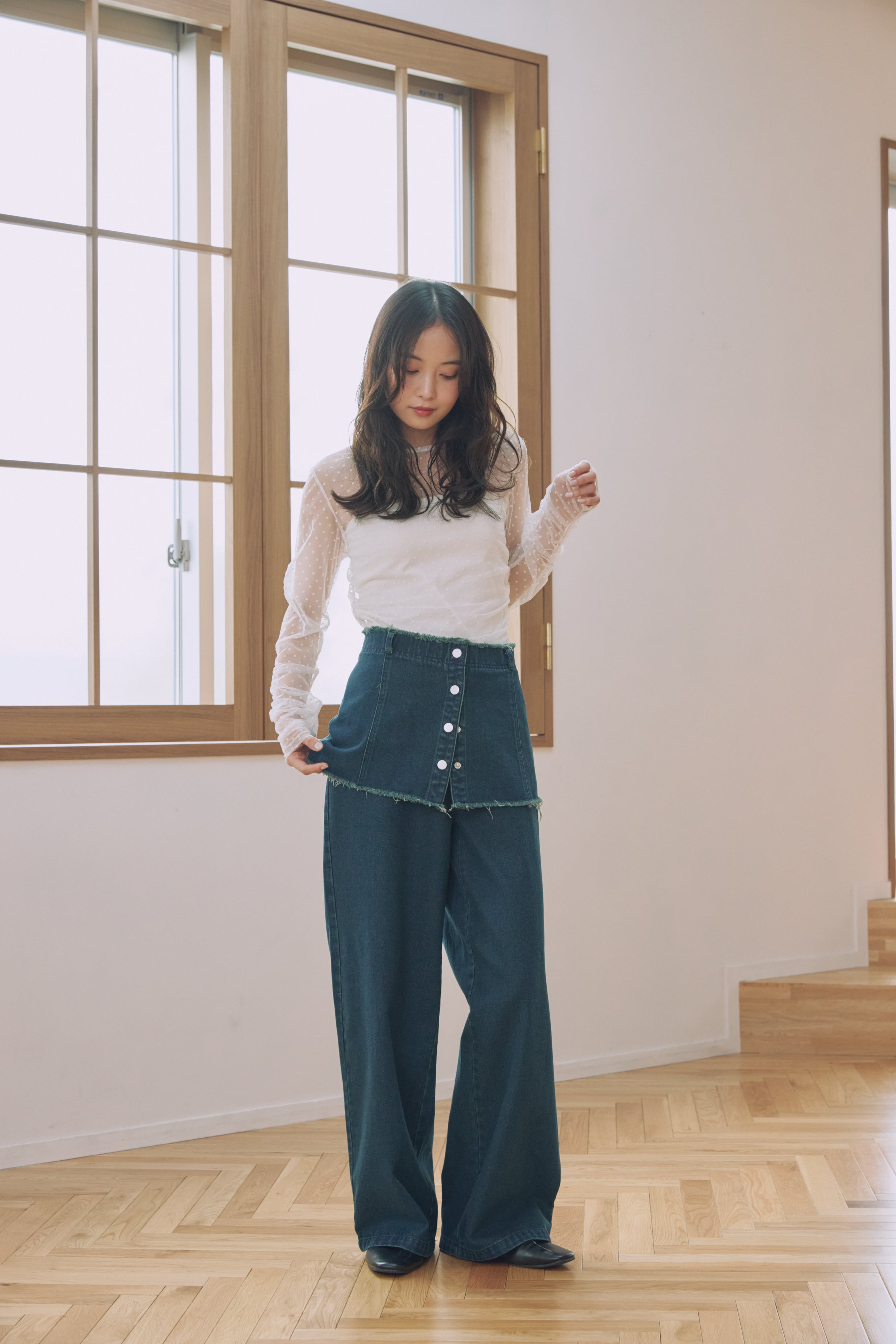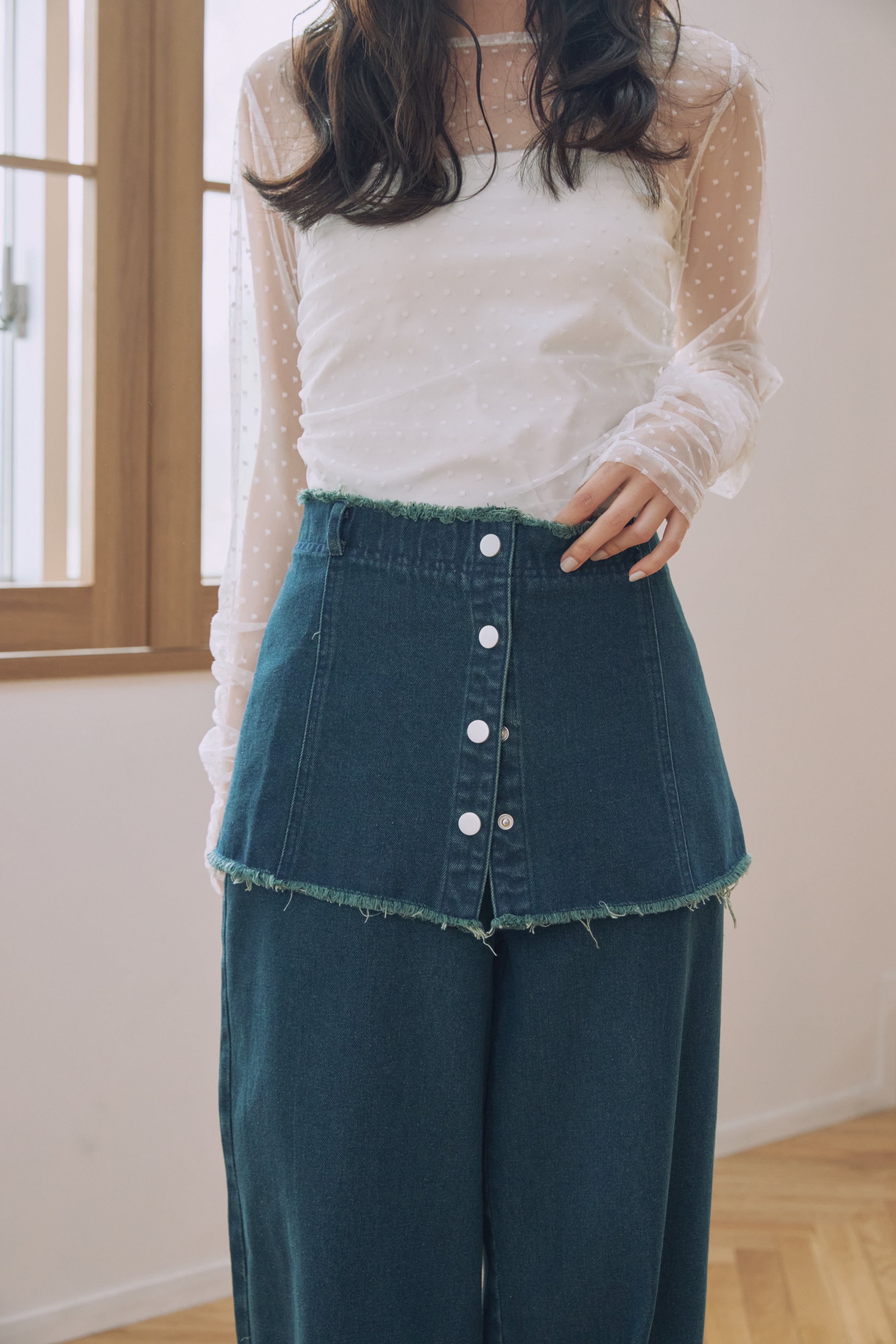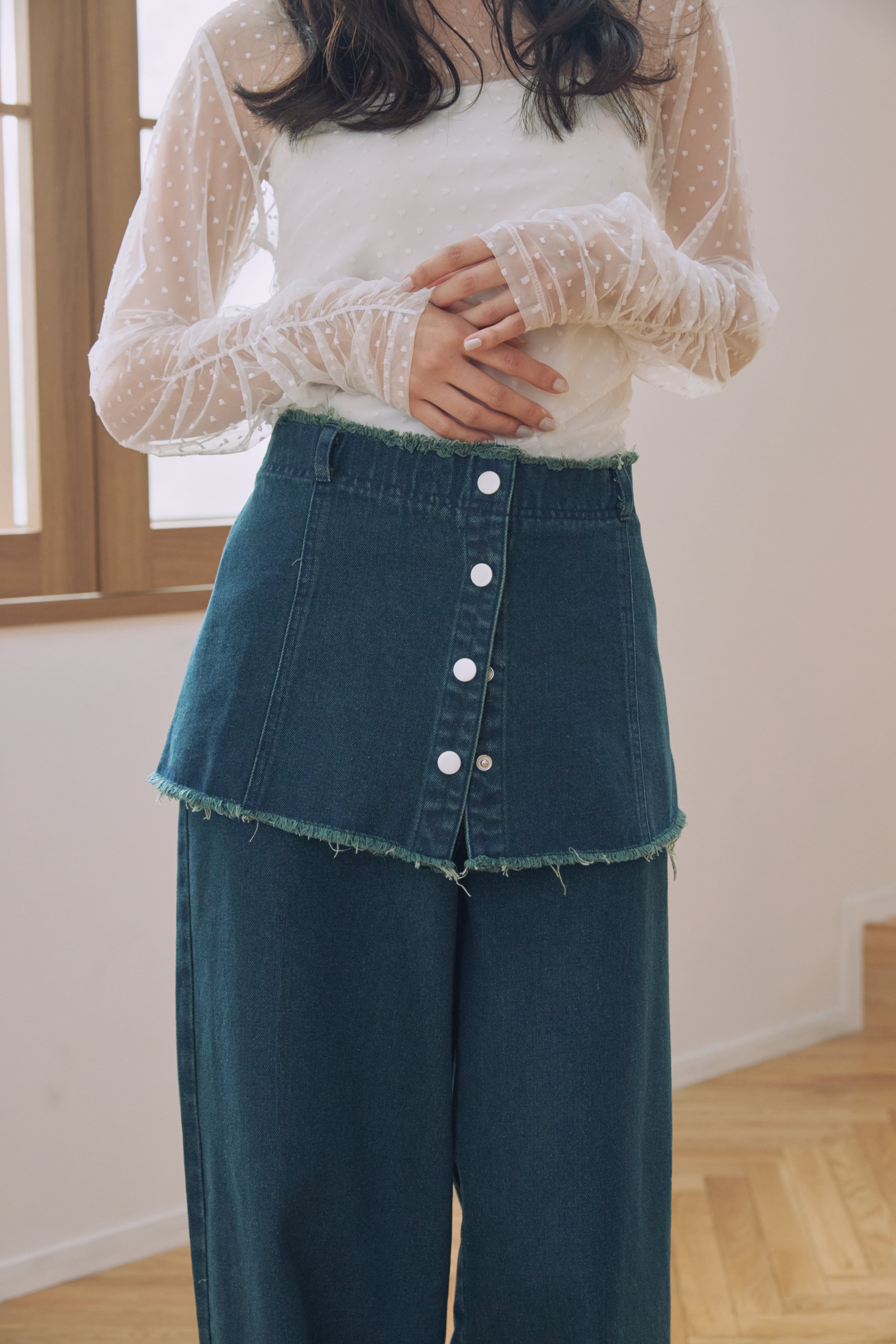 ウエストに巻いてスカートのようにレイヤードする着こなしにも◎