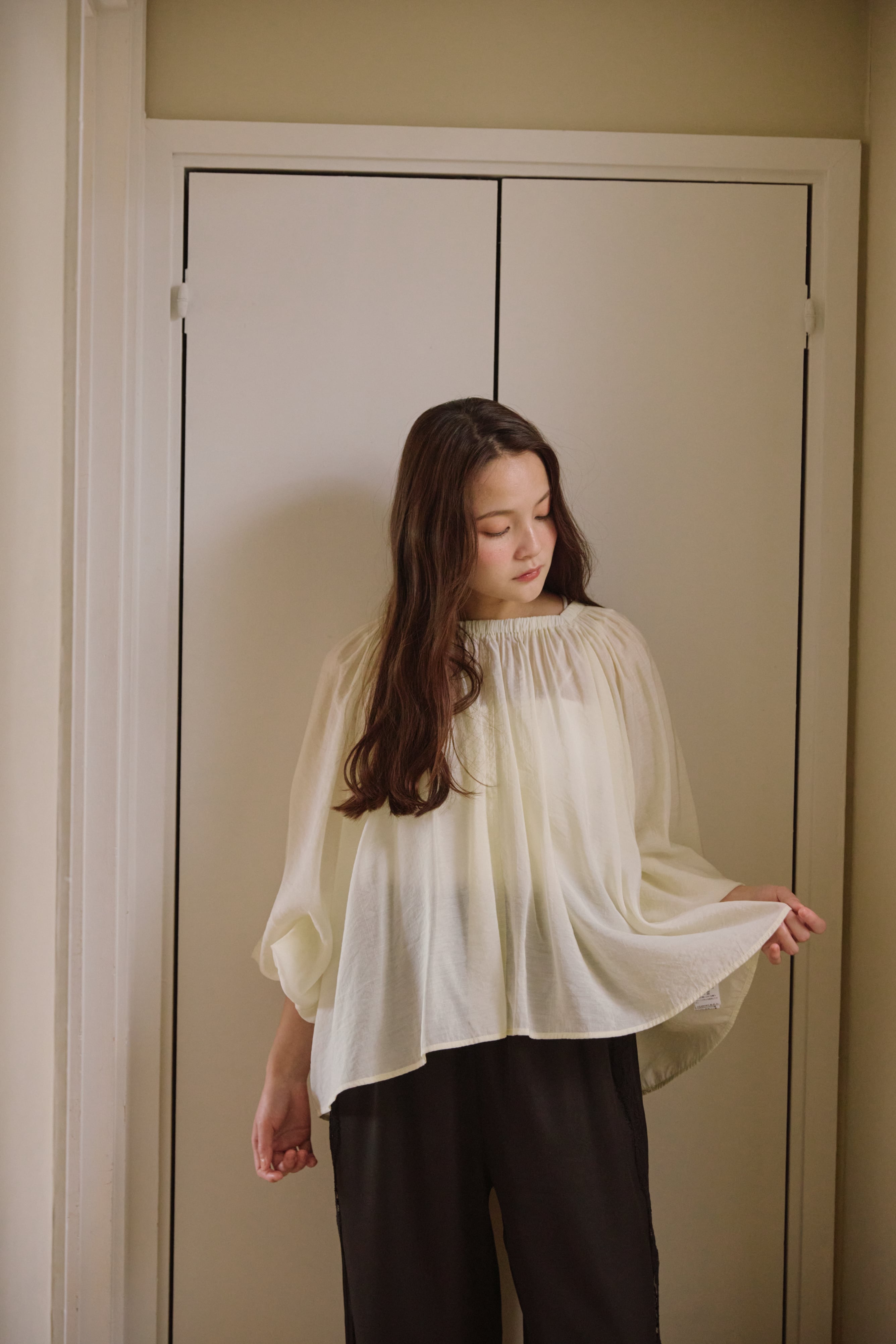 ほんのり透け感のある素材が、抜け感たっぷりで