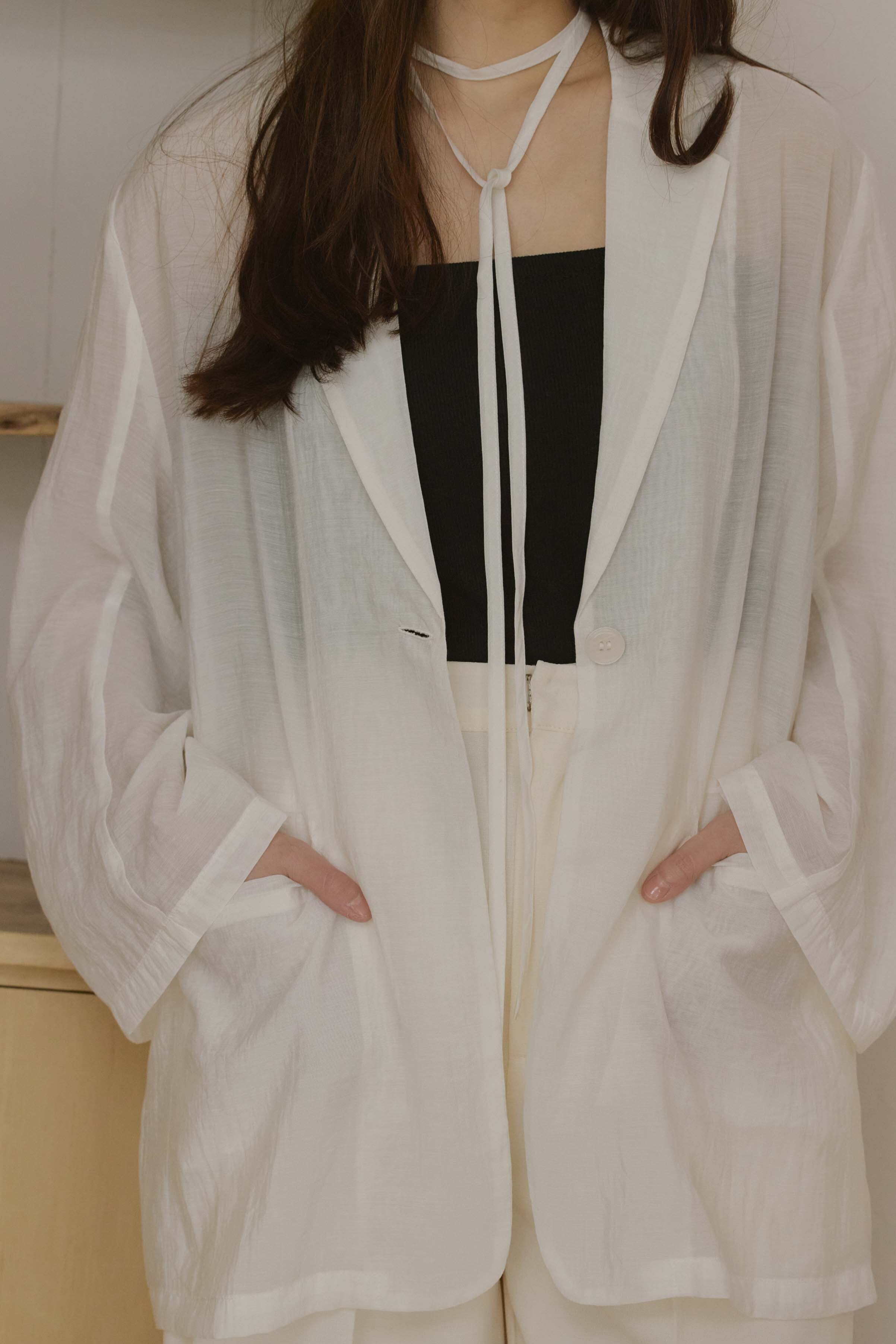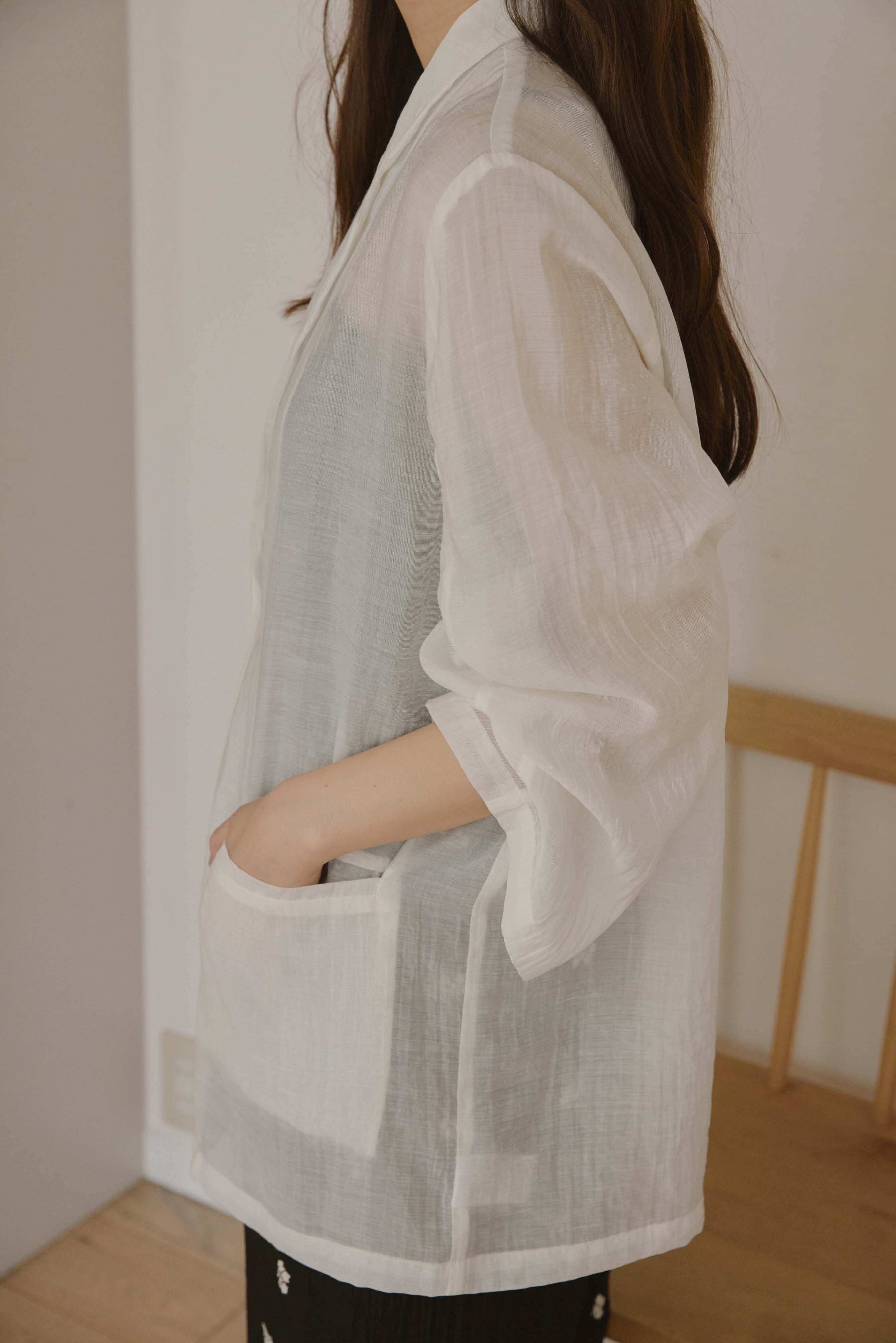 軽やかな透け感が魅力のシアージャケット