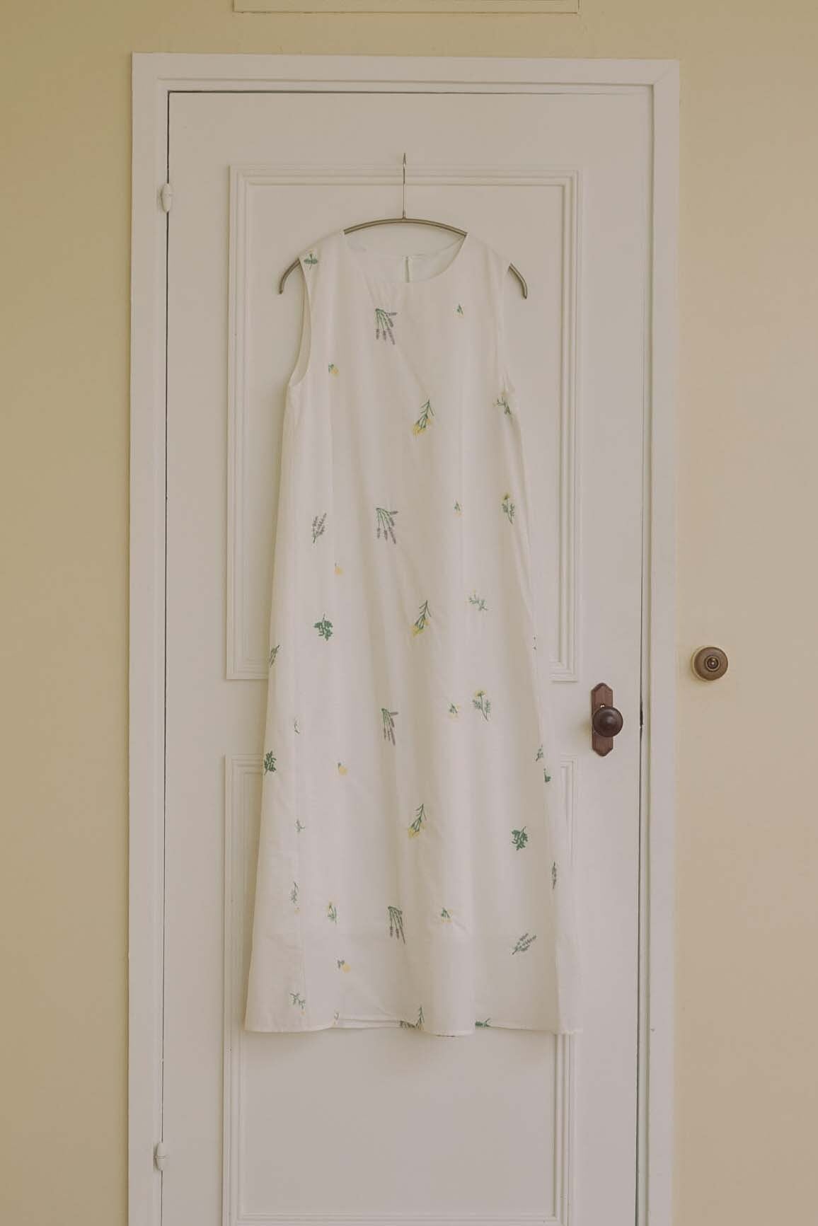 ナチュラルな雰囲気の中に、繊細な刺繍の花柄がほんのり華やかさをプラス。