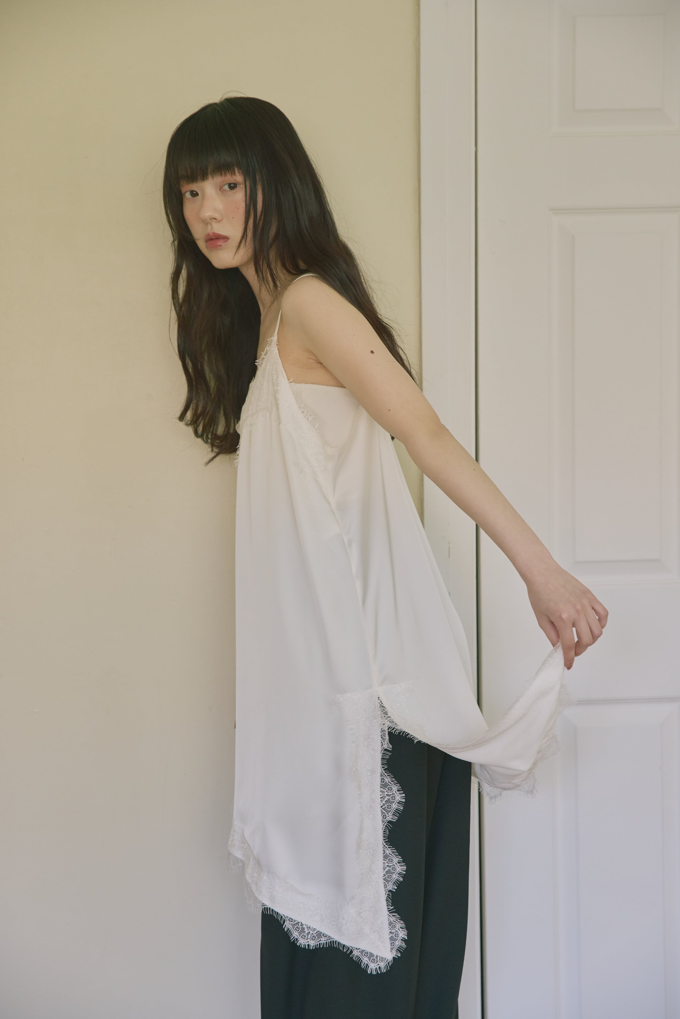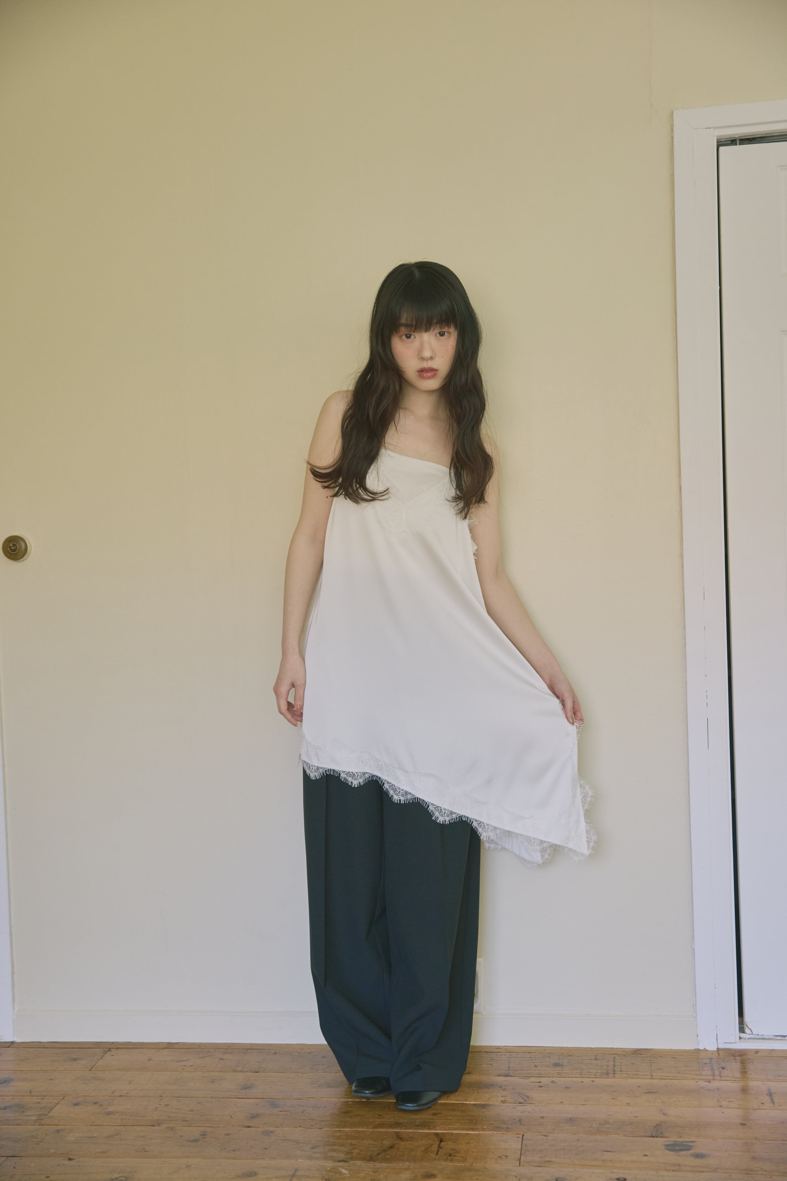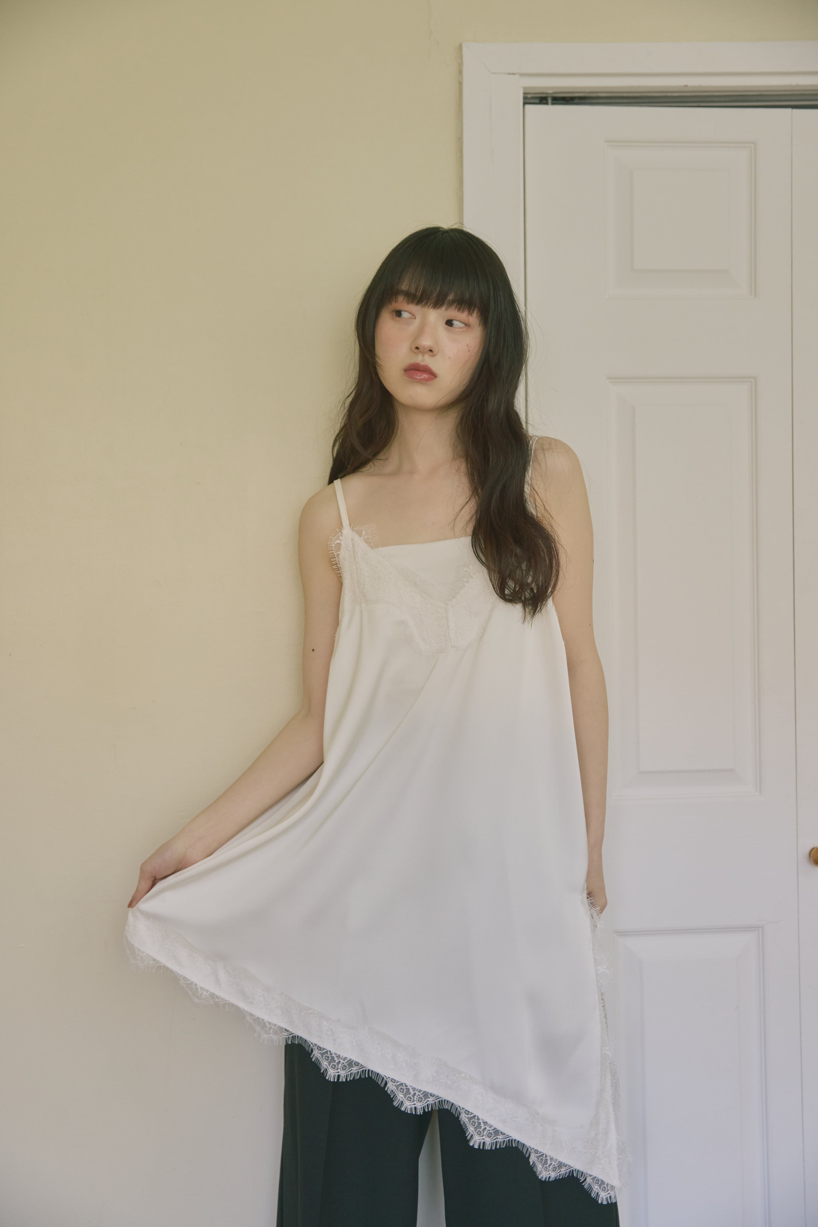 AM139036 asymmetry satin lace camisole