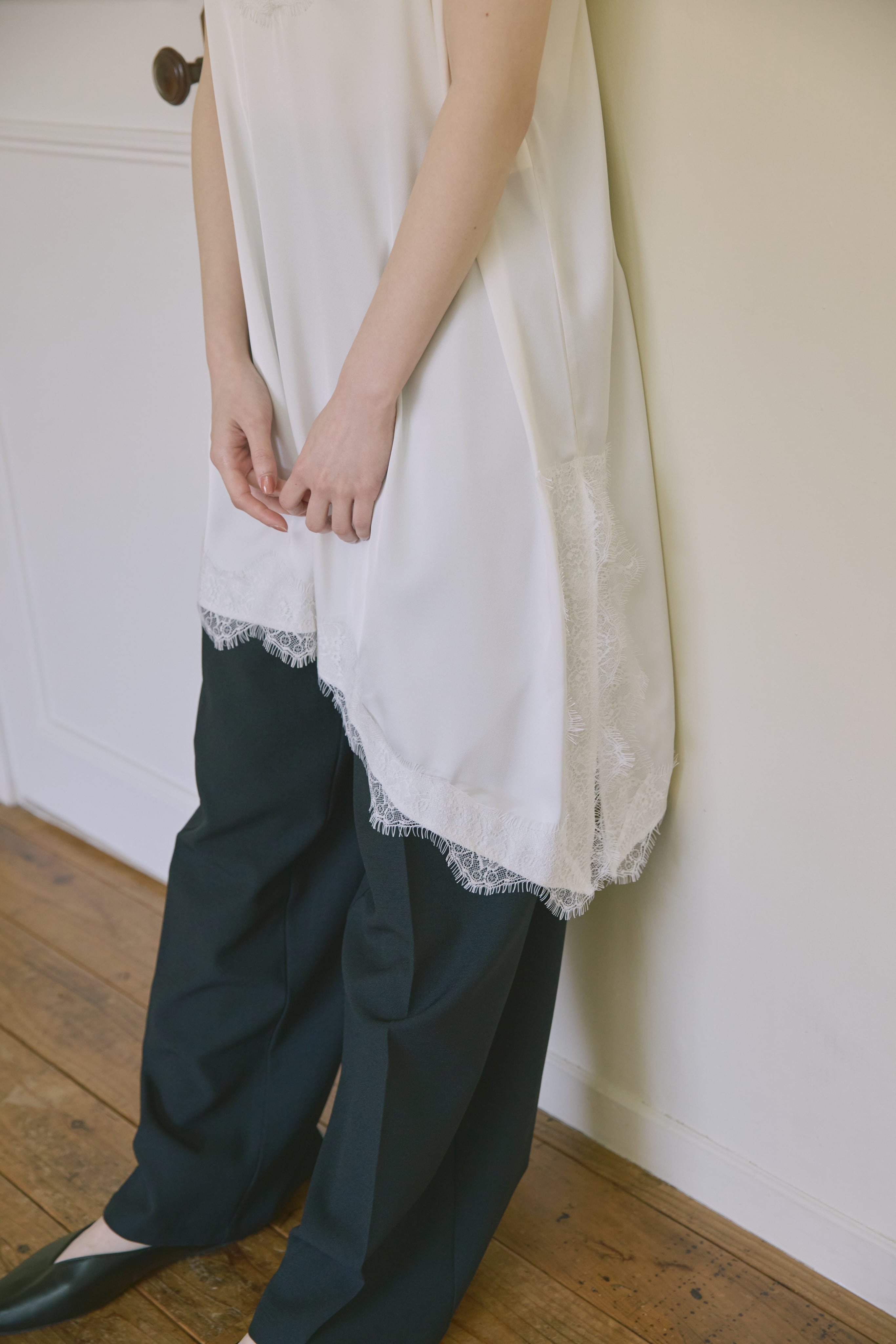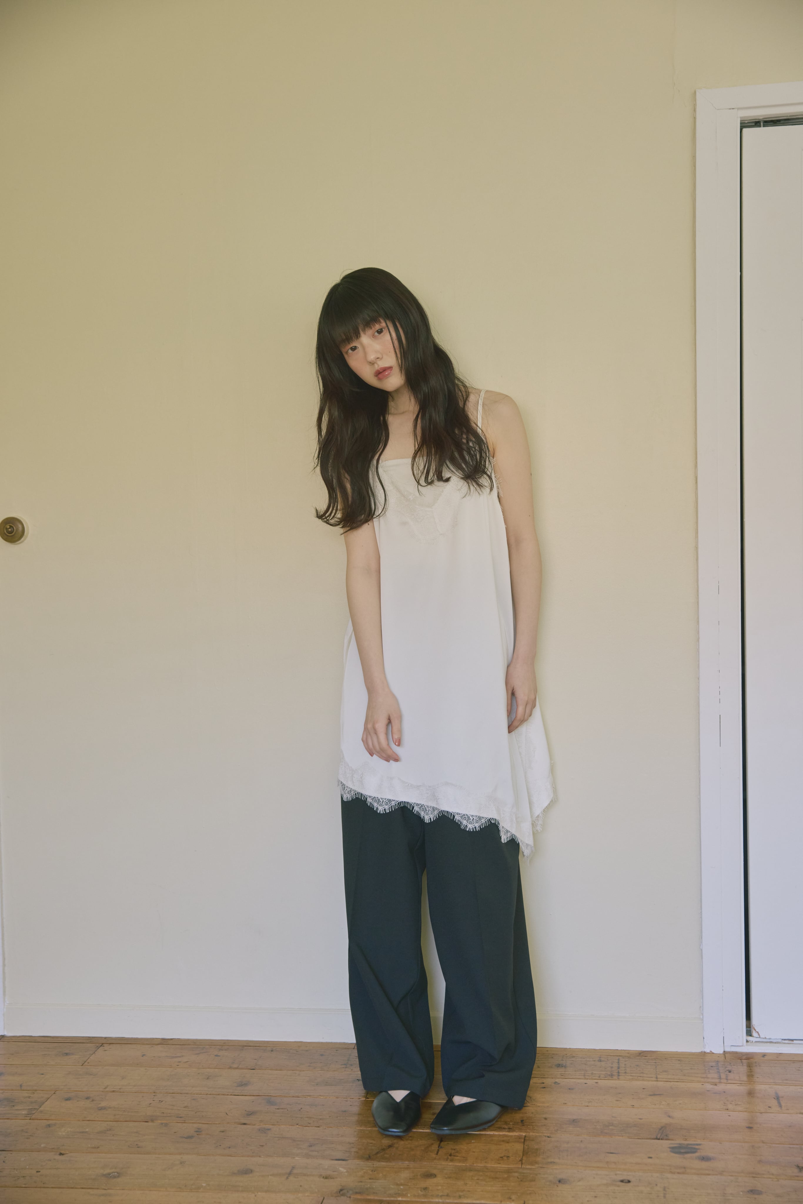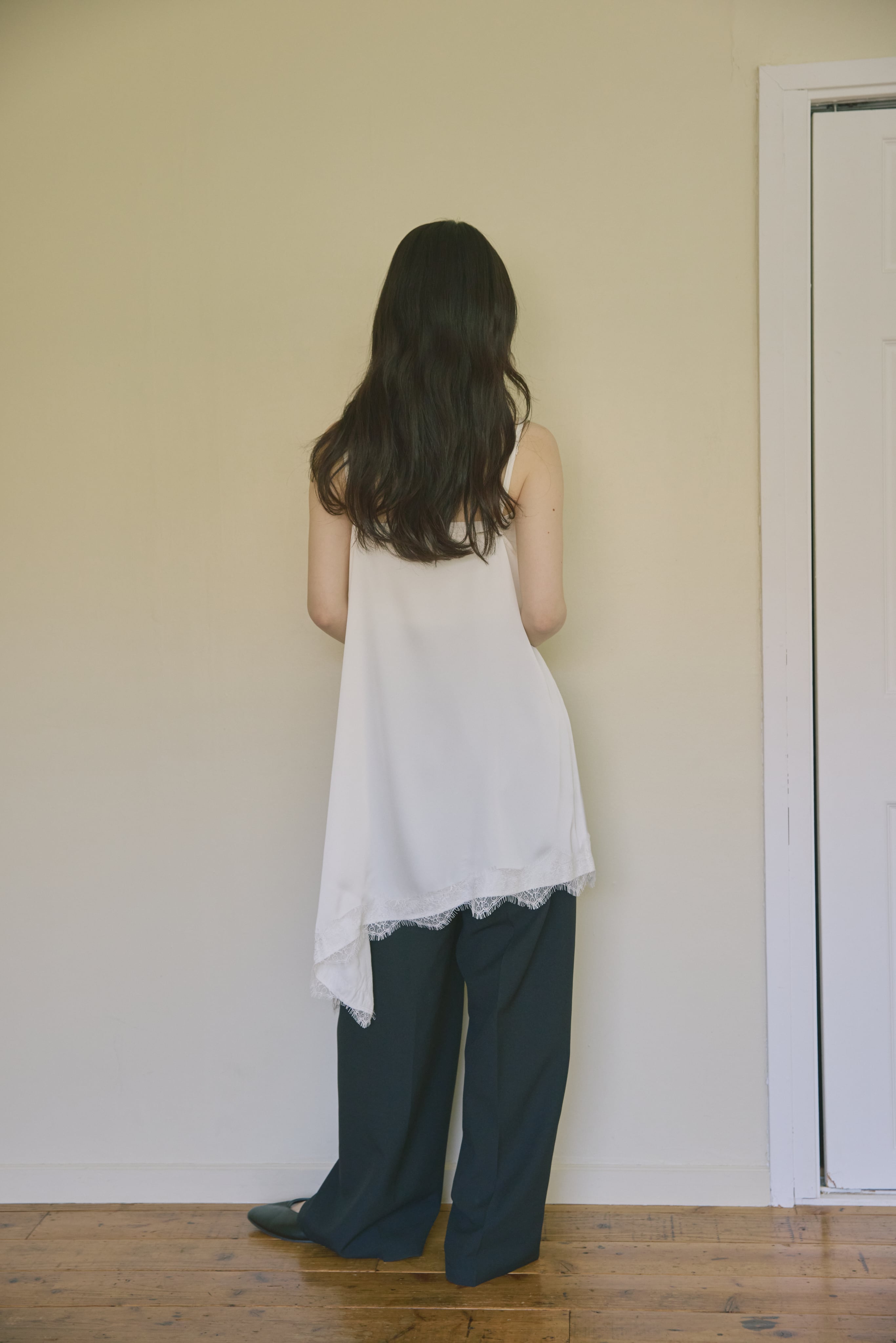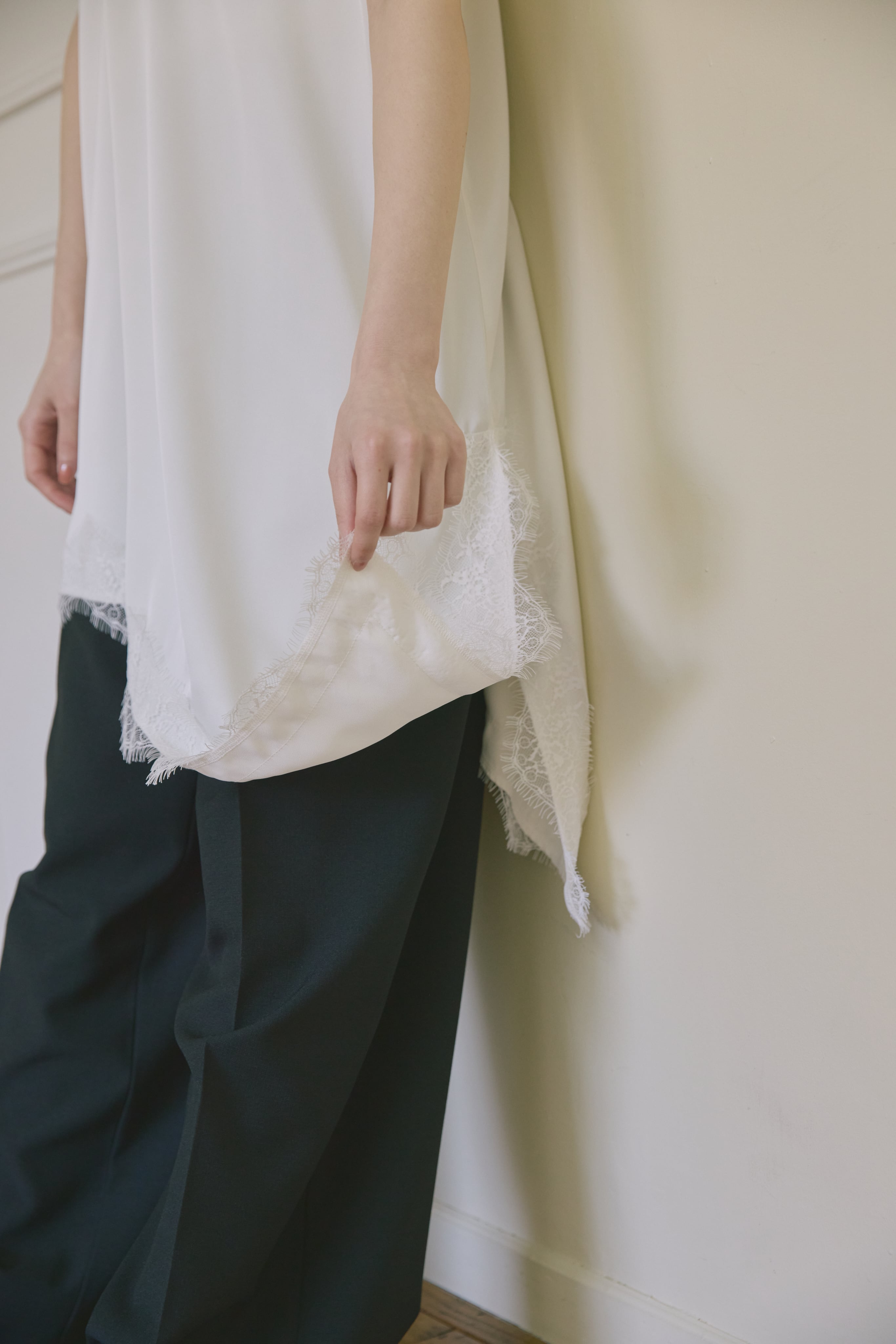 AM139036 asymmetry satin lace camisole