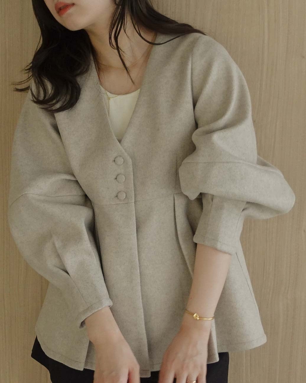 AM471003 melton peplum button tops 【12月上旬予約商品】