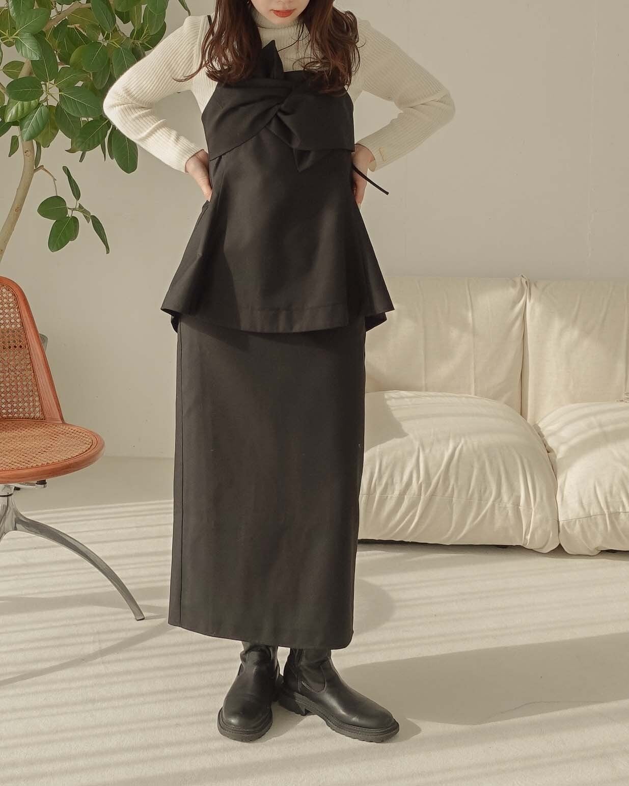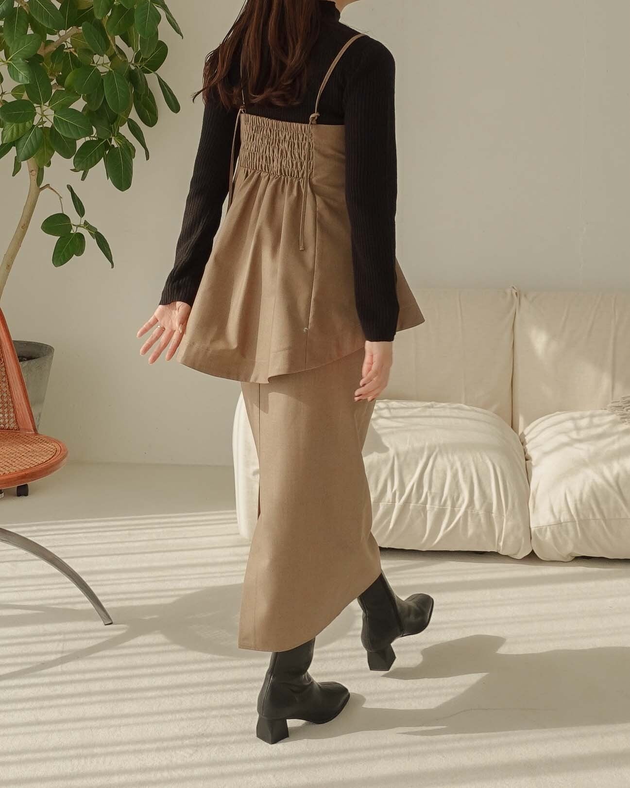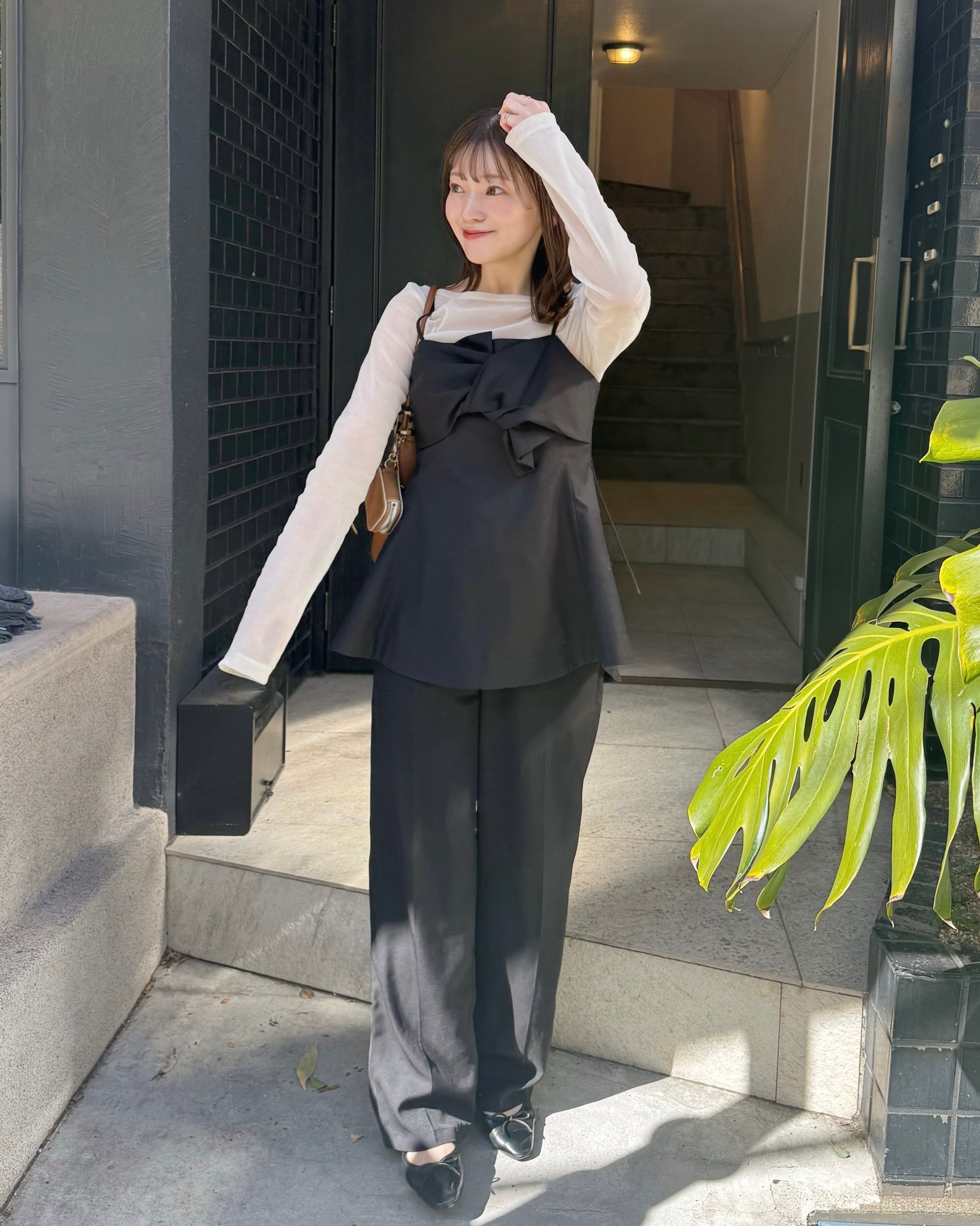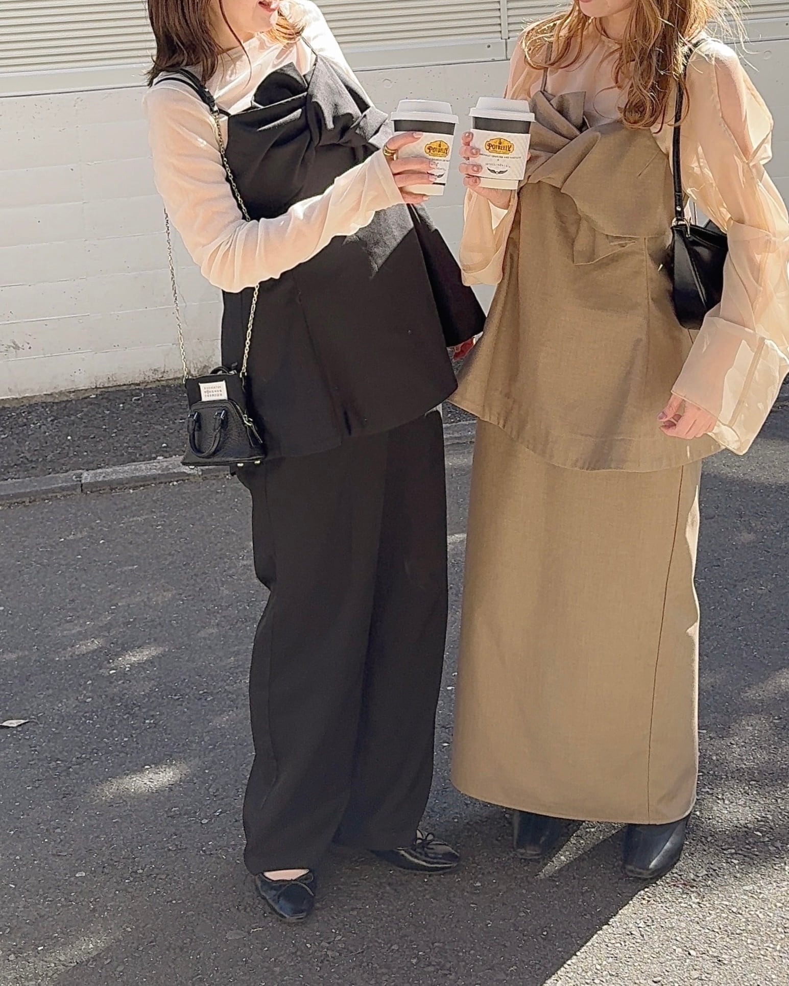 程よく広がるシルエットと、前後で丈感に変化をつけて