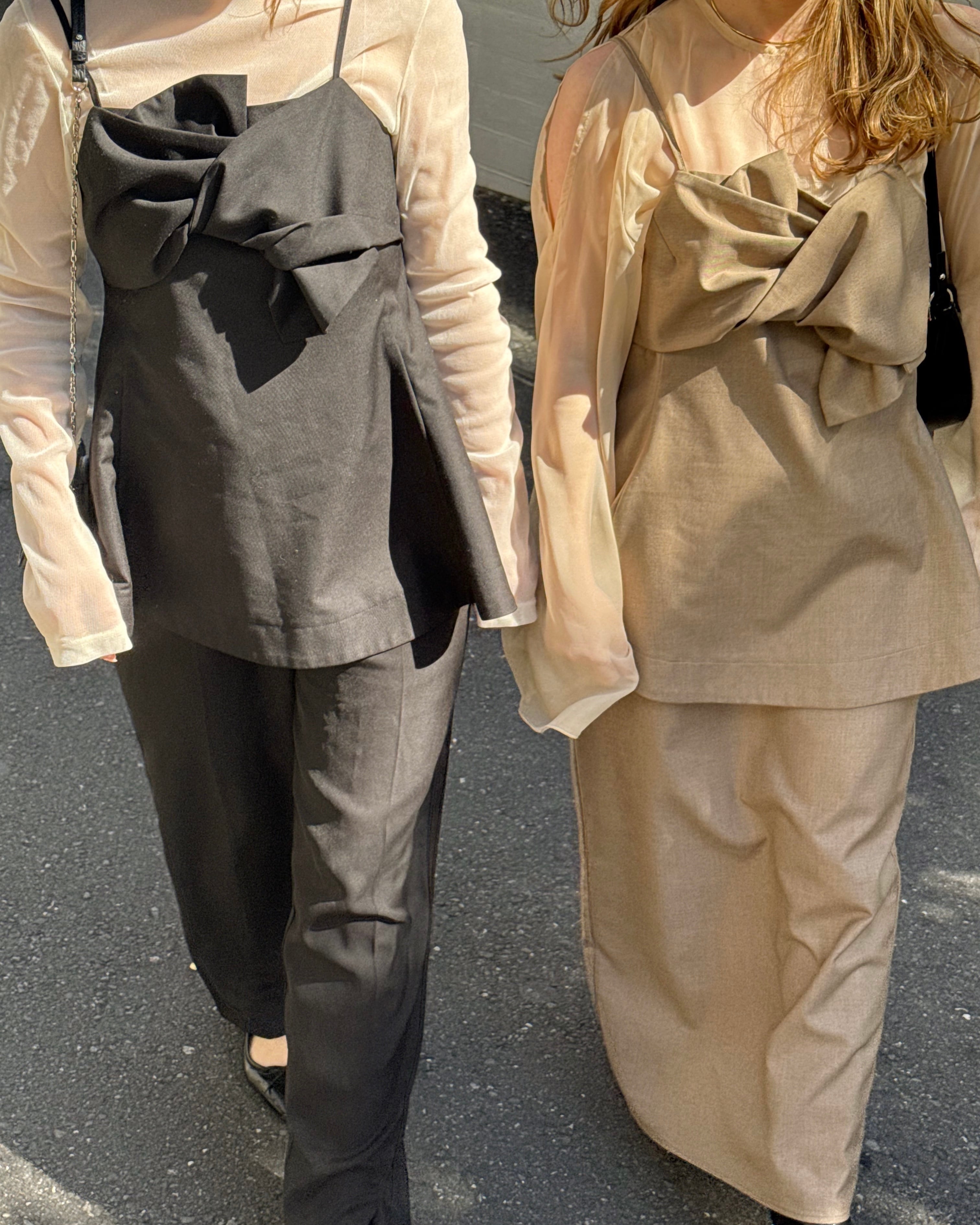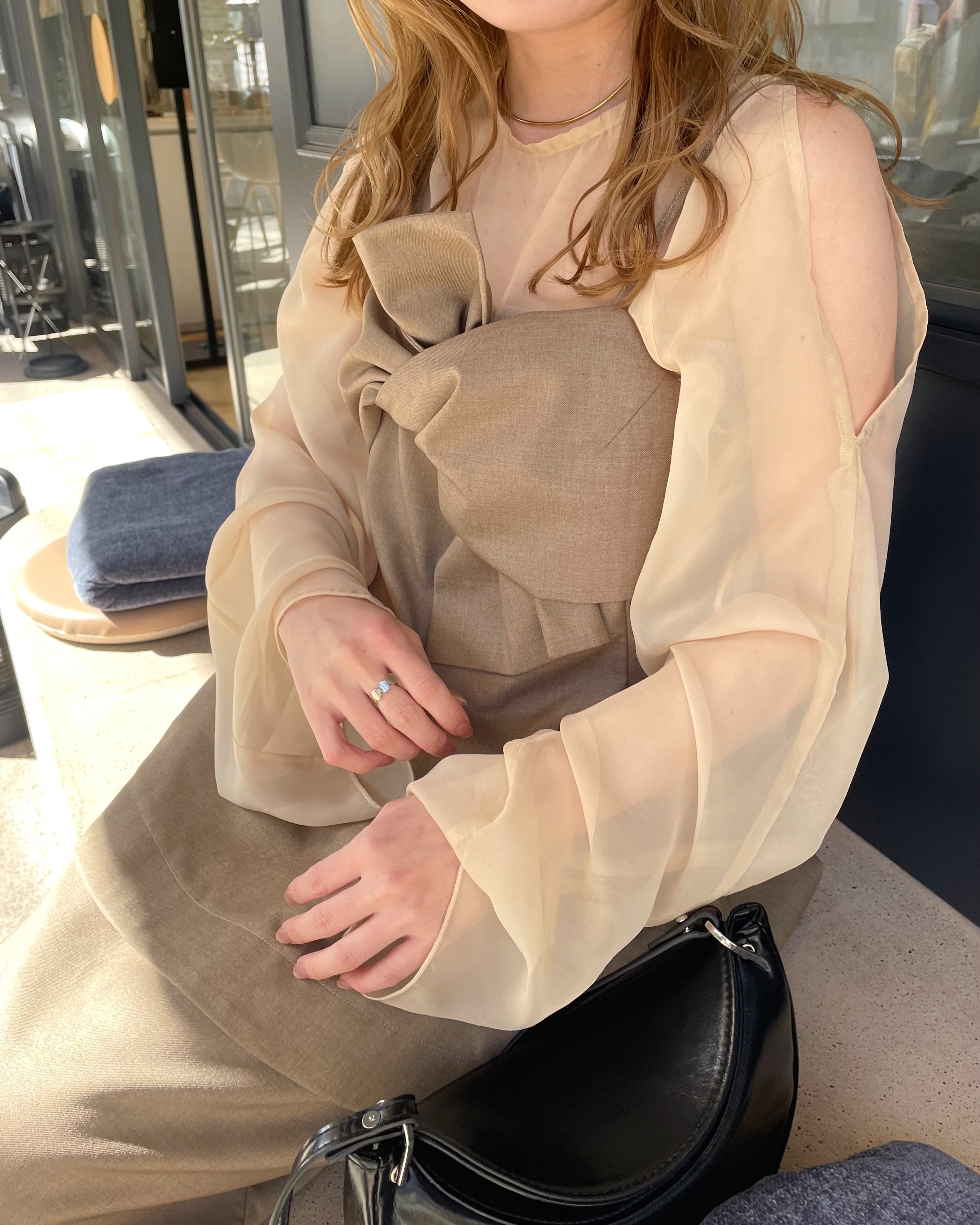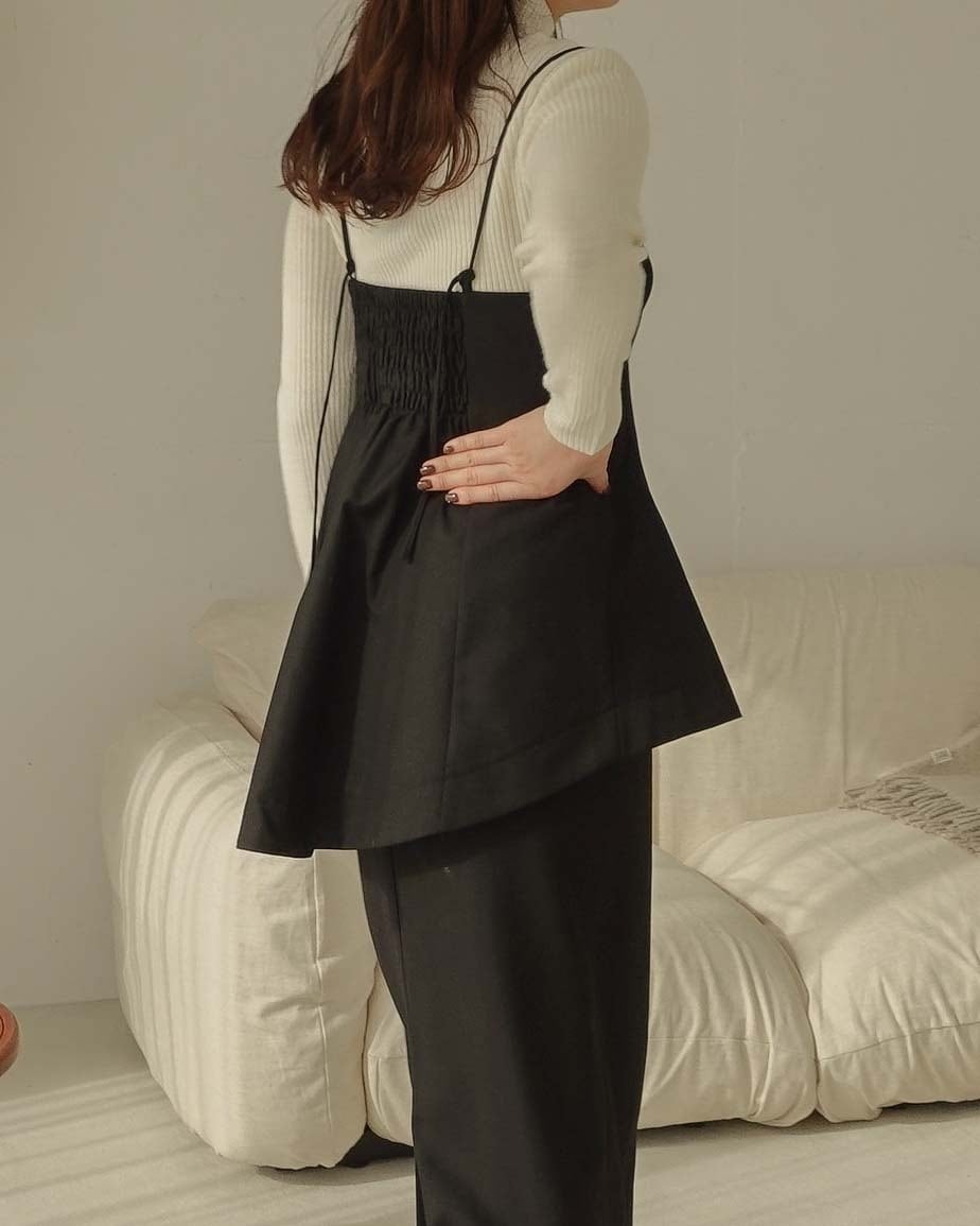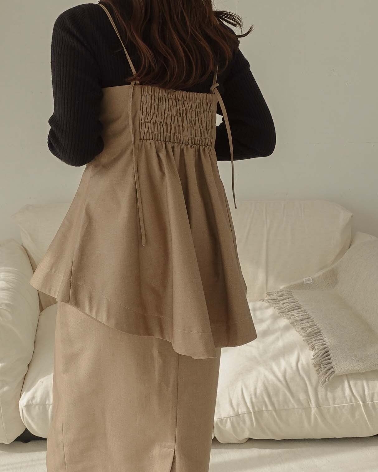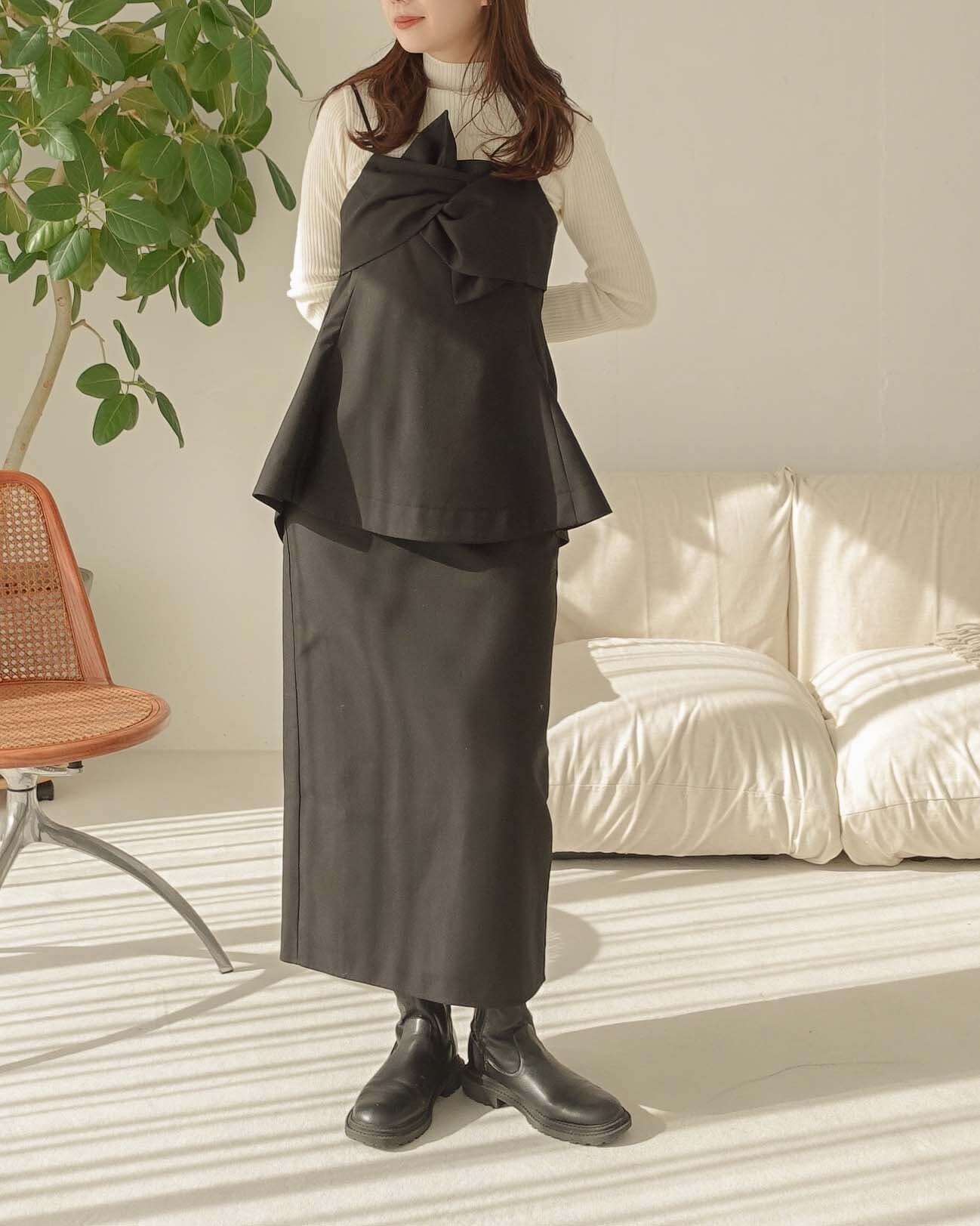 程よく広がるシルエットと、前後で丈感に変化をつけて